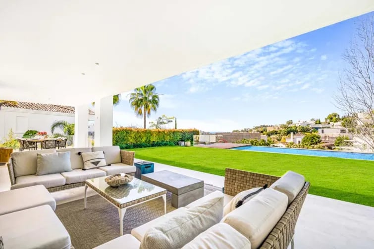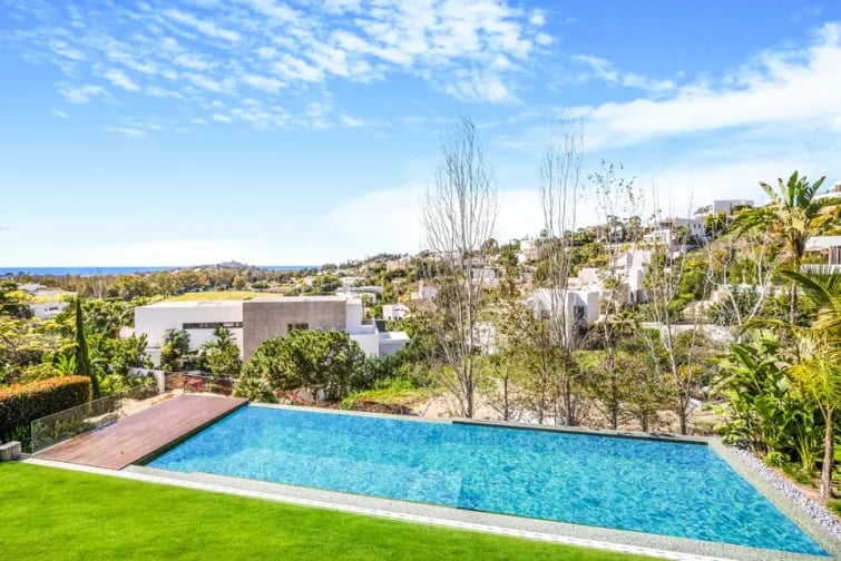 Belägen i den exklusiva utkanten av Marbella erbjuder denna exceptionella villa med 5 sovrum lugn komfort, vilket gör den till den perfekta tillflyktsorten för dem som söker både avkoppling och njutning. Med modern design genomgående är denna villa en fantastisk fristad som utlovar en oförglömlig upplevelse.