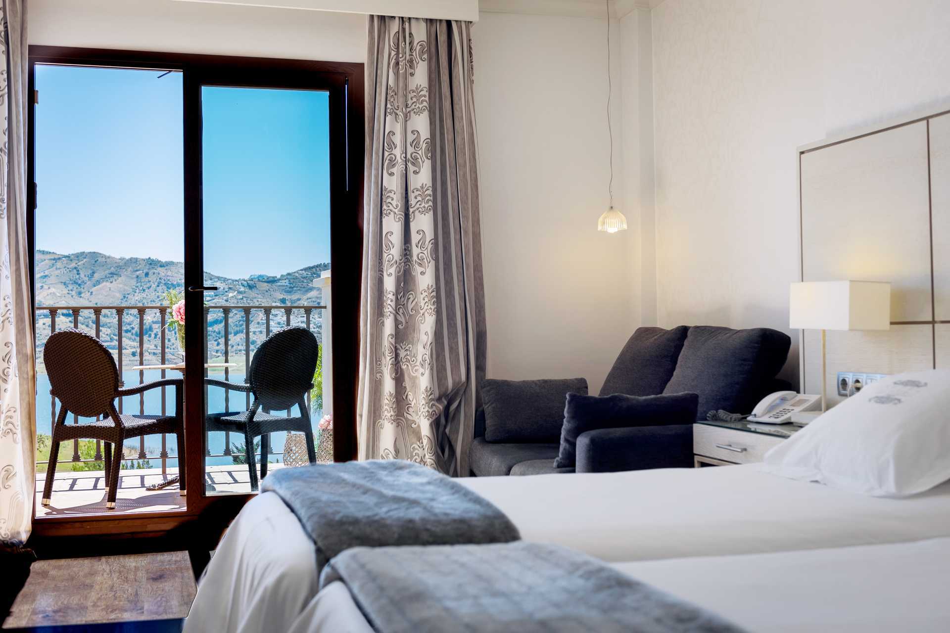 Superiorrum med balkong. En dubbelsäng eller två enkelsängar. Möjlighet till extrabädd i bäddsoffa. Wifi, luftkonditionering och deponering ingår. Kylskåp. Tv med internationella kanaler. Hårtork. Badrum med badkar och wc. Städning 7 ggr/vecka.