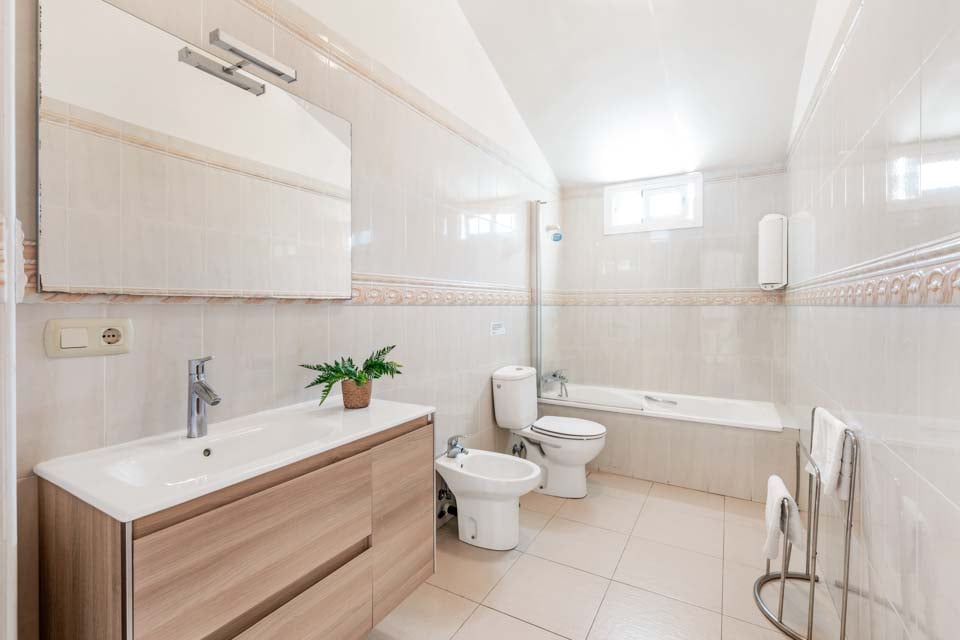 Denna villa ligger i ett exceptionellt kuperat/bergigt område och trots att villabyggnaden ligger på ojämn mark utan viktiga trappsteg runtomkring, är villans läge toppen av en kulle och bilresan till villan är komplicerad. Tomten utanför huset är brant (den ligger i en kulle). För att komma till villan finns en stig som är 180 cm bred tillsammans med ett trappsteg upp till själva villan. Ytterdörren har en bredd på 82 cm. Trädgårdsområdet är omgivet av två olika trappor, från den dolda terrassen till poolområdet (20 cm) och från poolen till trädgården (13 cm). Poolen har romerska trappor för att komma in. Den bredaste sovrumsdörren på bottenvåningen är 80 cm bred, vilket är dubbelrummet, och den bredaste badrumsdörren på bottenvåningen är 80 cm bred. Dörren in till kök/matplats är 74 cm bred och dörren in till vardagsrummet är 74 cm bred. *Observera att även om vi har gjort allt för att säkerställa att informationen som lämnas är korrekt, kan fel uppstå och om du behöver mer specifik information om villan, tveka inte att kontakta oss.