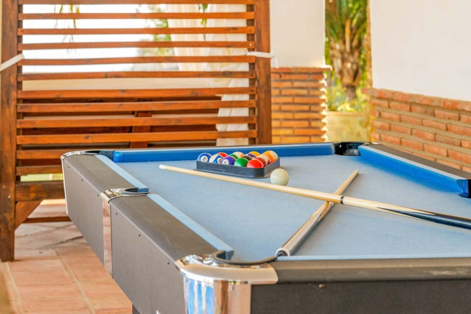 Uteservering, Uteservering, Grill, Tegelgrill, Täckt terrass, Matplats, Dagbädd utomhus, Gräsmatta, Öppen terrass, Parasoll, Biljardbord, Solstolar