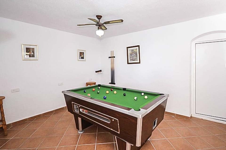 Villan har en rymlig loungedel, perfekt för att umgås och spendera kvalitetstid med nära och kära. Dessutom erbjuder det fullt utrustade köket alla nödvändiga bekvämligheter för att laga läckra måltider under sin vistelse. För de som gillar inomhusunderhållning finns ett spelrum med biljardbord, och det finns även ett utomhusfotbollsbord tillgängligt för gästerna.