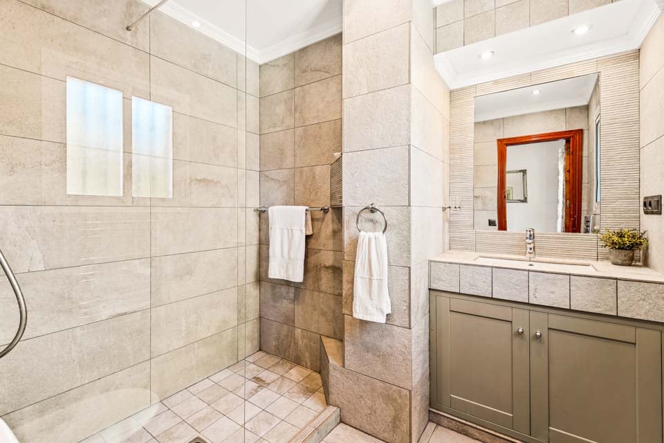 Denna villa ligger i ett exceptionellt kuperat/bergigt område, på ett högt läge längs en stig i ett område som kallas Punta Lara Alta. Trots att villabyggnaden ligger på ojämn mark, ligger villan högst upp på en kulle. Tomten utanför huset är brant. För att komma till villan finns en 100 cm bred stig och 3 trappsteg upp till själva villan. Ytterdörren har en bredd på 100 cm. Poolområdet är platt, men det finns trappor som leder ner till poolen. Inuti är alla sovrumsdörrar 70 cm breda och alla badrumsdörrar är 60 cm breda. Dörren in till kök/matplats är 80 cm bred och dörren in till vardagsrummet är 80 cm bred. *Observera att även om vi har gjort allt för att säkerställa att informationen som lämnas är korrekt, kan fel uppstå och om du behöver mer specifik information om villan, tveka inte att kontakta oss.