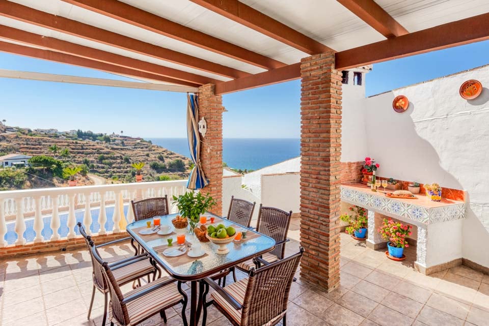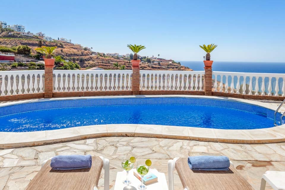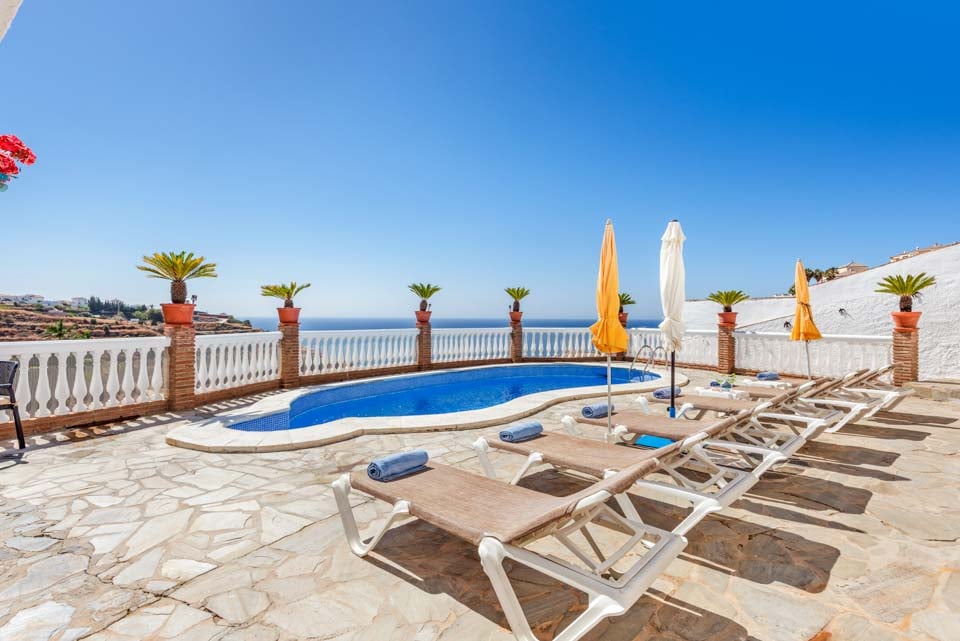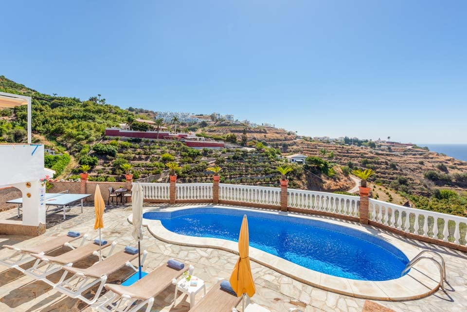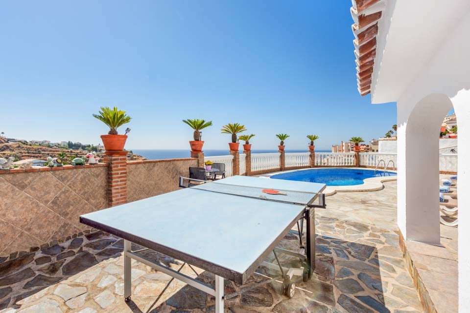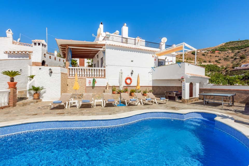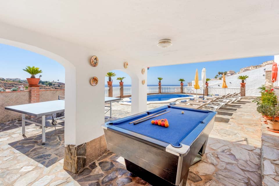 Lugn, naturskön och havsutsikt är de tre första sakerna som dyker upp i tankarna när vi tänker på Villa Cecilia Sol. Miljön är ett naturligt mästerverk, med det glittrande Medelhavet på ena sidan och den grönskande alpina spanska landsbygden på den andra. Villa Cecilia Sol är byggd i den klippiga sluttningen och har utformats för att få ut det mesta av de otroliga panoramautsikterna. När du kliver ut kan du tillbringa timmar med att titta ut på den vidsträckta utsikten över böljande gröna kullar, grönskande vingårdar och doftande olivlundar. Den stora glorietteterrassen omges av ett kort pelarstaket i romersk stil, vilket gör att du kan njuta av varje centimeter av de sublima landskapen. Pittoreska och fridfulla, det finns flera uteserveringar där du kan njuta av landskapet under middagen. Från den övre terrassen kan du beundra den vidsträckta horisonten under frukosten, och sedan grilla en kvällsmåltid på den vackra vita stengrillen som är inhägnad med intrikat mosaikplattor och slå dig ner under den skuggiga pergolan. Den unikt formade poolen glittrar under den spanska solen, perfekt placerad så att du kan ta ett dopp och beundra landskapet i ren njutning. Sugen på ett snabbt spel eller två? Tävla vid bordtennisbordet och biljardbordet under verandan.