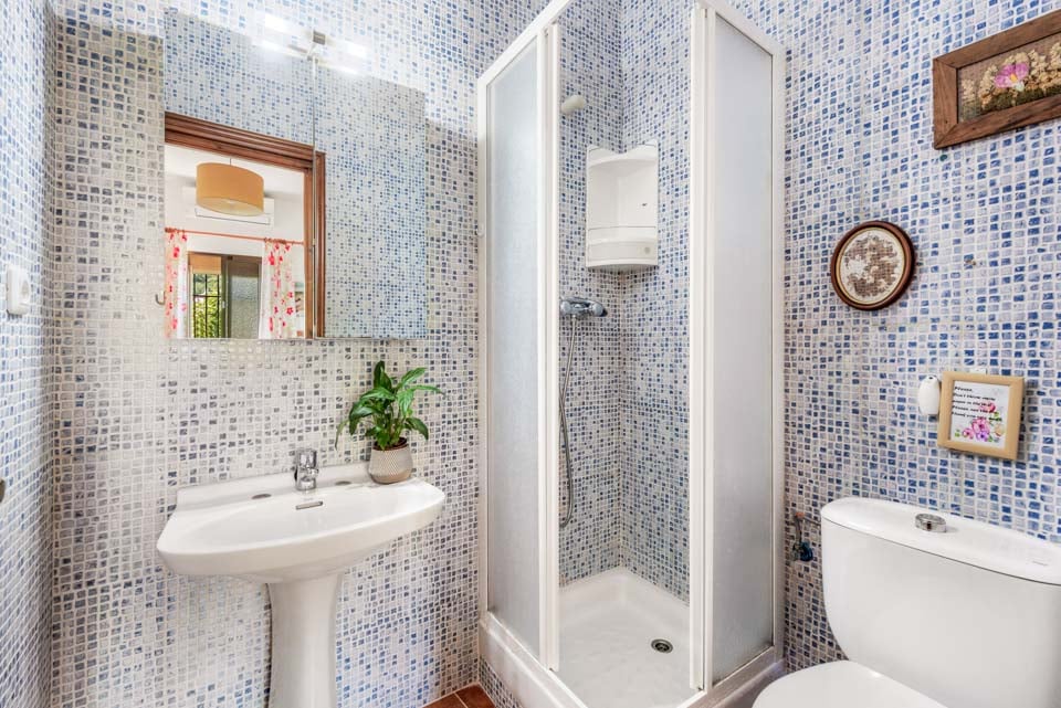Villan är på en nivå, för att komma åt villan finns en stig som är 80 cm bred, det finns 13 trappsteg som leder till ytterdörren, och ytterdörren är 75 cm bred. Vardagsrumsdörren är 80 cm bred och köks-/matrumsdörren är 80 cm bred. För att komma åt pool-/terrassområdet finns en dörr som är 90 cm bred, stigen runt poolen är 90 cm bred, och det finns också 9 trappsteg från terrassen till poolområdet. Poolen har en stege, det finns inga trappsteg. Sovrums- och badrumsdörrarna är båda 60 cm breda. *Observera att även om vi har gjort allt för att säkerställa att informationen som lämnas är korrekt, kan fel uppstå och om du behöver mer specifik information om villan, tveka inte att kontakta oss.