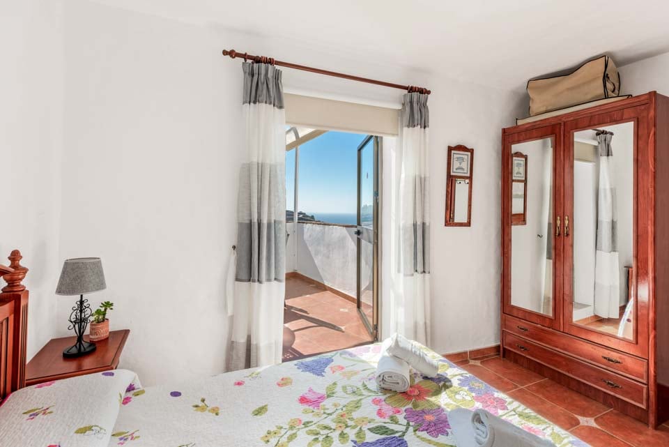 Exteriören transporterar dig tillbaka i tiden, med vita stuckaturväggar kantade med stenpelare och rustik mosaiksten. Det finns en härlig karaktär i vardagsrummet, det är som ett charmigt litet smyckeskrin med sin majestätiska grå stenspis, fylliga röda vintagesoffor, antik inredning och soffbord i mahogny. Köket ligger under den synliga tegelvalvet och har granitbänkskivor som matchar perfekt de lantliga träskåpen och det pittoreska kaklade stänkskyddet. Servera middag i den charmiga matsalen, med ett rustikt träbord för sex personer och ett skänk med gammaldags porslin och inredning. På övervåningen finns två tvåbäddsrum, prydda med sängkläder i livfulla färger som kontrasterar mot de fräscha vita väggarna. Dubbelrummet är varmt och hemtrevligt och leder direkt ut mot en privat balkong med direkt tillgång till en privat balkong.