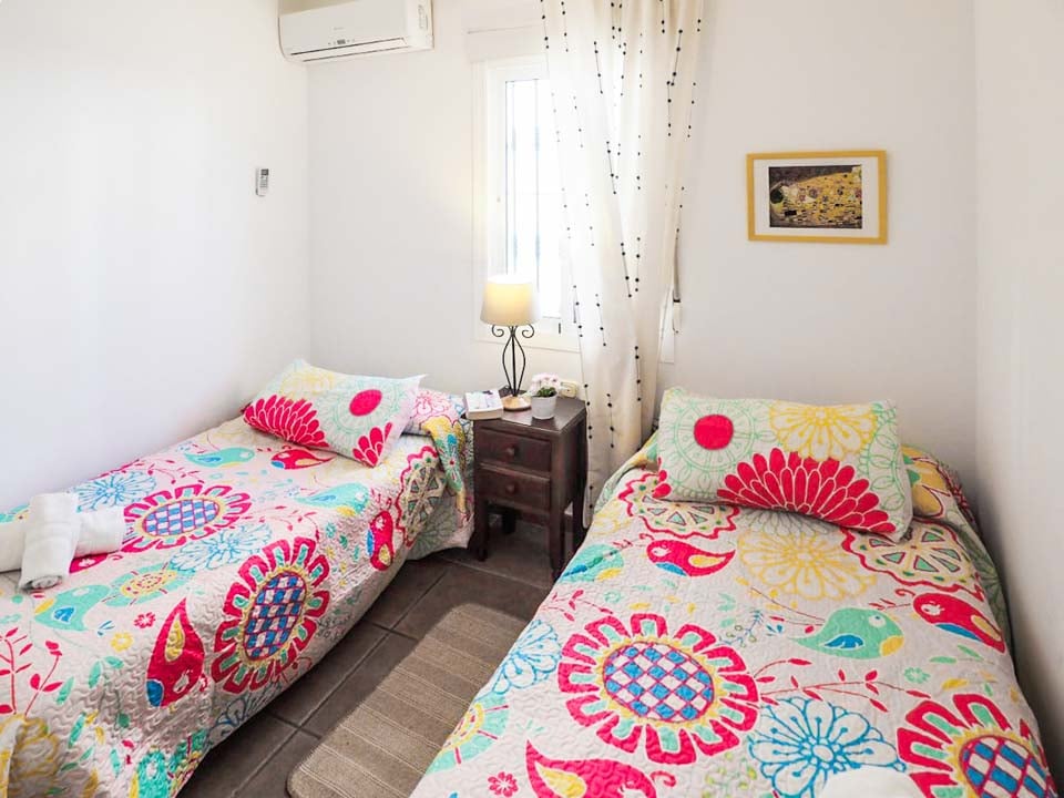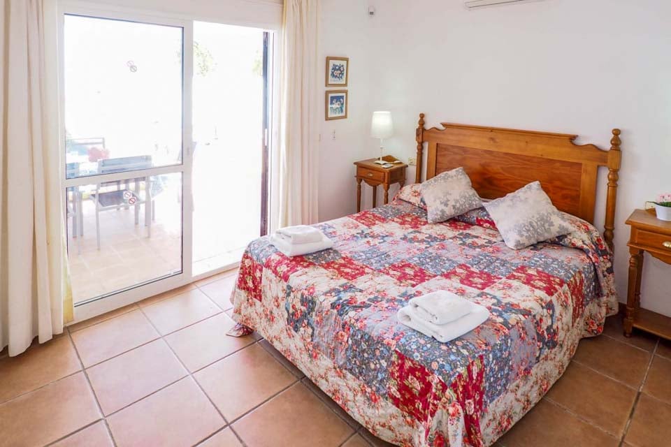 Dubbelsäng, dubbelsäng, luftkonditionering, dörrar till terrass, dörrar till terrass/trädgård