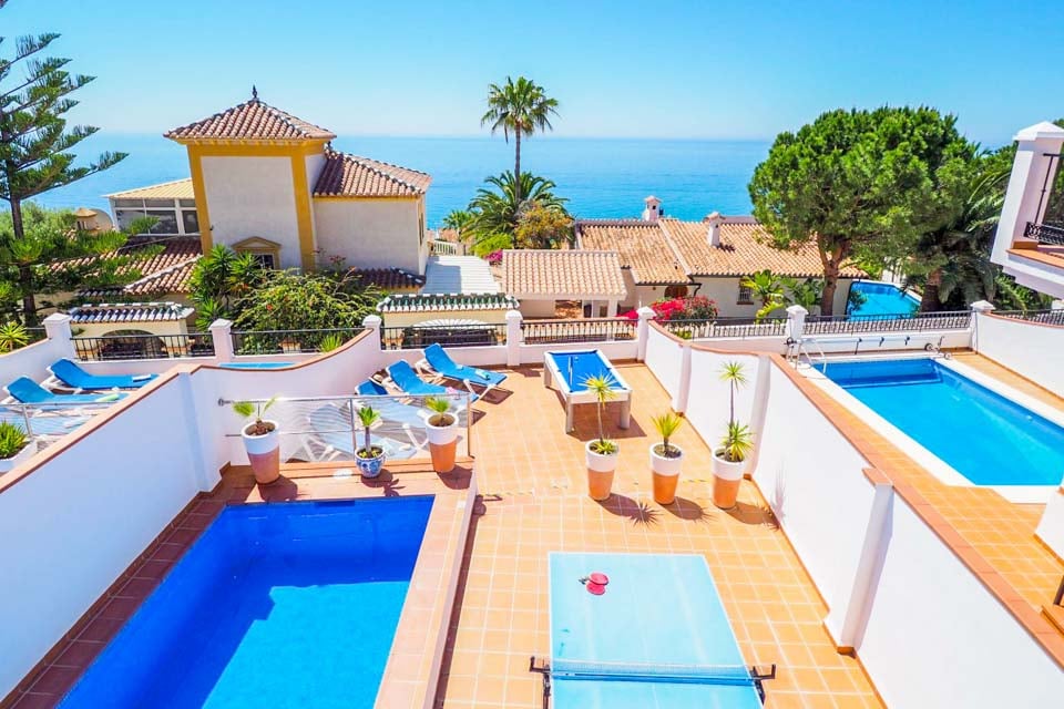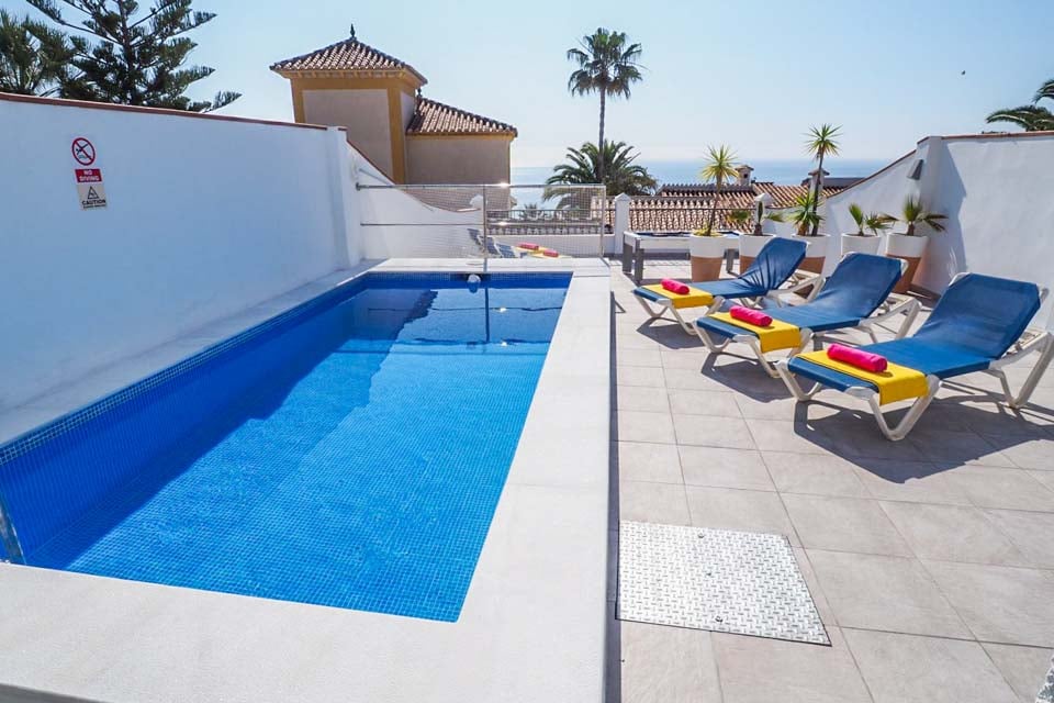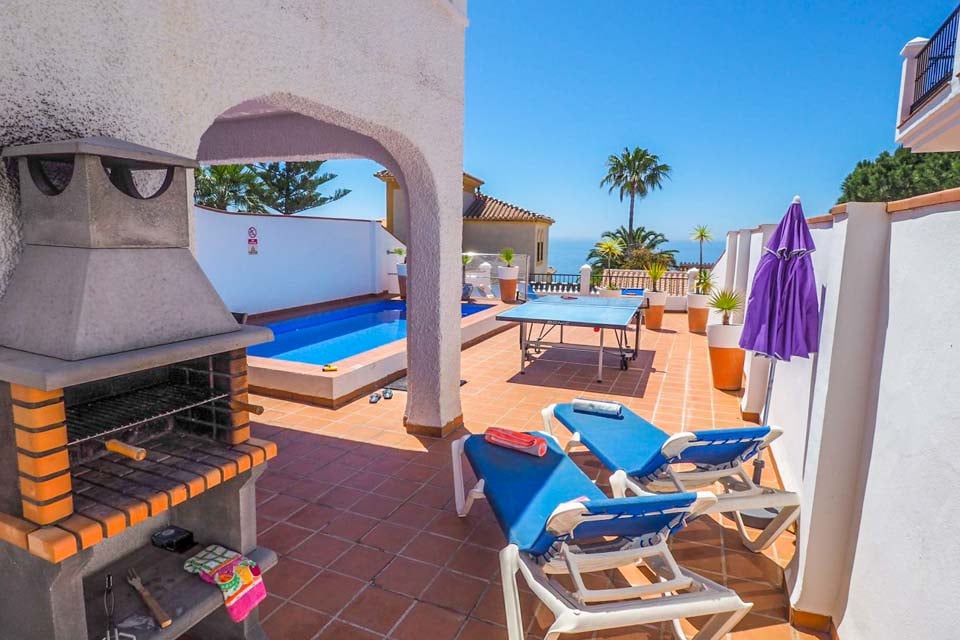 Denna förtjusande fastighet är idealisk för både grupper och familjer. Burriana-stranden, med sina många barer och restauranger, ligger bara en kort promenad bort och Nerjas centrum ligger cirka 30 minuter bort till fots (5 min). köra). Det finns en regelbunden busstrafik till Nerjas centrum som avgår från nära villan. Fastigheten nås via några trappsteg till en entréhall. Härifrån leder en kort trappa upp till översta våningen där finns en garderob/toalett, vardagsrum/matsal och ett fullt utrustat kök. Det rymliga vardagsrummet har en vedeldad spis och det finns altandörrar som leder ut till en stor terrass med underbar utsikt över havet och kusten. Köket är fullt utrustat med ugn, spishäll, kyl och frys, mikrovågsugn och tvättmaskin samt elektriska apparater som brödrost, kaffebryggare och vattenkokare. Möblerna är av god standard i modern stil. Nere från entrén finns 3 sovrum, varav 2 tvåbäddsrum som delar ett komplett badrum och ett dubbelrum med eget badrum. Från dubbelrummet öppnas altandörrar mot poolen och dess terrass. Faciliteterna i Villa Dos Ardillas inkluderar tvättmaskin, diskmaskin, värdeskåp*, satellit-TV och gratis wifi.