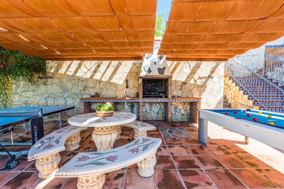 Täckt terrass, Biljardbord, Matplats utomhus, Matmöjligheter utomhus, Matplats, Grill, Tegelgrill, Bordtennis, Solstolar, Parasoll, Tvättmaskin