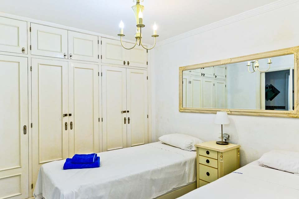Enkelsängar, luftkonditionering, badkar, anslutande badrum