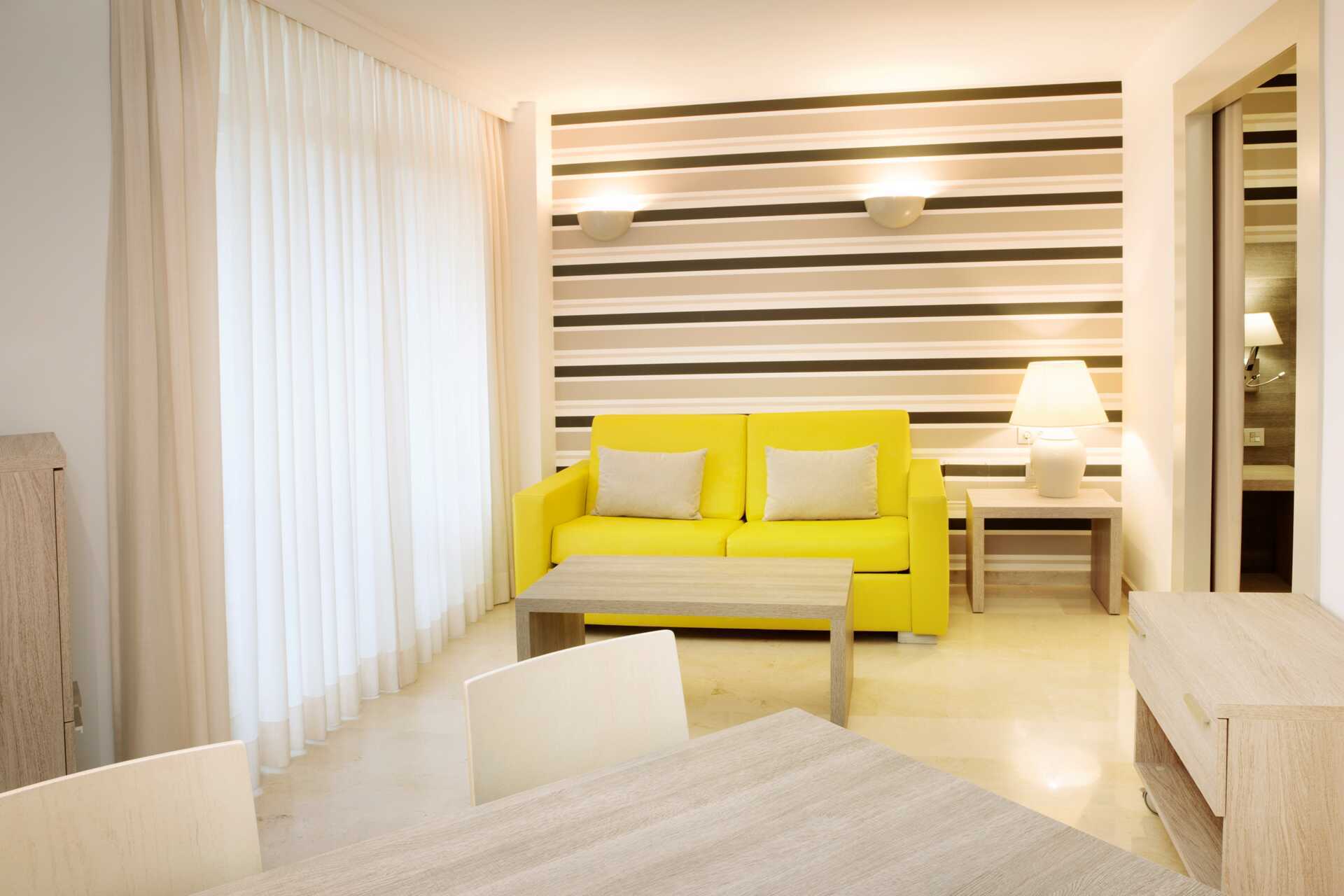 Svit med balkong. Sviten består av ett sovrum och ett vardagsrum. En dubbelsäng eller två enkelsängar. Möjlighet till extrabäddar i bäddsoffa och i hopvikbar säng. Wifi, luftkonditionering och deponering ingår. Minibar. Vattenkokare. Tv med internationella kanaler. Hårtork. Badrum med badkar eller dusch samt wc. Städning 7 ggr/vecka.