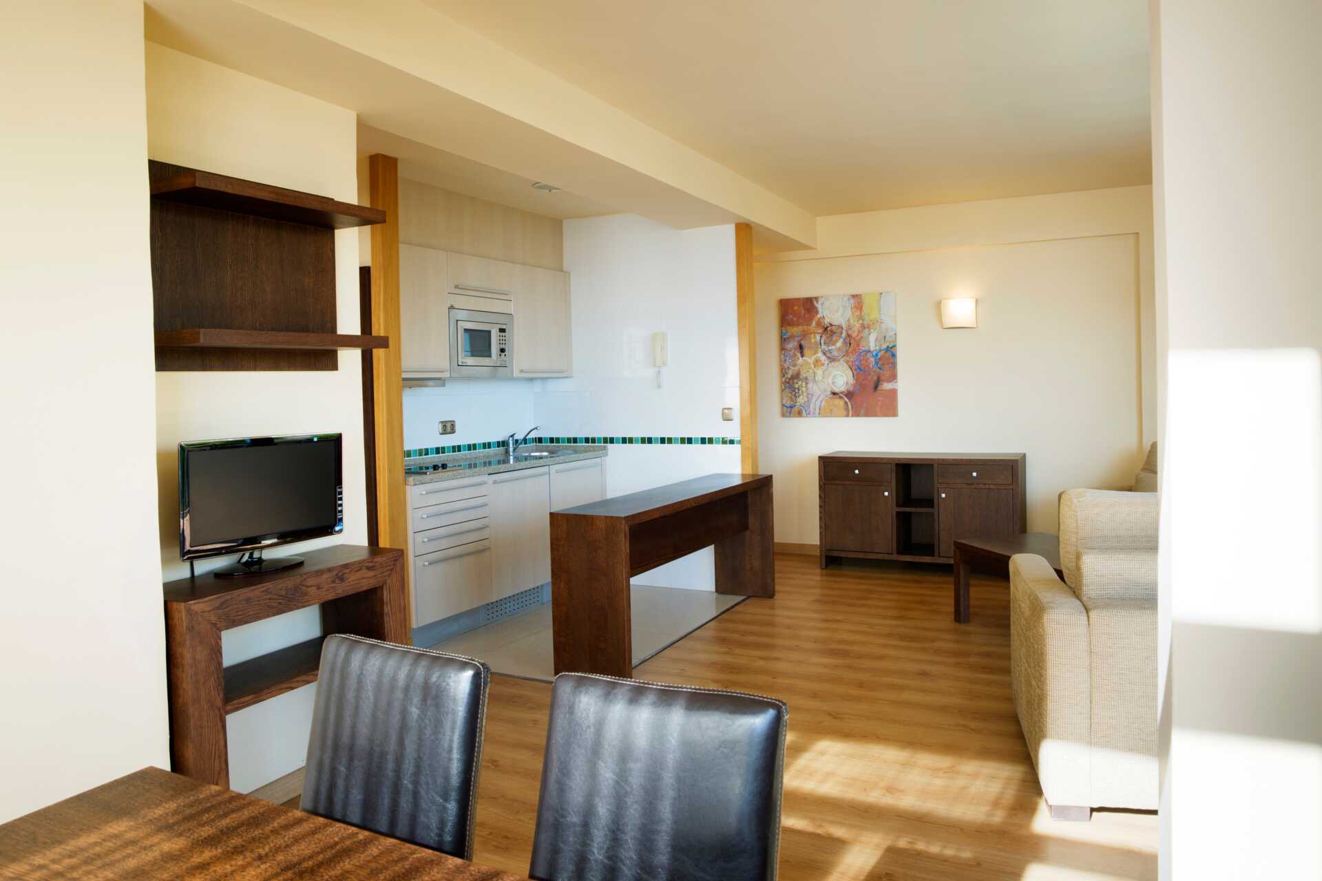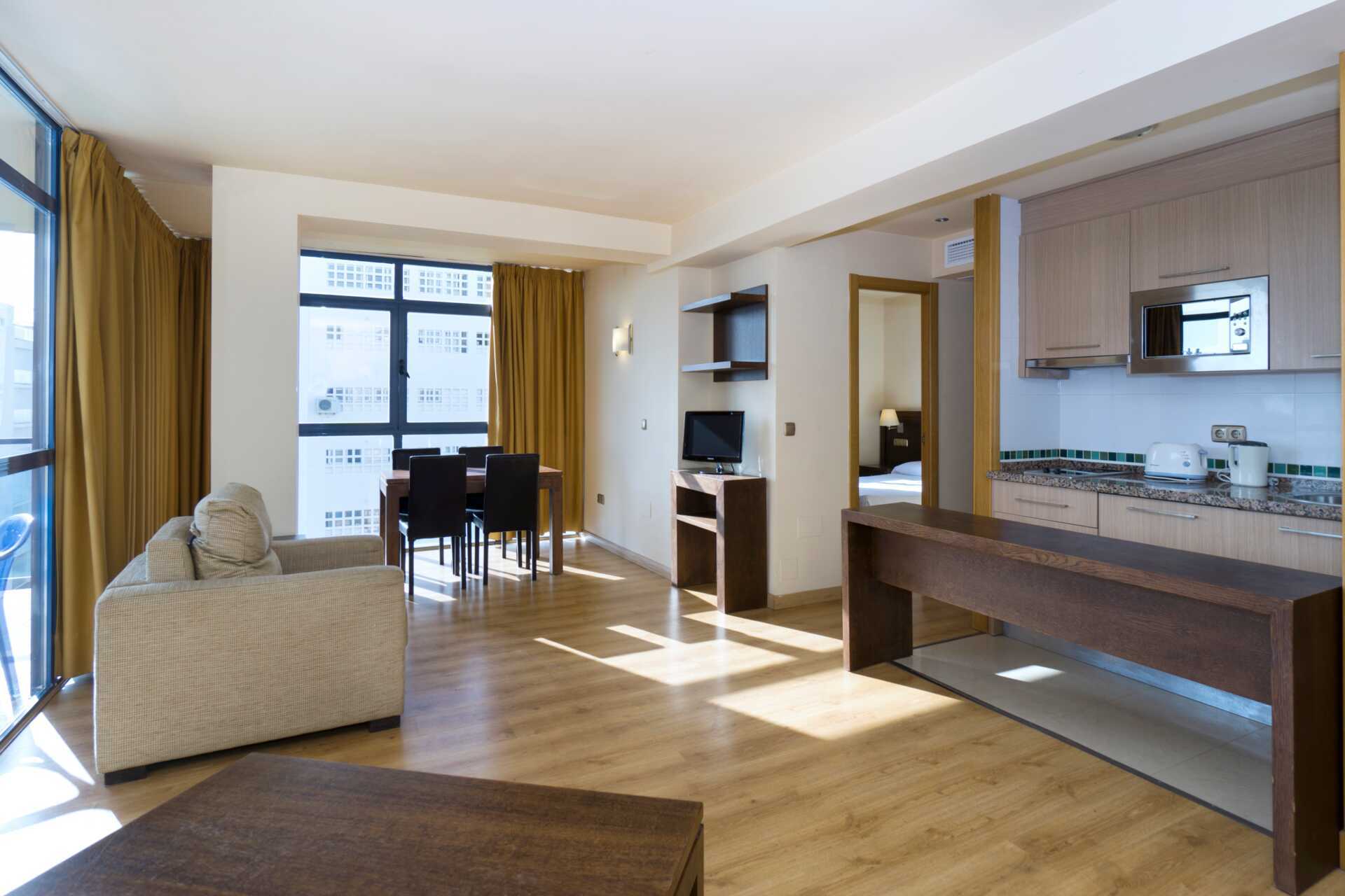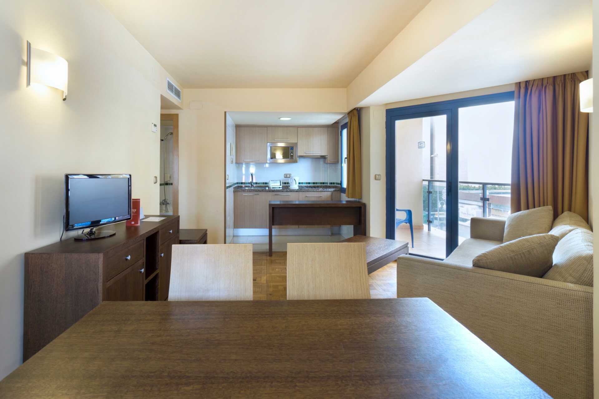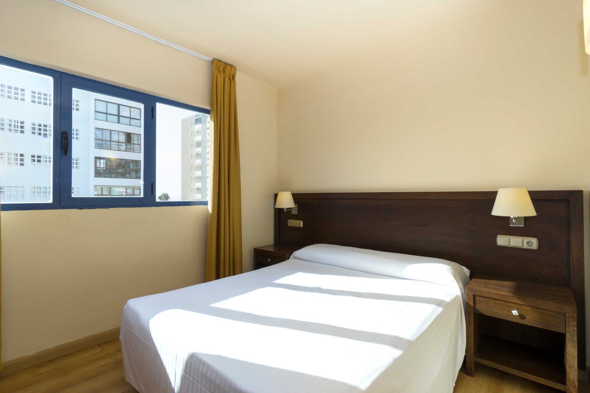 Tvårumslägenhet med balkong eller terrass. Sovrum och kombinerat vardagsrum/minikök. En dubbelsäng eller två enkelsängar. Möjlighet till extrabäddar i en bäddsoffa. Minikök med kokplattor, kylskåp, mikrovågsugn, kaffebryggare, vattenkokare, brödrost samt enkel köksutrustning. Luftkonditionering ingår. Deponering och wifi mot avgift. Tv med internationella kanaler. Hårtork. Badrum med badkar och wc. Städning 5 ggr/vecka.