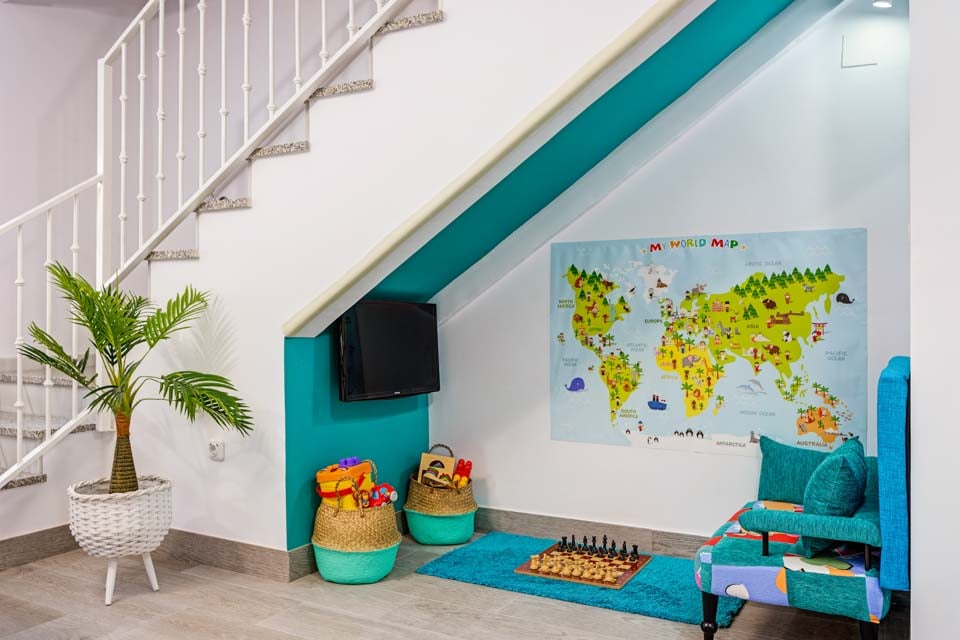 Detta rymliga hus är ljust och luftigt, noggrant utformat för en hemtrevlig känsla med allt underhållningsutrymme du behöver. Det finns tre våningar med ett modernt kök och matplats, vardagsrum, tre badrum och fyra sovrum. Det stora sovrummet på andra våningen har även egen minibar, kaffebryggare och TV, samt ett eget duschrum och solarium.
