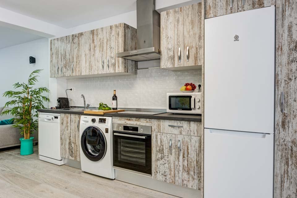 Ugn, Spishäll, Frys, Kylskåp, Kyl- och frysskåp, Diskmaskin, Mikrovågsugn, Tvättmaskin, Matplats, Dörrar till terrass, Dörrar till terrass/trädgård, Smart-TV