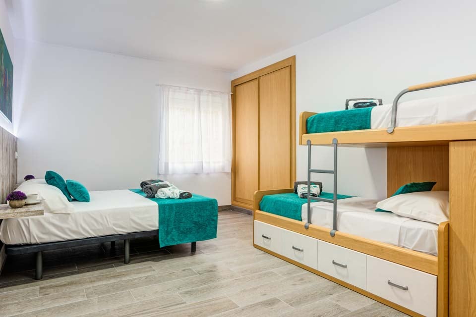 King size-säng, våningssängar, luftkonditionering