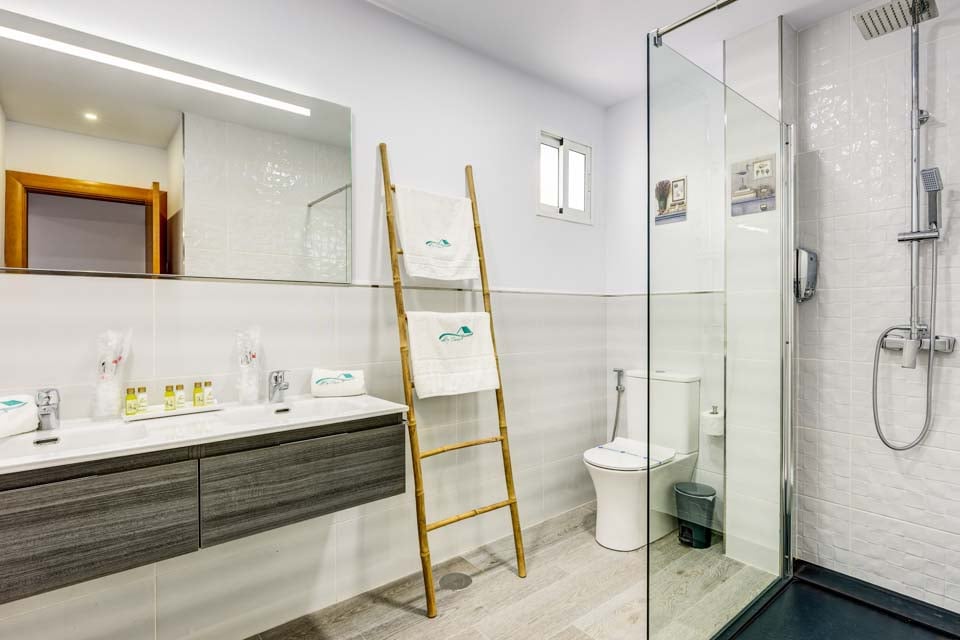 För att komma till villan finns en öppen stig som är 178 cm bred med ett trappsteg och en ramp. Ytterdörren har en bredd på 71 cm medan övriga ingångsdörrar har en bredd på 71 cm. Utomhusmarken är plan med ett 10 cm trappsteg in i villan. Bred stig och ramp till ytterdörren från entrégrinden. Stigen till poolen är 156 cm bred och det finns en ramp. Själva poolen har trappåtkomst. Inne i villan är den bredaste sovrumsdörren 70 cm bred och den bredaste badrumsdörren är 67 cm bred och den har en dusch. Det finns 16 trappsteg till första våningen. Dörren in till köket är 72 cm bred medan dörren in till vardagsrummet är 72 cm bred. *Observera att även om vi har gjort allt för att säkerställa att informationen som lämnas är korrekt, kan fel uppstå och om du behöver mer specifik information om villan, tveka inte att kontakta oss.