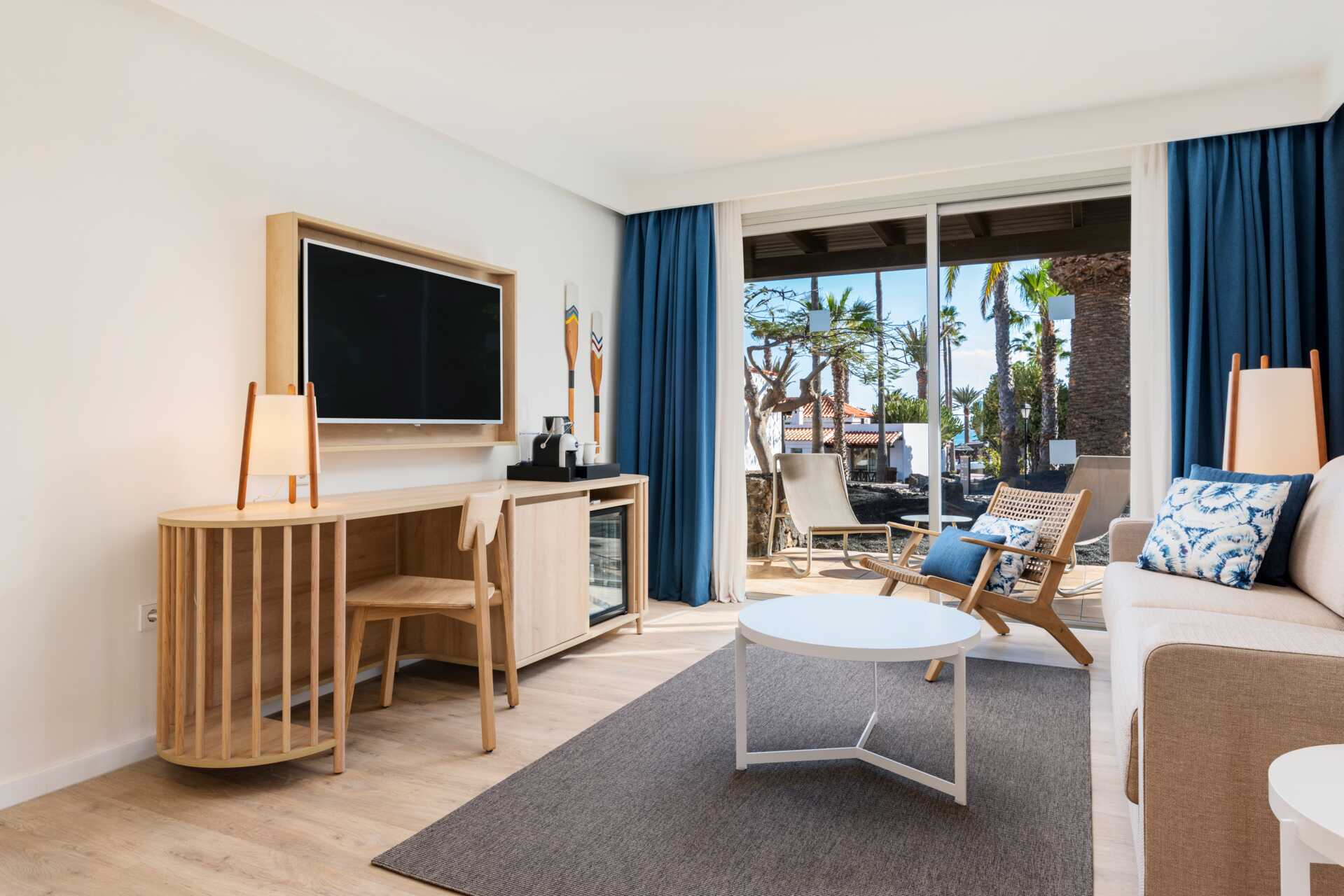 Tvårumssvit med balkong eller terrass. Vardagsrum och sovrum. En dubbelsäng. Kuddmeny. Wifi, luftkonditionering, och deponering ingår. Vattenkokare samt kaffe och te. Minibar - fylld vid ankomst, påfyllning mot kostnad, vattenflaska ingår och fylls på under veckan. Tv med internationella kanaler. Badrockar och tofflor. Hårtork. Badrum med dusch och wc. Städning 7 ggr/vecka.