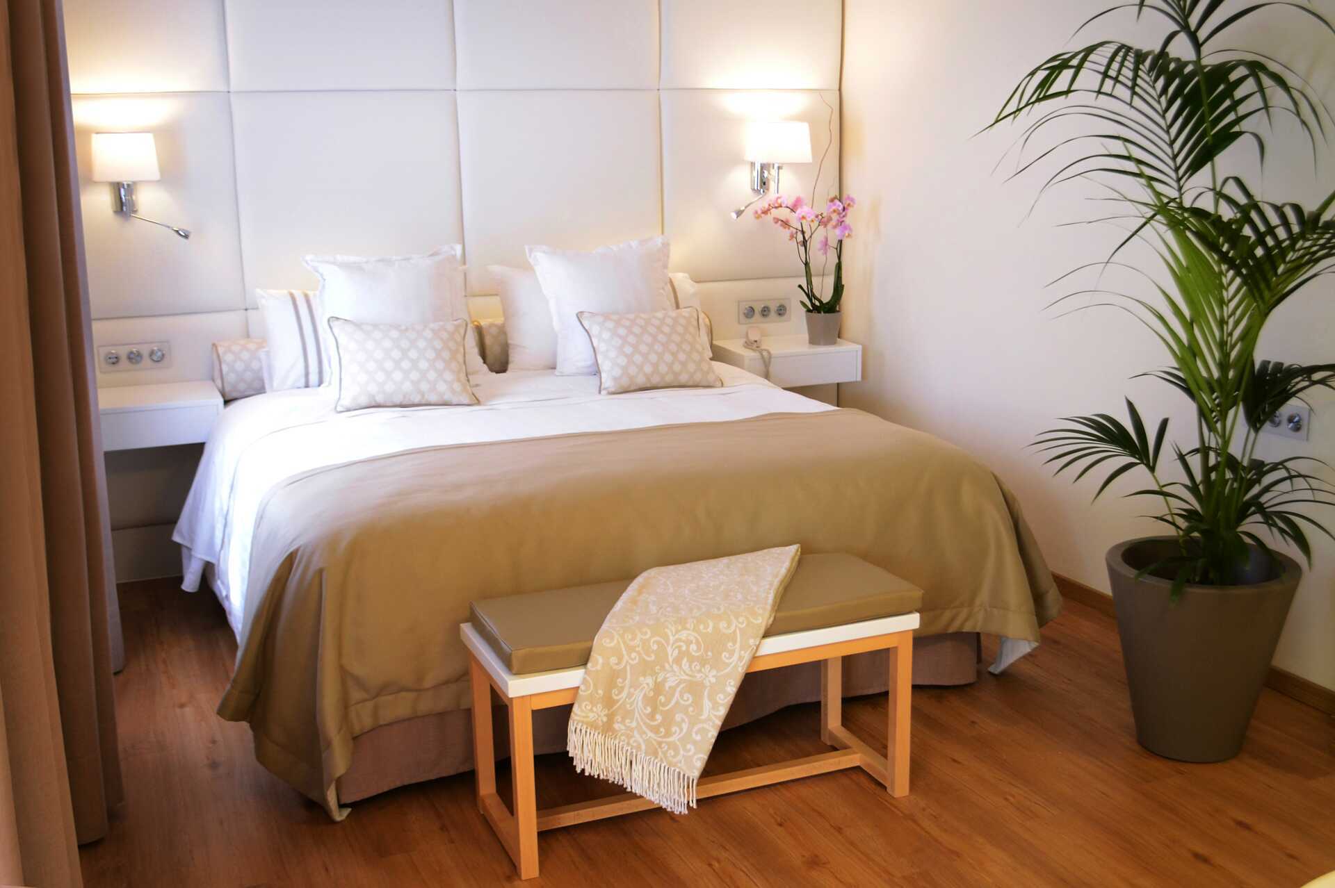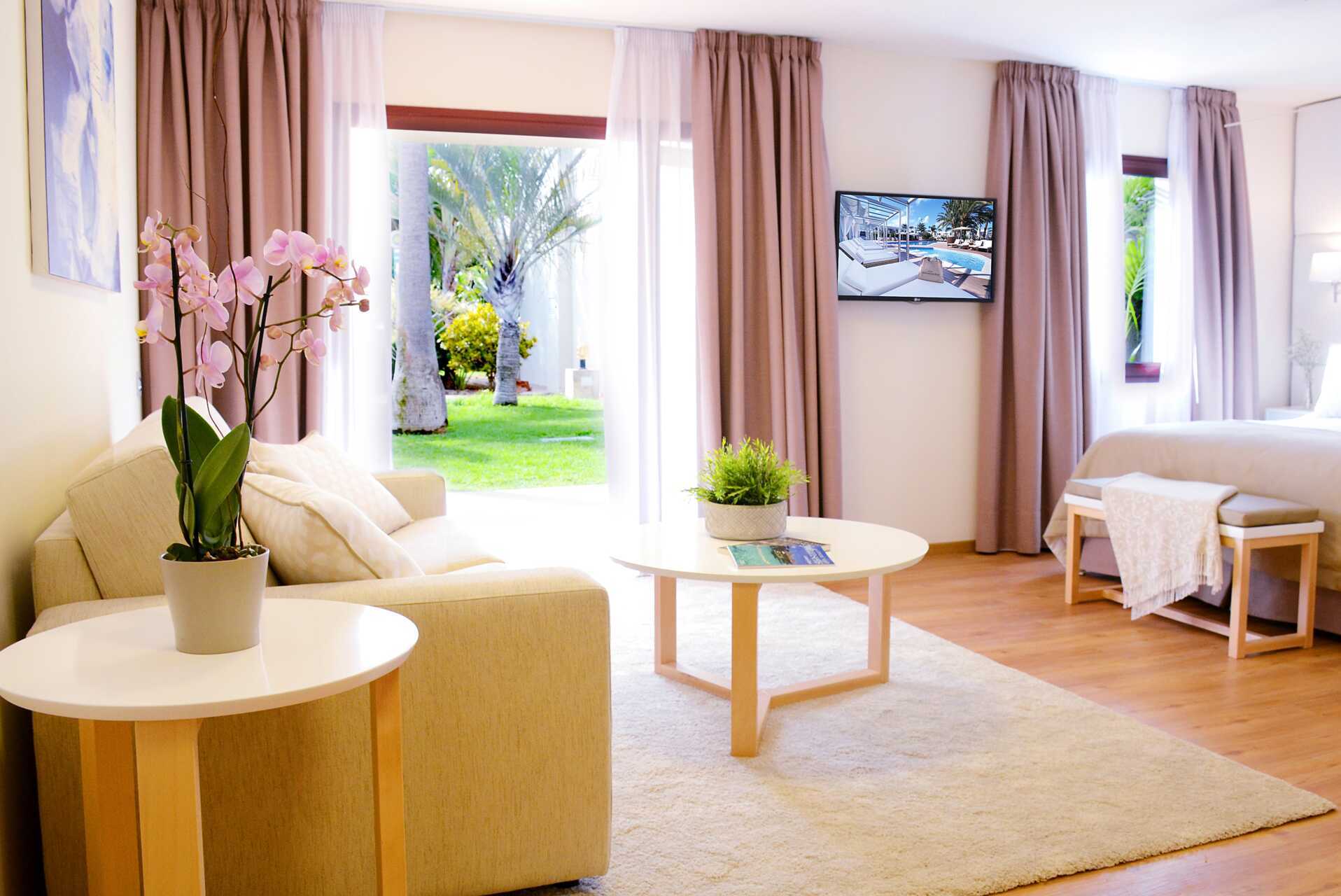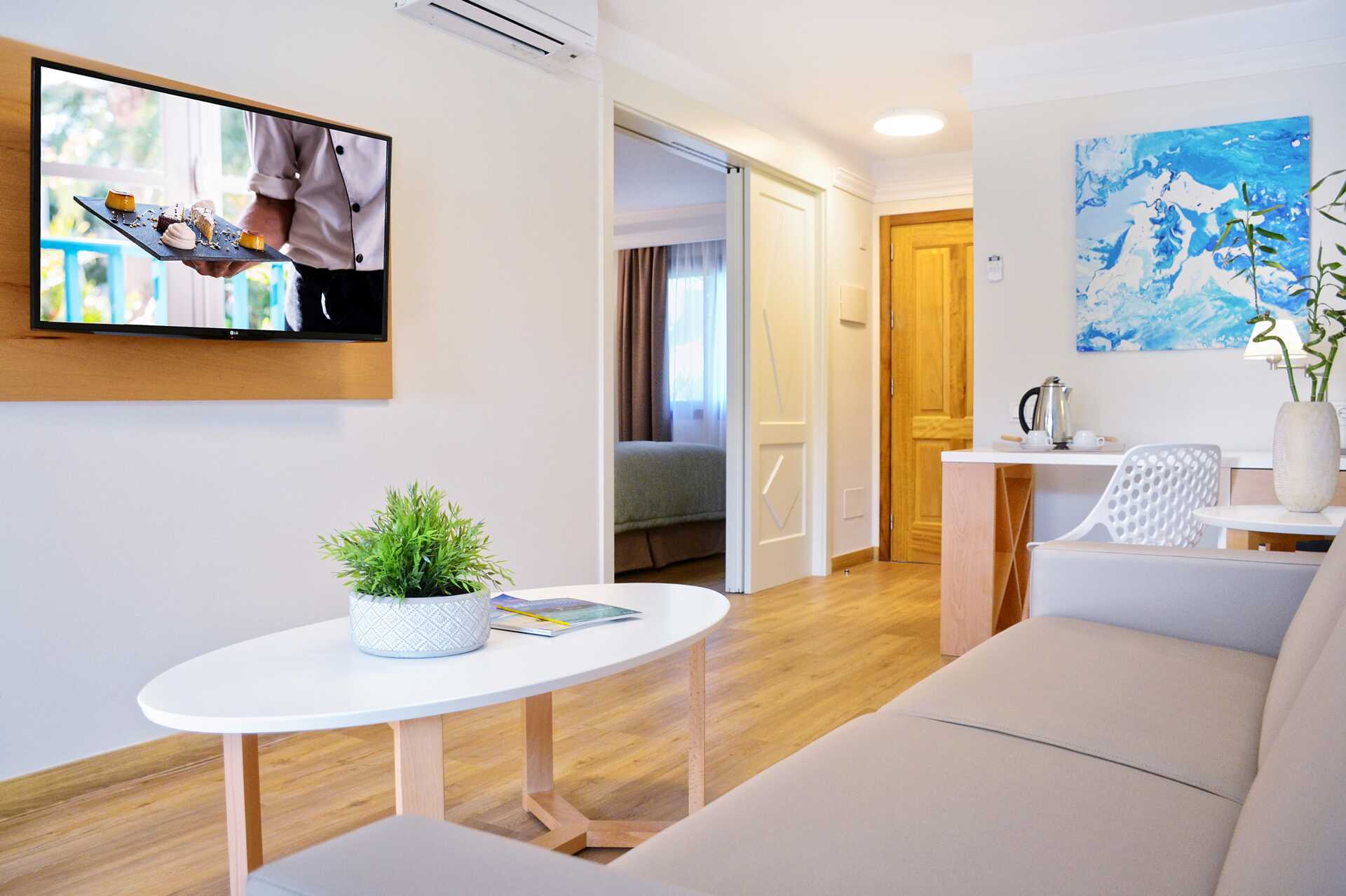 Juniorsvit med balkong eller terrass, vissa med poolutsikt. Två enkelsängar eller en dubbelsäng. Möjlighet till extrabädd i bäddsoffa. Wifi, luftkonditionering och deponering ingår. Kylskåp. Vattenkokare samt kaffe och te. Tv med internationella kanaler. USB-port för laddning av elektronisk utrustning. Hårtork. Badrum med badkar eller dusch samt wc. Städning 7 ggr/vecka.