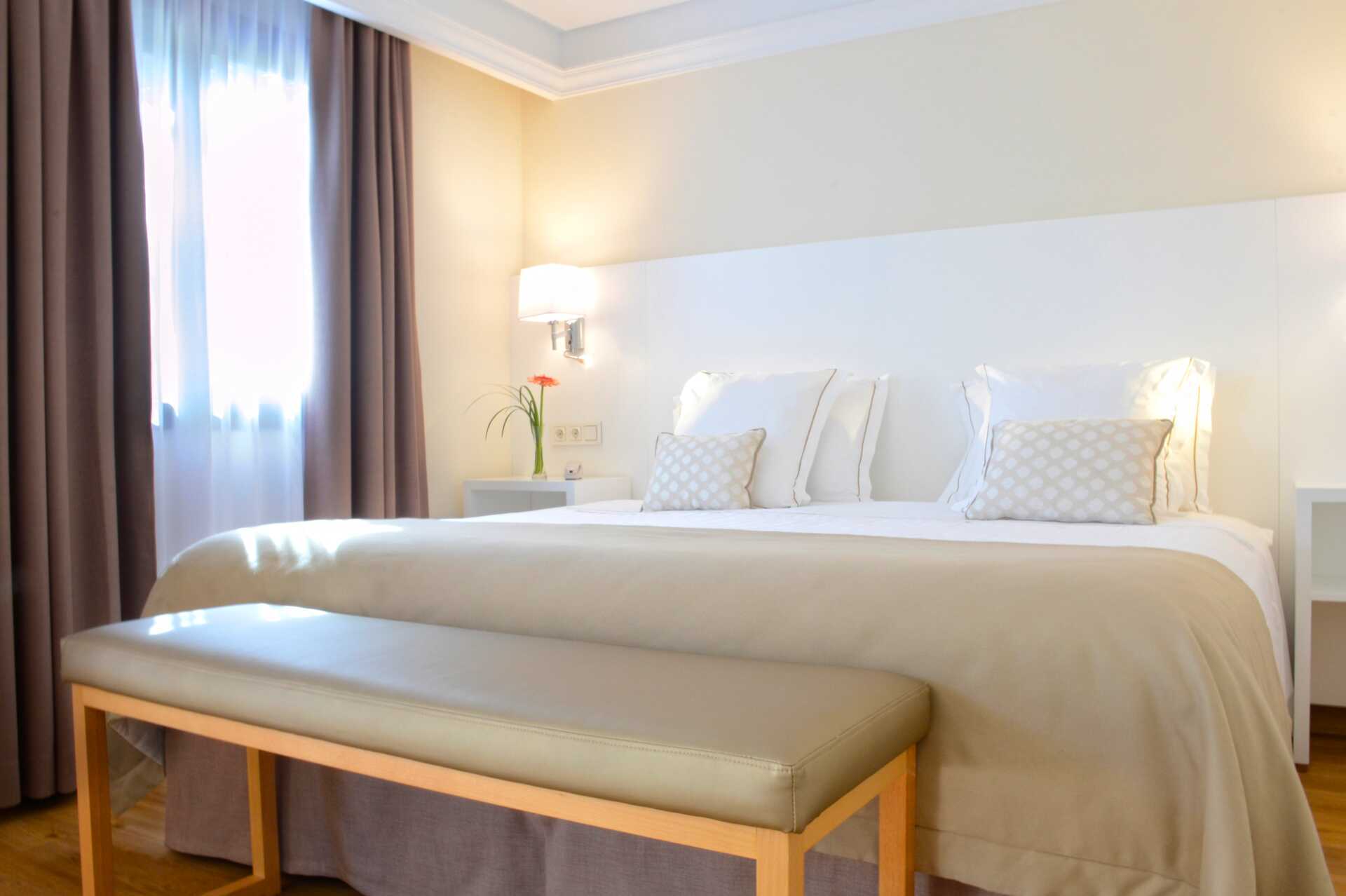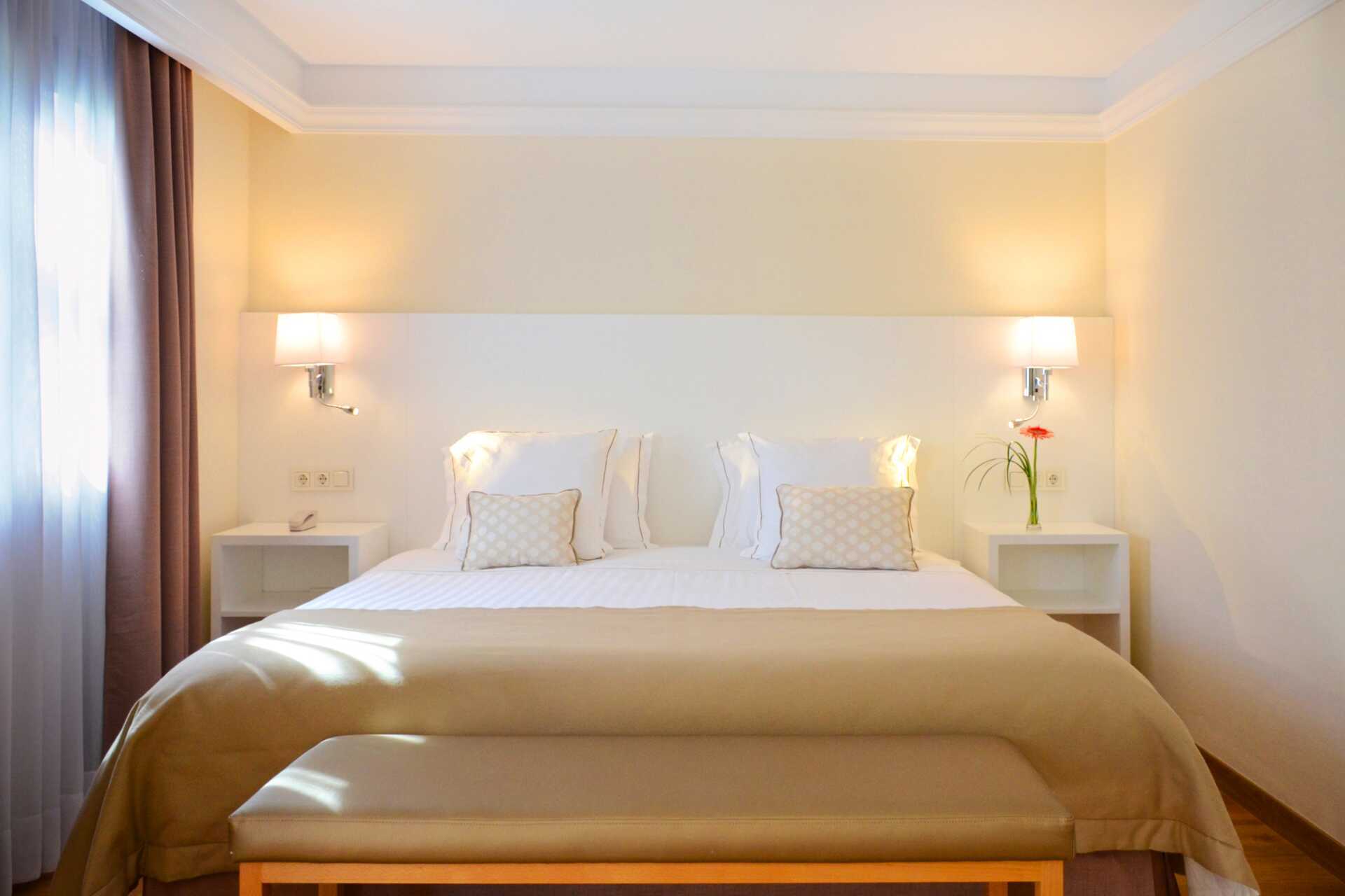 Tvårumssvit med balkong eller terrass. Sviten består av två sovrum som separeras av en skjutdörr. Det ena sovrummet har dubbelsäng och det andra sovrummet har två enkelsängar och öppen planlösning med vardagsrummet. Möjlighet till extrabädd i bäddsoffa. Wifi, luftkonditionering och deponering ingår. Kylskåp. Vattenkokare samt kaffe och te. Tv med internationella kanaler. USB-port för laddning av elektronisk utrustning. Hårtork. Badrum med badkar eller dusch samt wc. Städning 7 ggr/vecka.