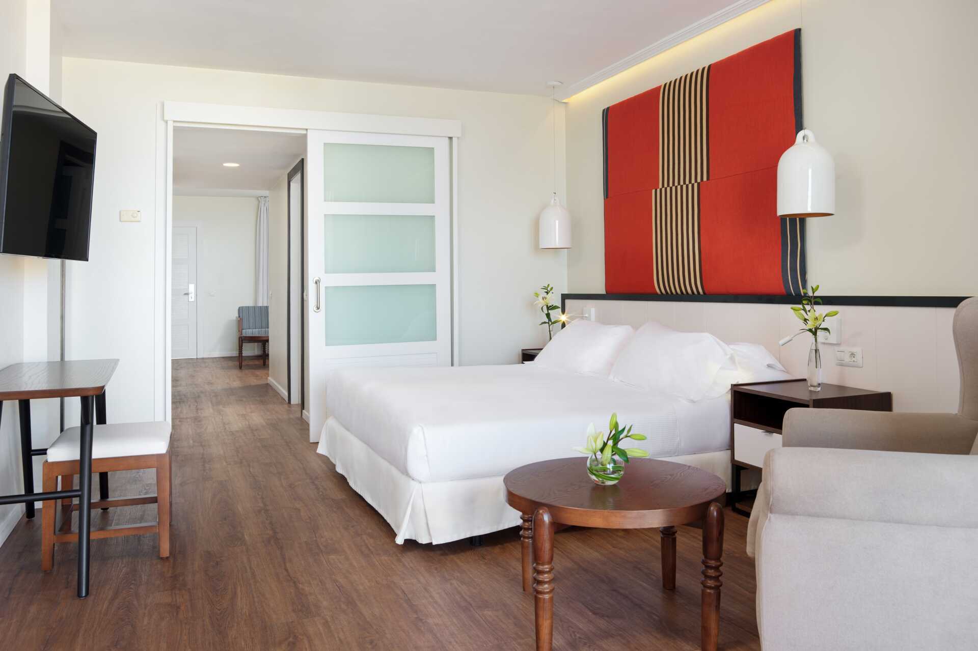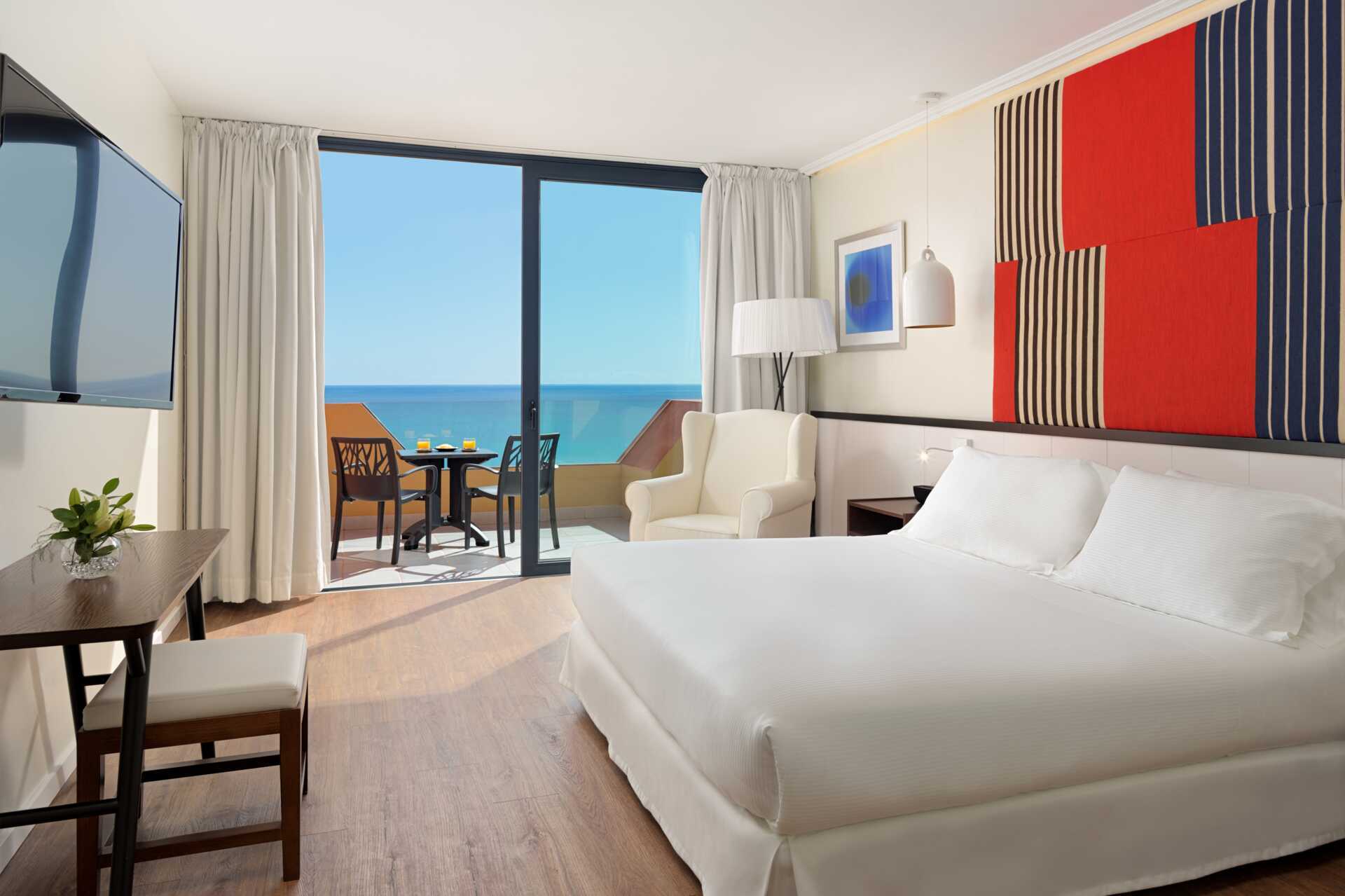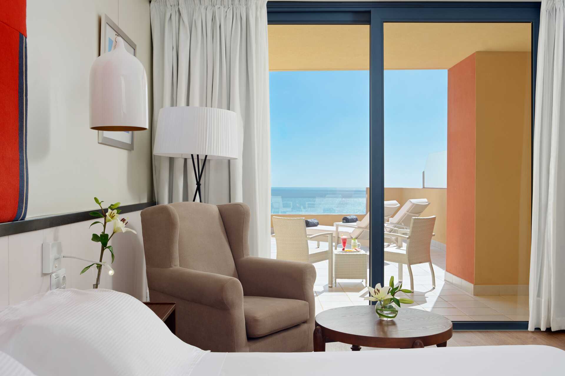 Juniorsvit med balkong eller terrass och havsutsikt. Sviten består av ett sovrum och ett vardagsrum. En dubbelsäng. Möjlighet till extrabädd i bäddsoffa. Wifi och luftkonditionering ingår. Deponering mot avgift. Minibar mot avgift. Nespresso maskin. Vattenkokare mot avgift. Tv med internationella kanaler. Hårtork. Badrock och tofflor. Badrum med badkar och wc. Städning 5 ggr/vecka