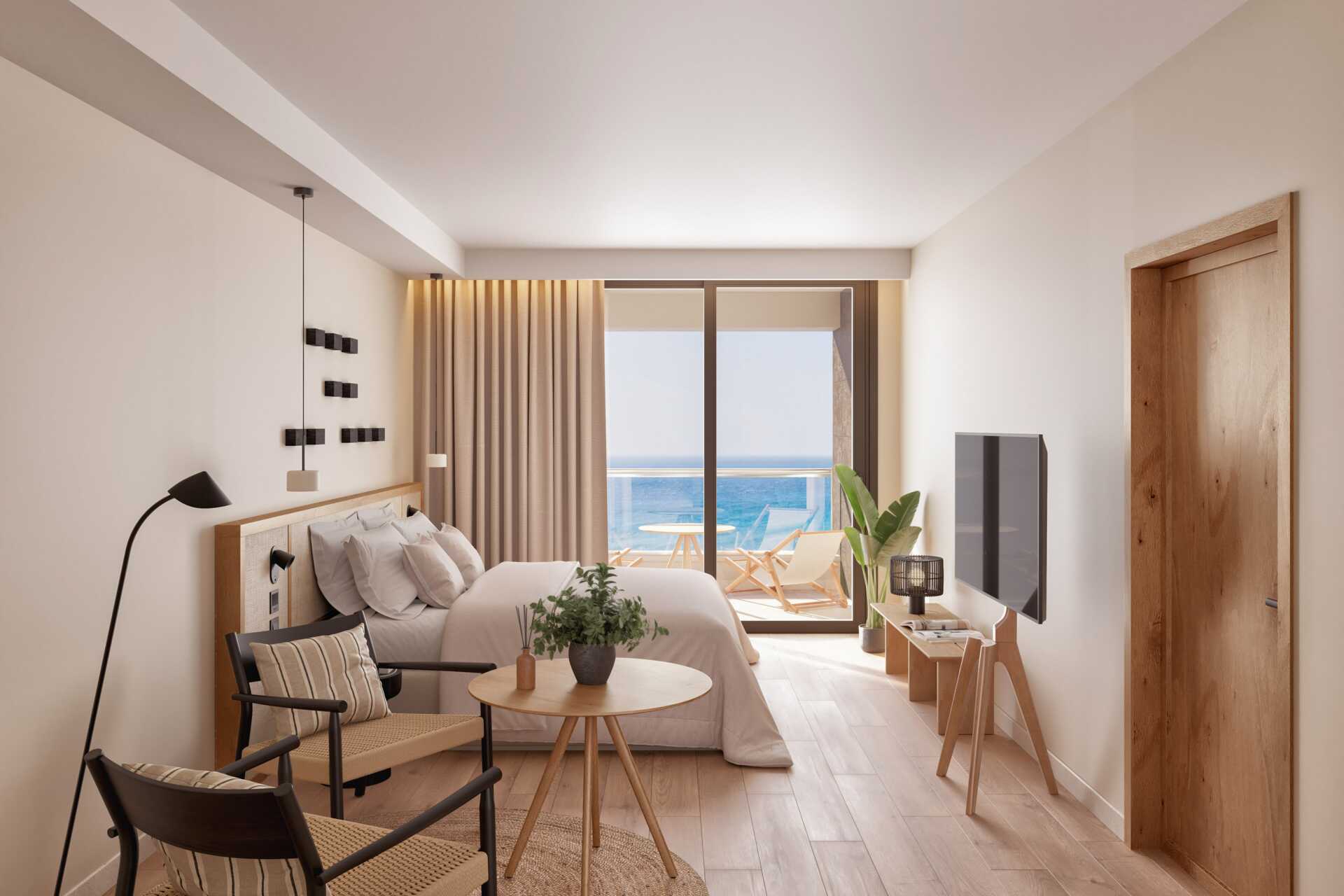 Superiorrum med balkong eller terrass och med havsutsikt. Åldersgränsen för att bo i superiorrummet är 16 år. En dubbelsäng eller två enkelsängar. Möjlighet till extrabädd i bäddsoffa. Wifi och luftkonditionering ingår. Takfläkt. Deponering mot avgift. Minibar mot avgift. Tv med internationella kanaler. Strykjärn och strykbräda mot deposition. Badrockar och tofflor. Hårtork. Badrum med dusch och wc. Städning 7 ggr/vecka.
