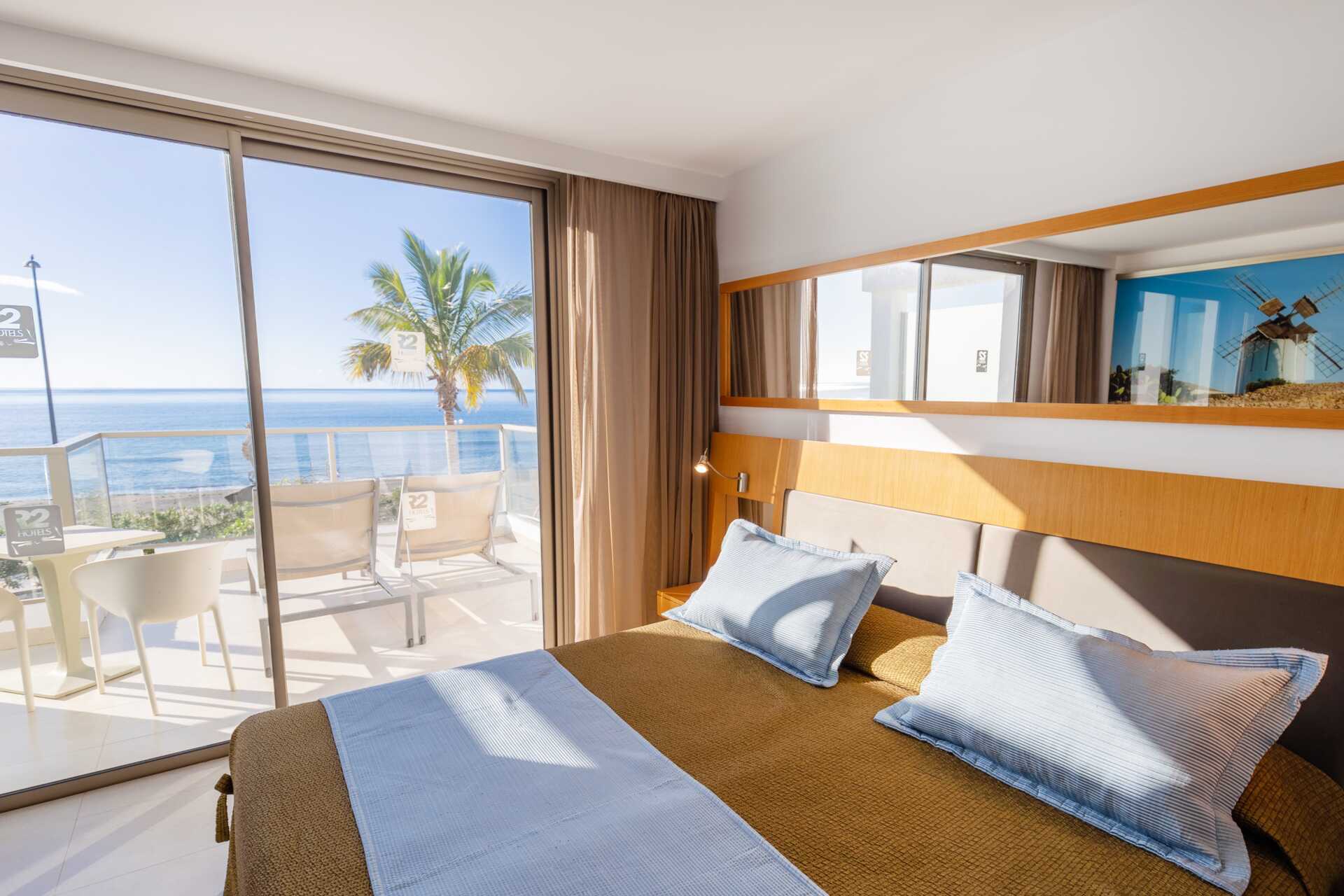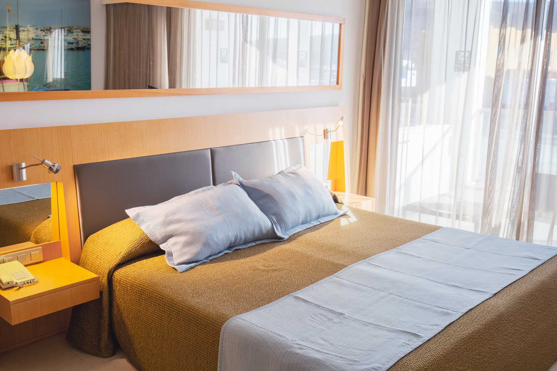 Dubbelrum med balkong eller terrass med poolutsikt eller med havsutsikt. Två enkelsängar. Wifi och centralstyrd luftkonditionering ingår. Deponering mot avgift. Minibar. Tv med internationella kanaler. Hårtork. Badrum med badkar och wc. Städning 7 ggr/vecka.