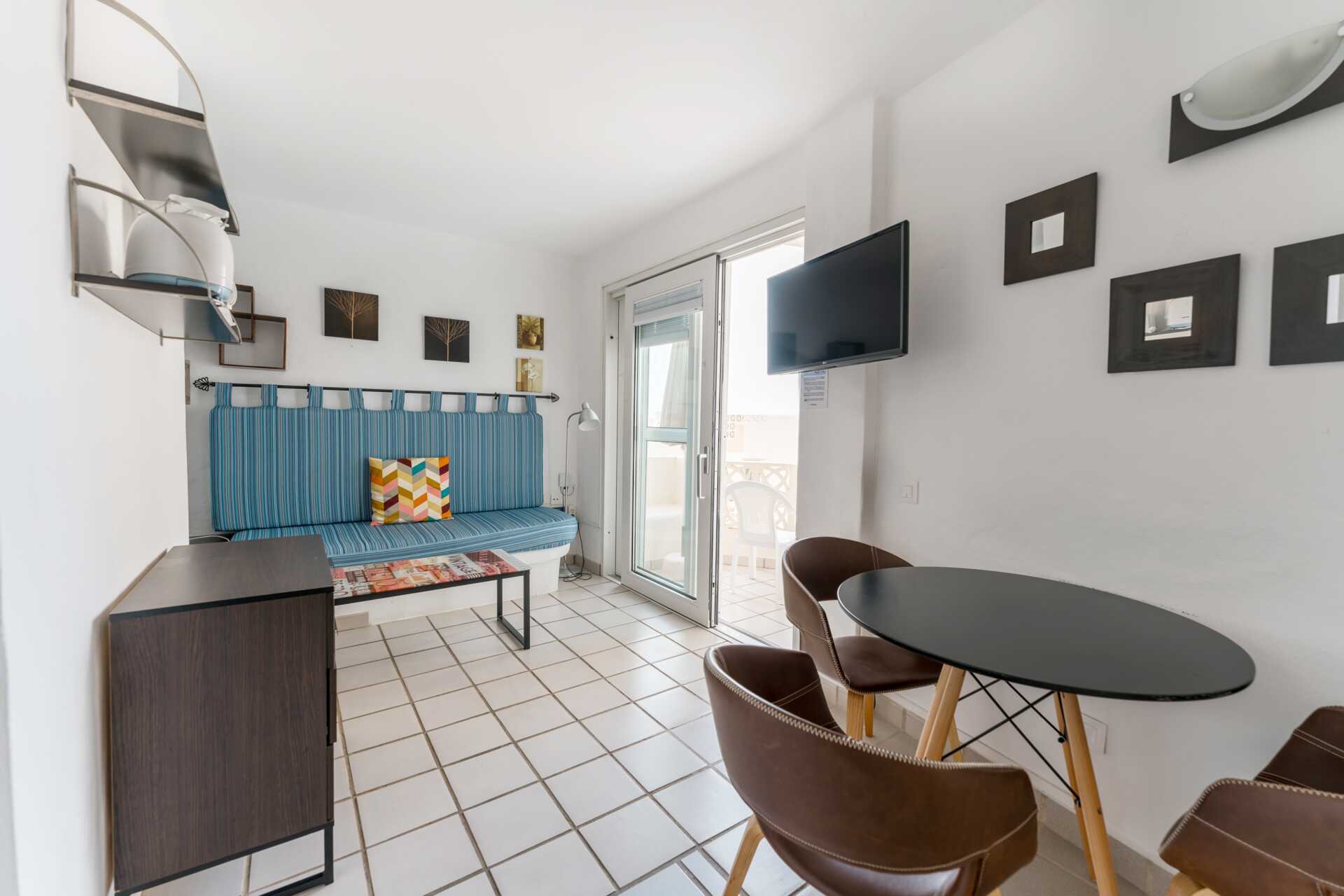 Renoverad tvårumslägenhet med terrass eller balkong, vissa med havsutsikt. Ett sovrum och kombinerat vardagsrum med minikök. Planlösning och storlek på både lägenhet och uteplats varierar. Två enkelsängar. Möjlighet till extrabädd i bäddsoffa. Minikök med kokplattor, kylskåp, brödrost, kaffebryggare, vattenkokare, smörgåsgrill och enkel köksutrustning. Wifi ingår. Deponering mot avgift. Tv med internationella kanaler. Hårtork. Badrum med dusch och wc. Städning 5 ggr/vecka.