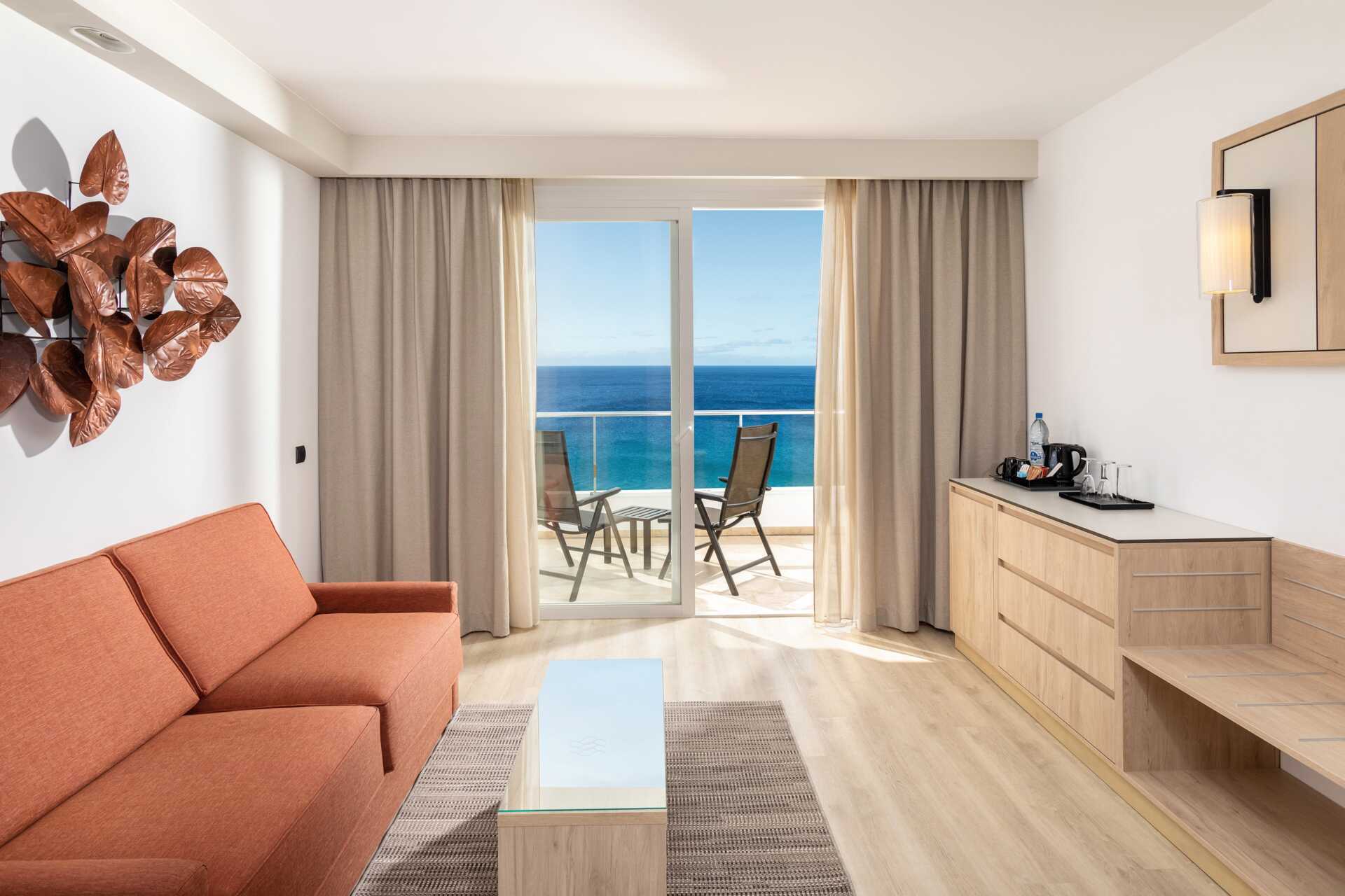 Dubbelrum med balkong eller terrass, vissa med havsutsikt och vissa med begränsad havsutsikt. I rummet finns en nivåskillnad, två trappsteg, mellan sovrumsdelen och vardagsrumsdelen. En dubbelsäng eller två enkelsängar. Möjlighet till extrabäddar i bäddsoffa. Wifi och luftkonditionering ingår. Deponering mot avgift. Takfläkt. Vattenkokare samt kaffe och te. Tv med internationella kanaler. Strykjärn och strykbräda. Badrockar. Hårtork. Badrum med två handfat, separat dusch och separat wc.