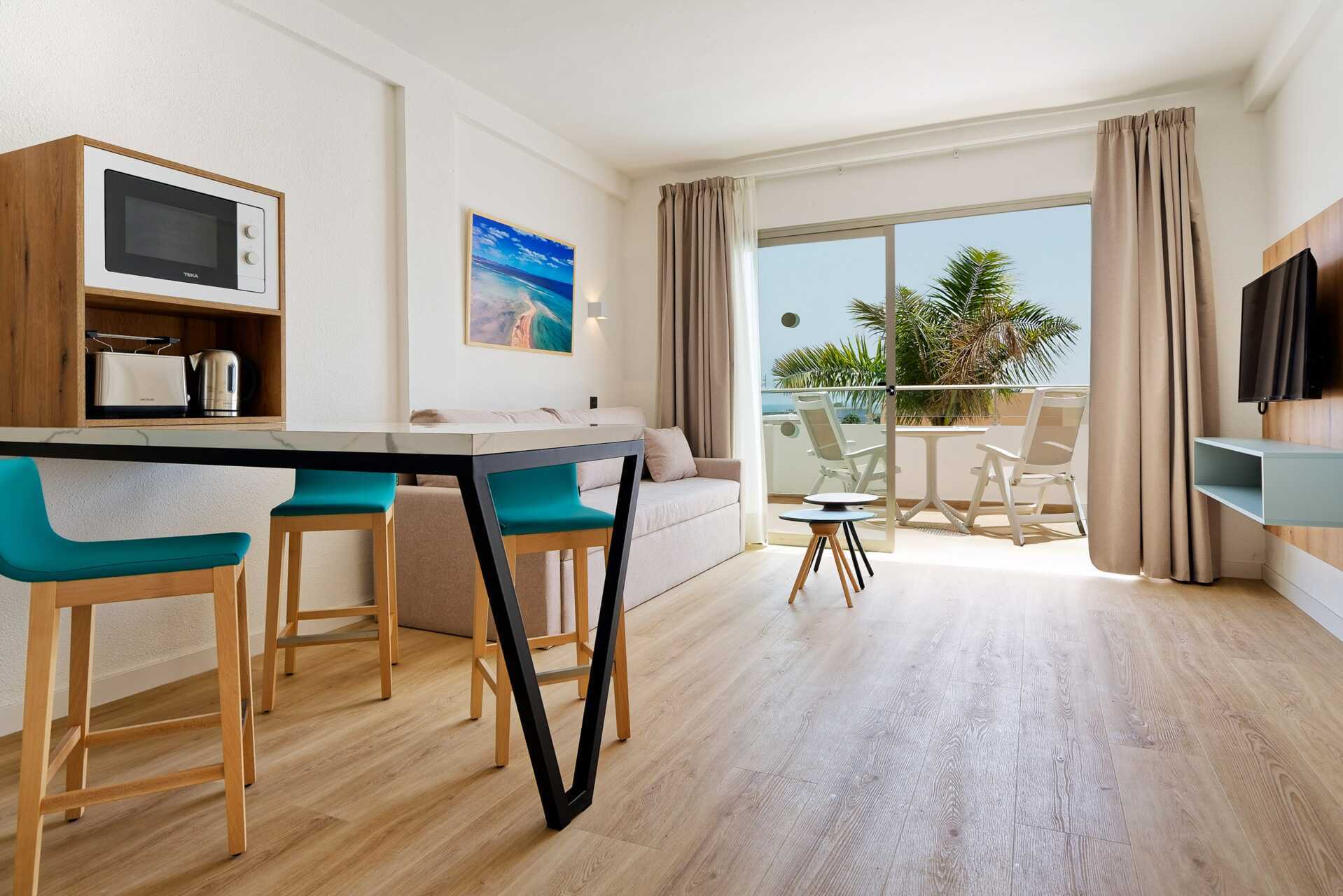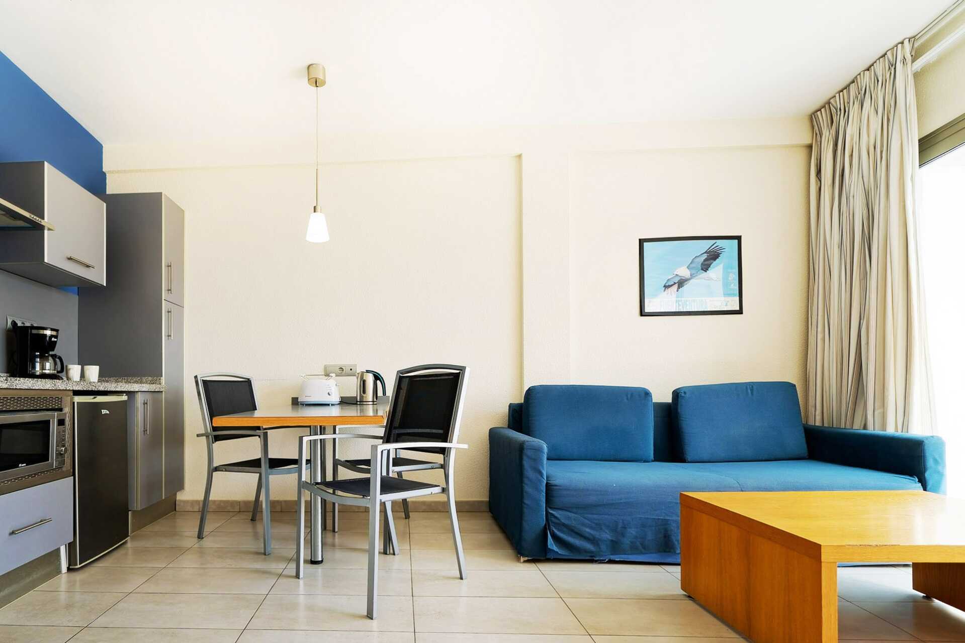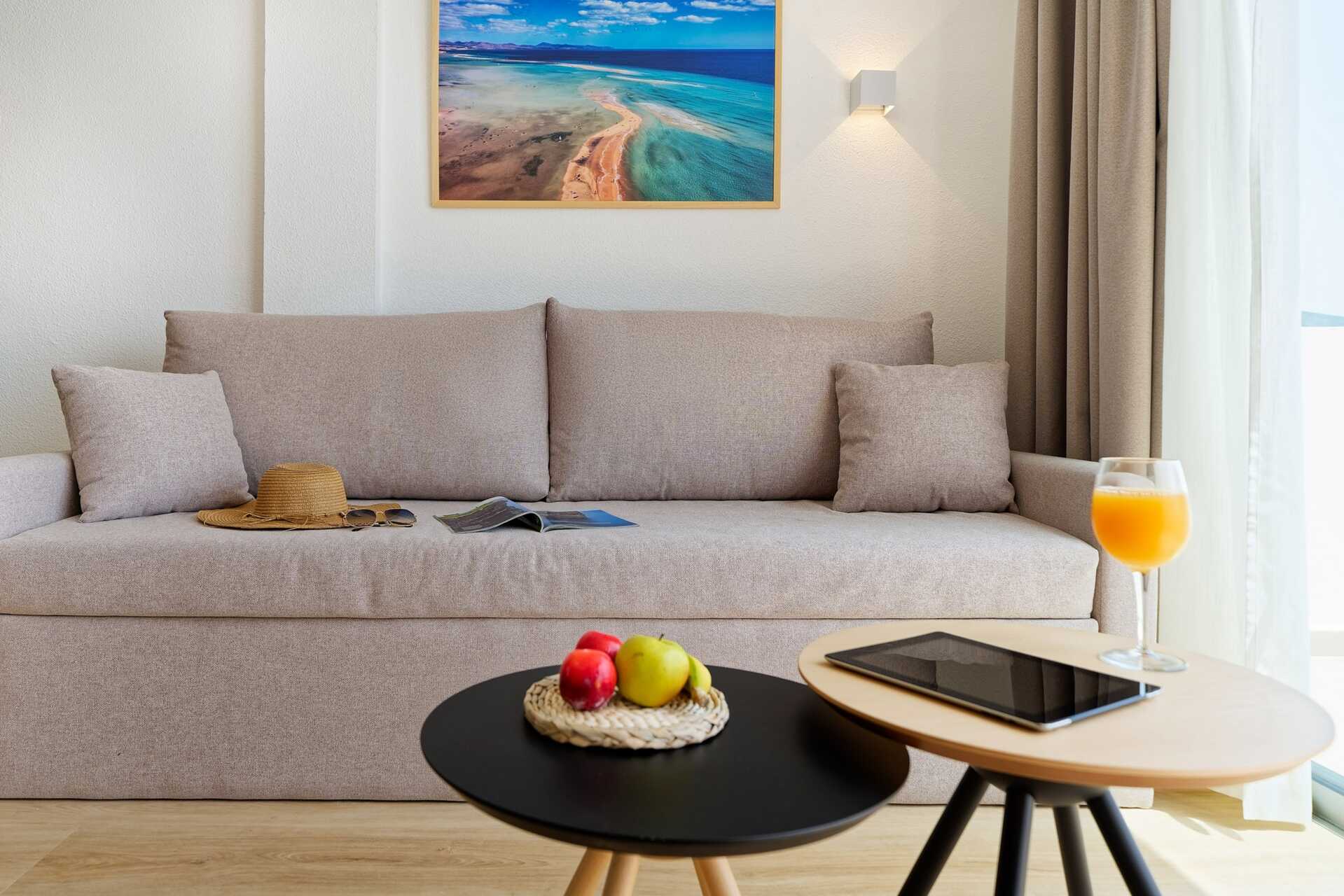 Tvårumslägenhet superior med balkong och havsutsikt. Lägenheterna ligger på våning 4, 5 eller 6. Sovrum och kombinerat vardagsrum/minikök. Två enkelsänger. Möjlighet till extrabädd i bäddsoffa. Wifi ingår. Deponering mot avgift. Minikök med kokplattor, kylskåp, kaffebryggare, mikrovågsugn och enkel köksutrustning. Tv med internationella kanaler. Badrum med dusch och wc. Städning 3 ggr/vecka.