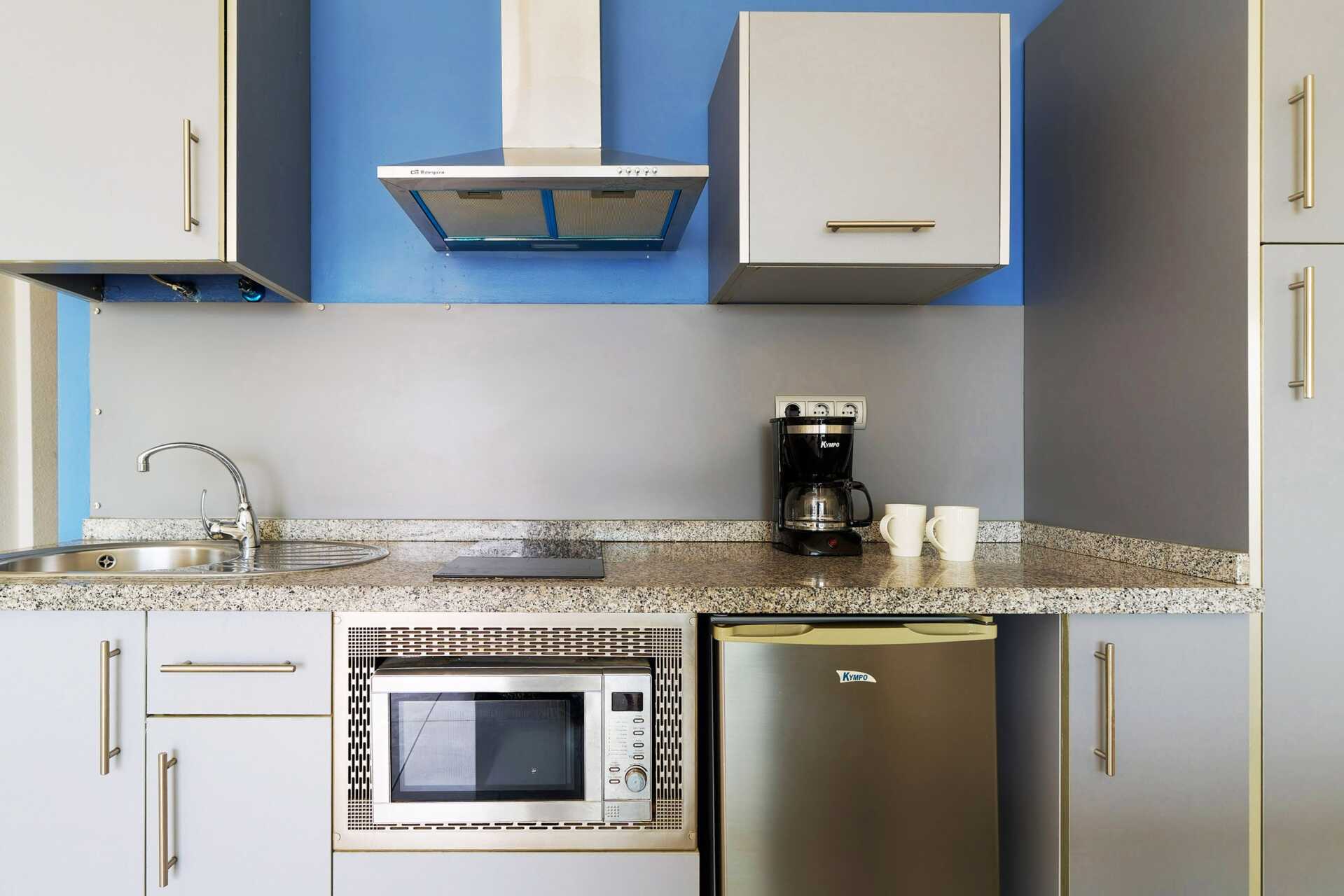 Tvårumslägenhet med balkong. Sovrum och kombinerat vardagsrum/minikök. Två enkelsänger. Möjlighet till extrabädd i bäddsoffa. Wifi ingår. Deponering mot avgift. Minikök med kokplattor, kylskåp, vattenkokare, kaffebryggare och enkel köksutrustning. Tv med internationella kanaler. Badrum med dusch och wc. Städning 2 ggr/vecka.
