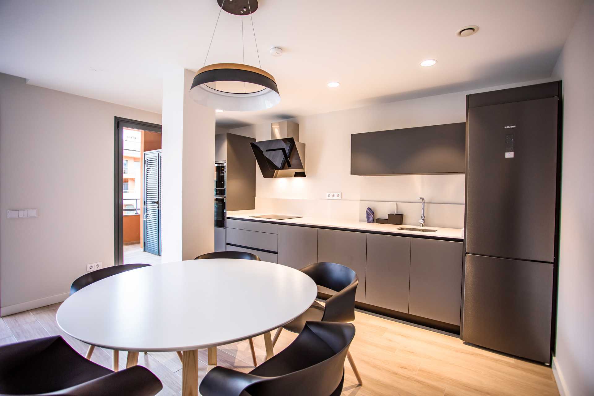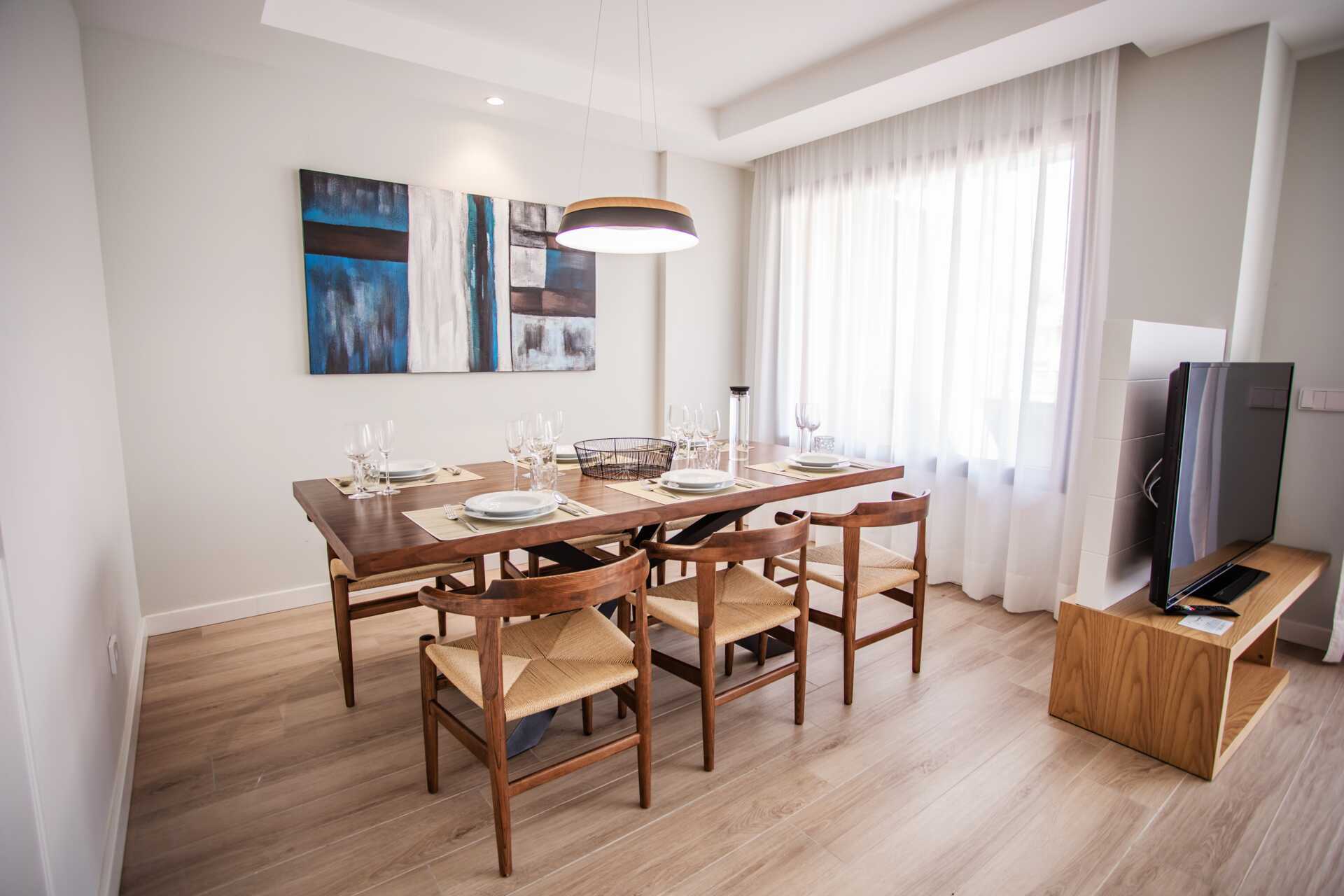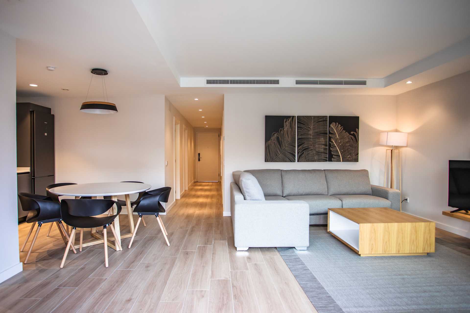 Fyrarumslägenhet med balkong. Tre sovrum och ett kombinerat vardagsrum&minikök. Två sovrum har två enkelsängar i varje rum och det tredje rummet har en bäddsoffa. Minikök med kylskåp och frys, diskmaskin, kaffebryggare, vattenkokare, brödrost, ugn och bra köksutrustning. Wifi, deponering och luftkonditionering ingår. Tv med internationella kanaler. Strykjärn. Tvättmaskin. Hårtork. Tre badrum med dusch och wc. Städning 5 ggr/vecka.
