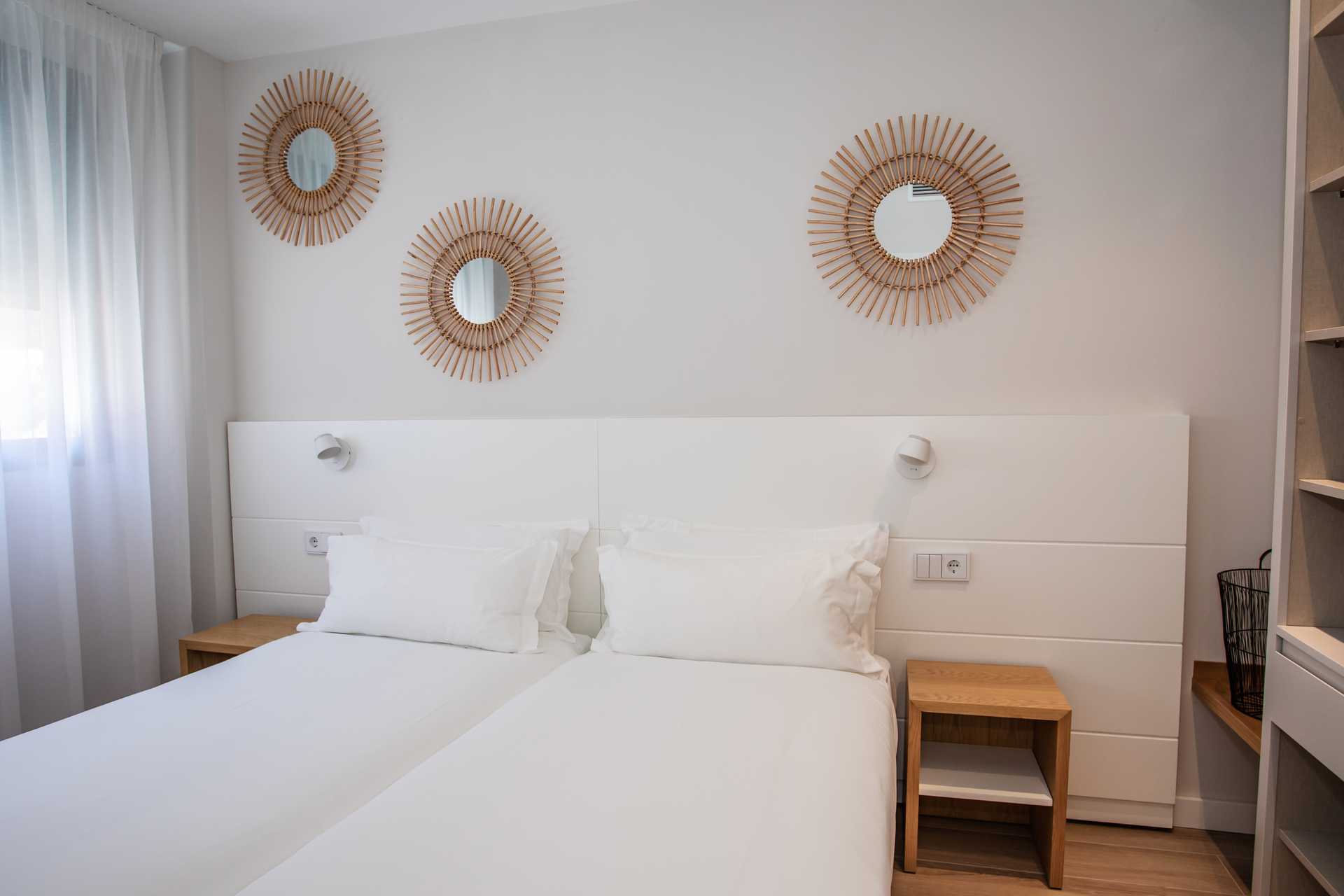 Trerumslägenhet superior med balkong eller terrass. Två sovrum och ett kombinerat vardagsrum med minikök. Ett sovrum med en dubbelsäng och ett med två enkelsängar. Minikök med kylskåp och frys, diskmaskin, kaffebryggare, vattenkokare, mikrovågsugn, brödrost, ugn och bra köksutrustning. Wifi, deponering och luftkonditionering ingår. Tv med internationella kanaler. Strykjärn. Hårtork. Badrum med dusch och wc. Städning 5 ggr/vecka.