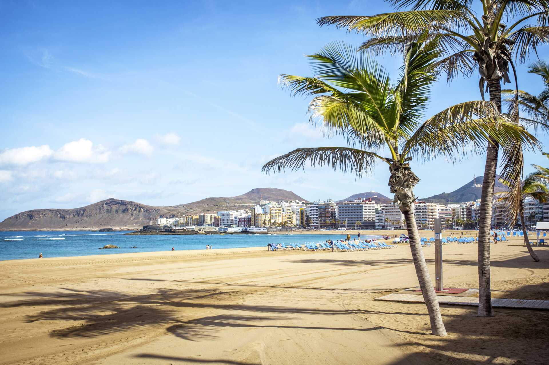 I Las Palmas ligger den legendariska Las Canteras-stranden där ett naturligt rev strax utanför dämpar vågorna som rullar in. Den 800 meter långa stranden Playa de las Alcaravaneras är populär bland både lokalbefolkningen och turister. Här pågår ofta strandfotboll och beachvolleyboll.