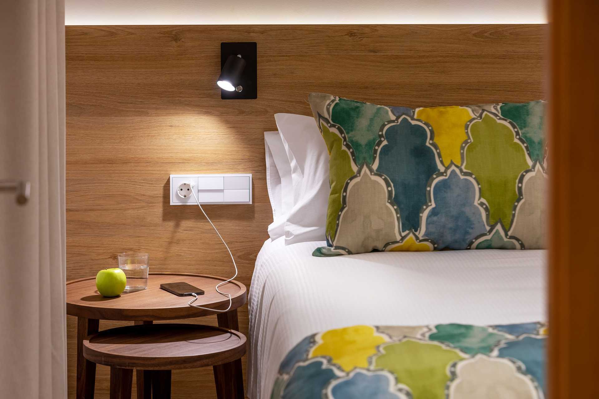 Tvårumslägenhet med balkong eller terrass. Sovrum och kombinerat vardagsrum med minikök. En dubbelsäng eller två enkelsängar. Minikök med kokplattor, kylskåp, mikrovågsugn, brödrost, vattenkokare, kaffebryggare och enkel köksutrustning samt diskmaskin. Wifi, deponering och luftkonditionering ingår. Tv med lokala kanaler. Tvättmaskin och torktumlare. Strykjärn och strykbräda. Hårtork. Badrum med dusch och wc. Lägenheten är städad vid ankomst, därefter sker ingen städning under vistelsen. Bor du två veckor städas lägenheten efter en vecka.