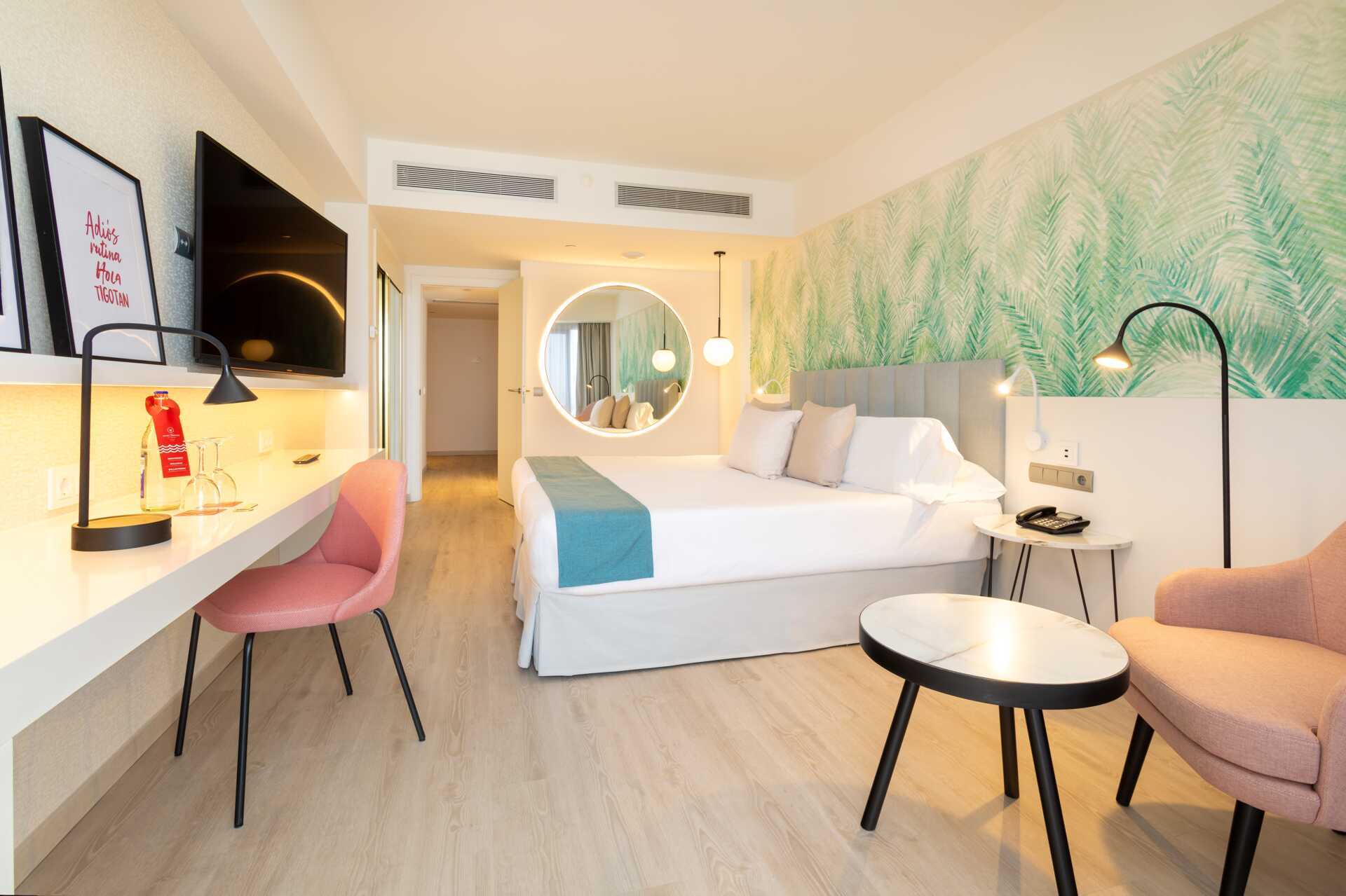 Deluxerum med balkong och direkt havsutsikt. Rummen har olika design och utformning, ingen garanti kan lämnas i vilket rumstyp man erhåller på plats. En dubbelsäng eller två enkelsängar. Luftkonditionering, deponering och wifi ingår. Kylskåp. Tv med internationella kanaler. Hårtork. Badrum med badkar och wc. Städning 7 ggr/vecka.