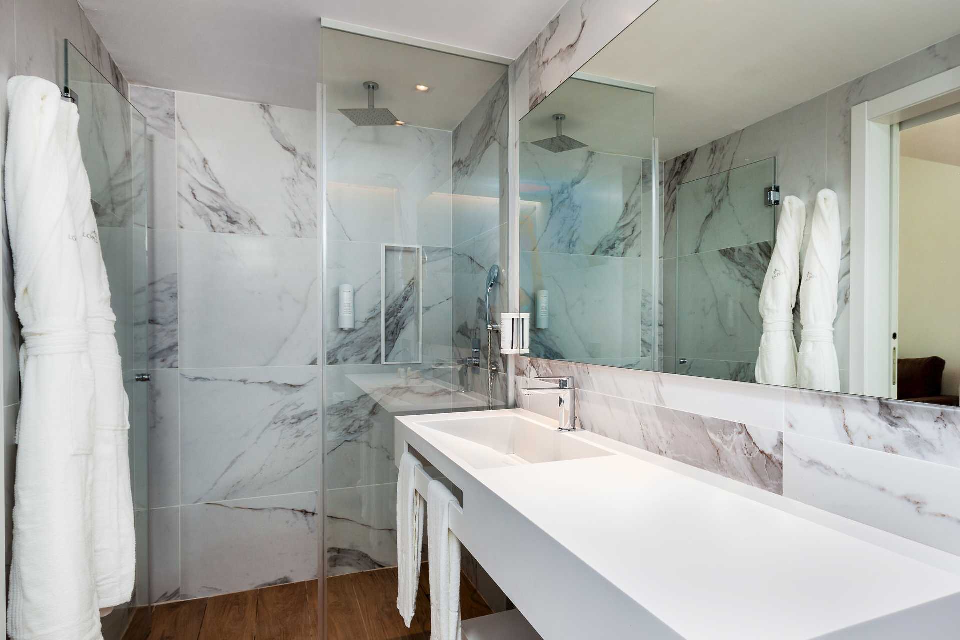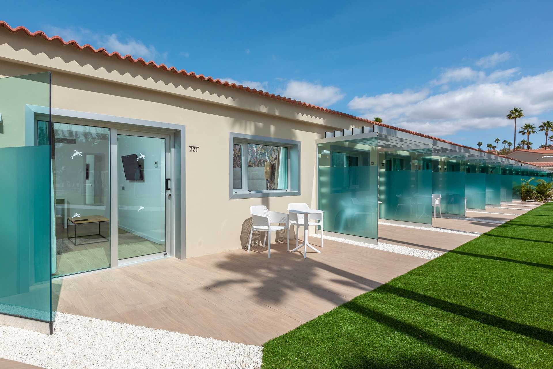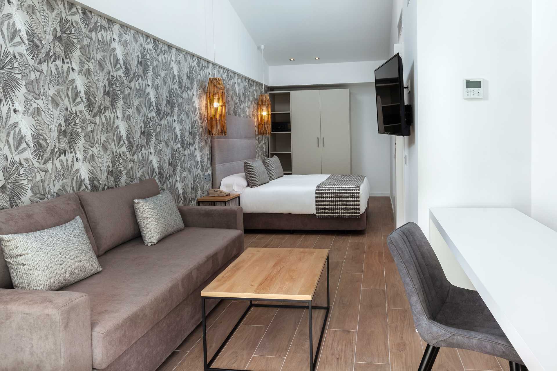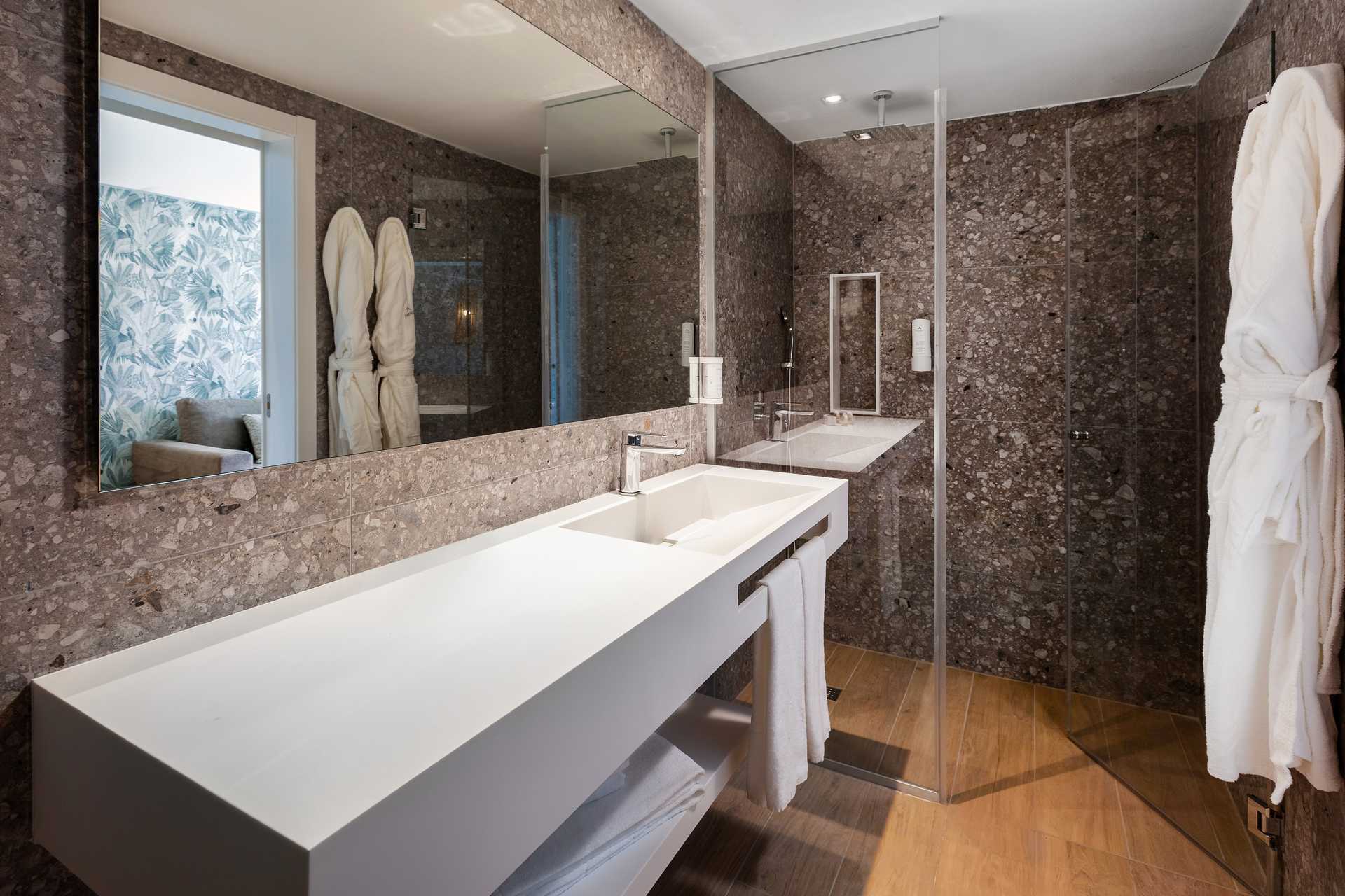 Svit med en stor markterrass med stolar och bord samt utsikt mot poolen. Sviten består av ett sovrum och ett vardagsrum. En dubbelsäng eller två enkelsängar. Möjlighet till extrabädd i bäddsoffa. Wifi och luftkonditionering ingår. Deponering mot avgift. Minibar mot avgift. Nespresso kaffemaskin. Tv med internationella kanaler. Hårtork. Badrum med dusch och wc. Städning 7 ggr/vecka. Barn under två år räknas in i maxantalet personer i rummet.
