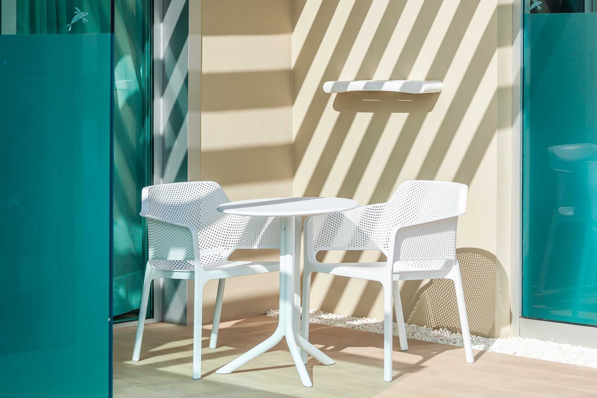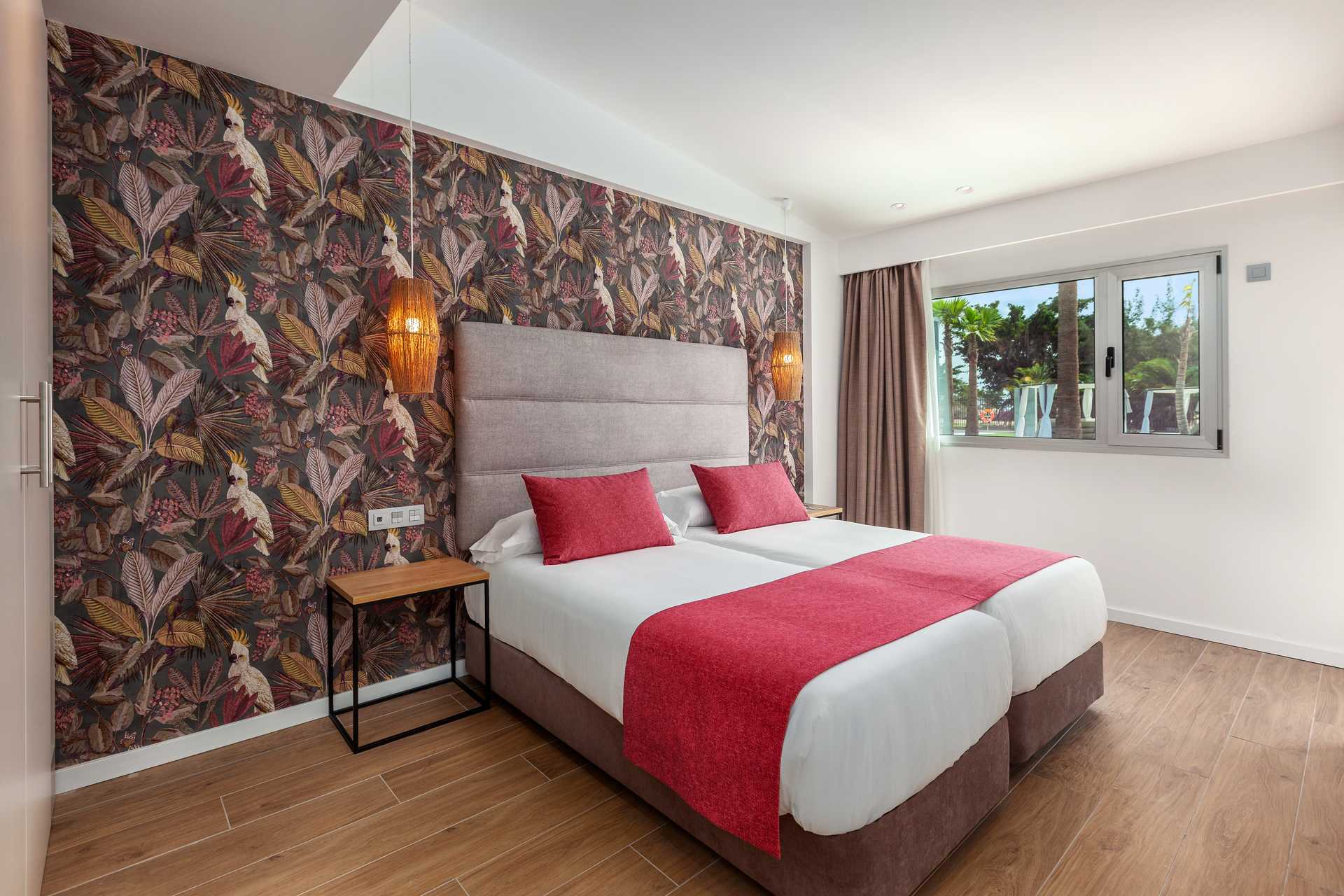 Juniorsvit med markterrass med stolar och bord samt utsikt mot poolen. En dubbelsäng eller två enkelsängar. Möjlighet till extrabädd i bäddsoffa. Wifi och luftkonditionering ingår. Deponering mot avgift. Minibar mot avgift. Nespresso kaffemaskin. Tv med internationella kanaler. Hårtork. Badrum med dusch och wc. Städning 7 ggr/vecka. Barn under två år räknas in i maxantalet personer i rummet.