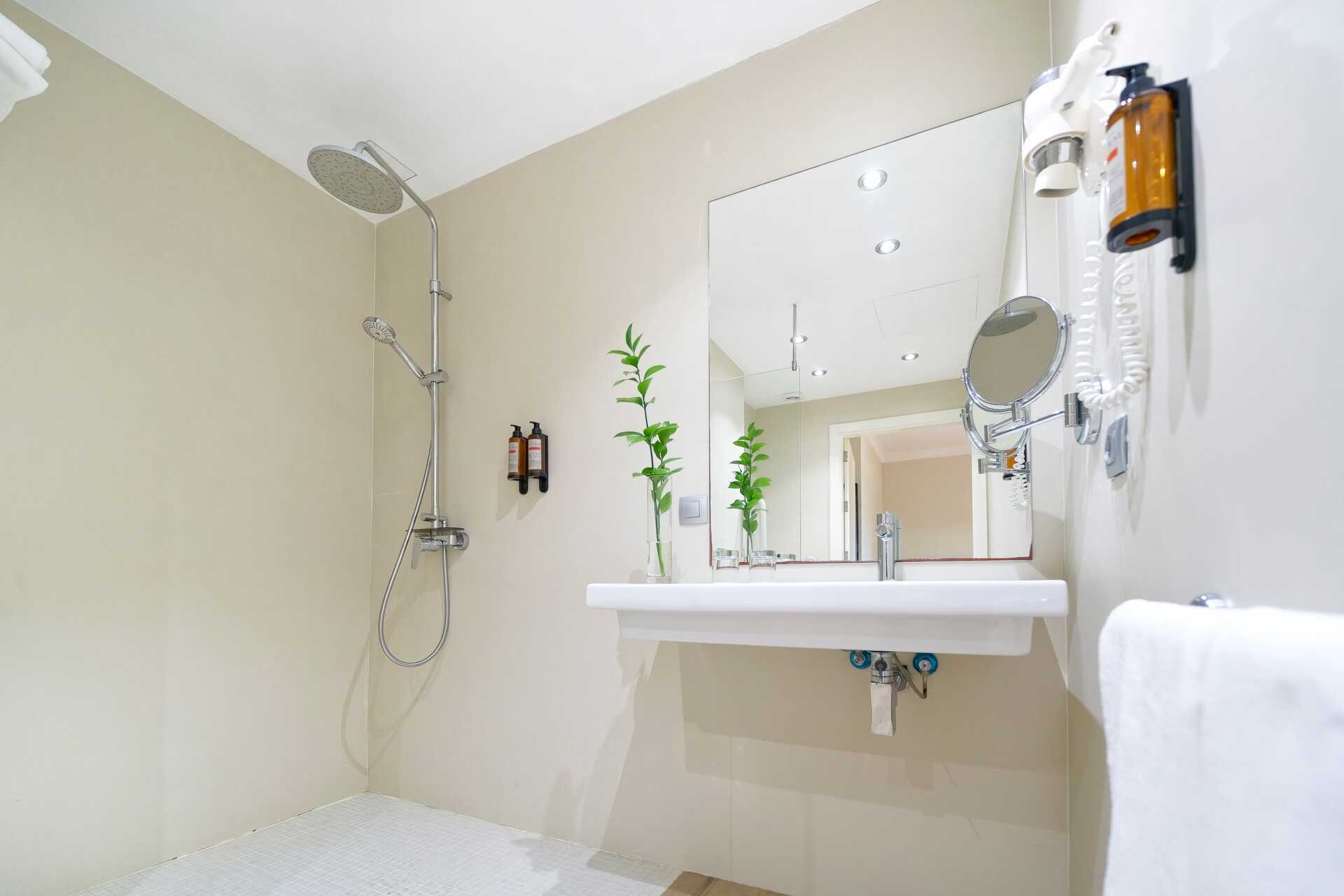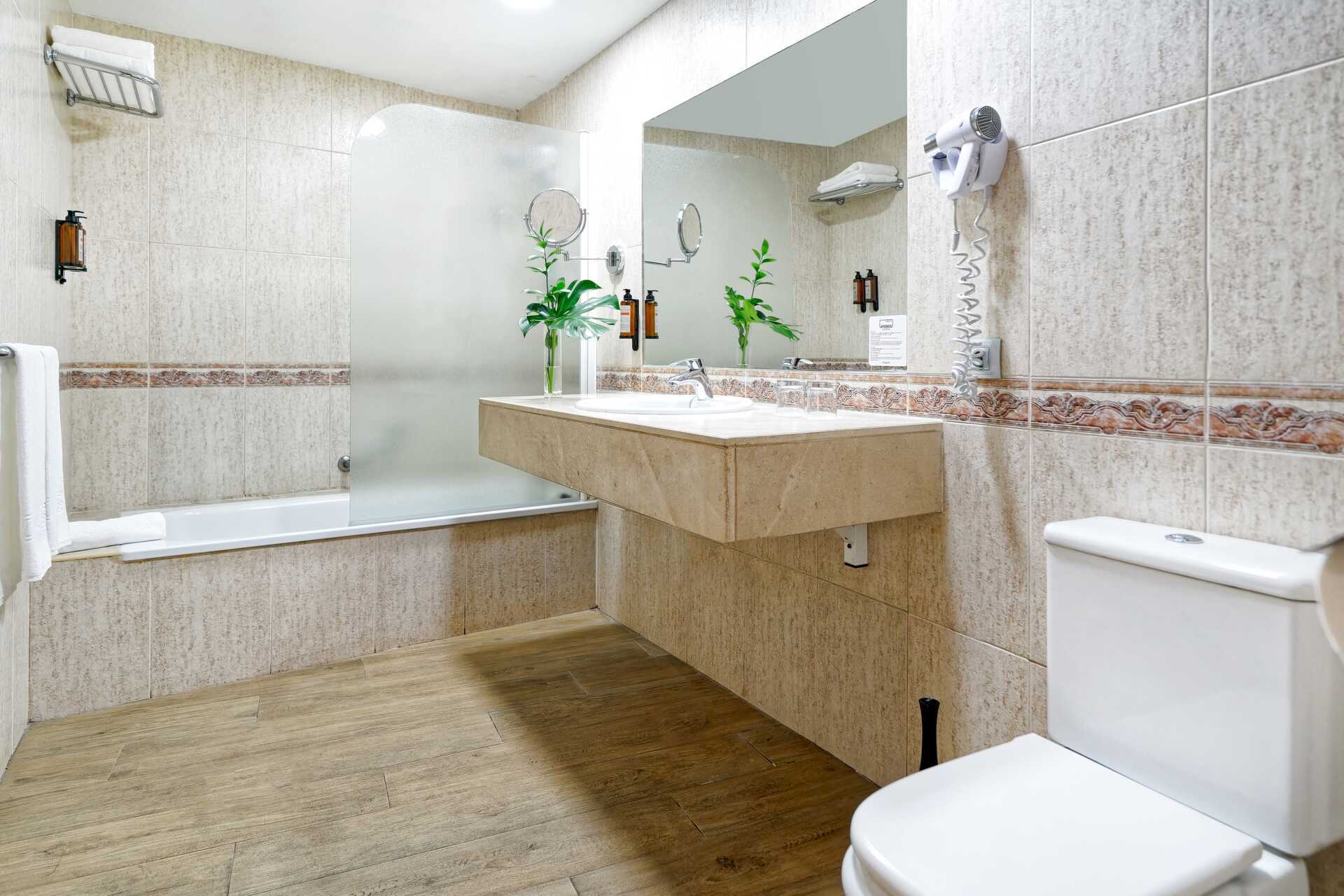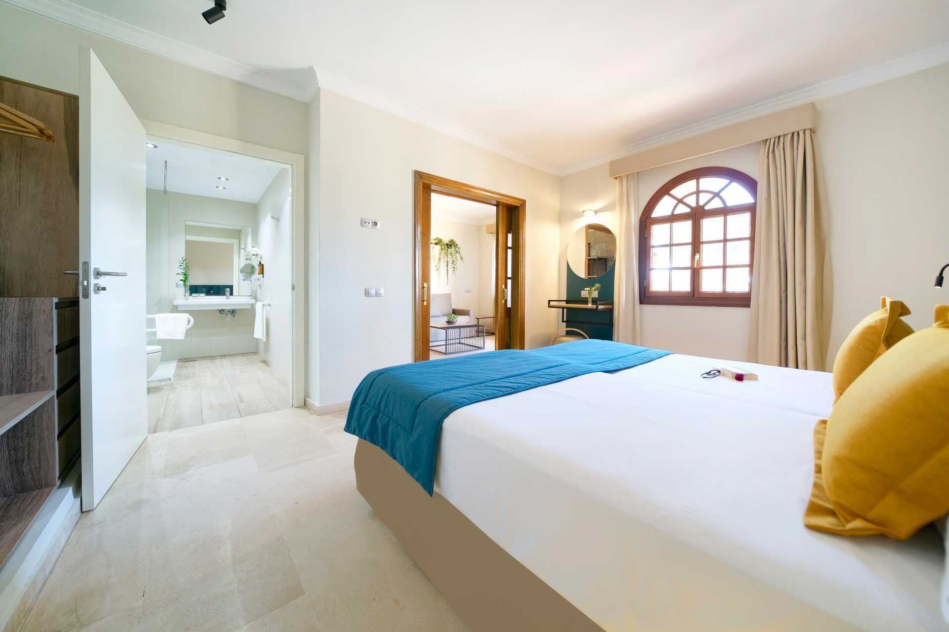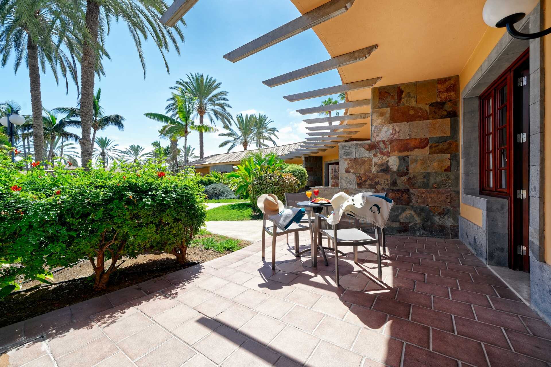 Tvårumssvit med markterrass. Sviten består av två sovrum och ett vardagsrum. Två enkelsängar i varje sovrum. Möjlighet till extrabäddar i bäddsoffa. Wifi och luftkonditionering ingår. Deponering mot avgift. Minibar mot avgift. Tv med internationella kanaler. Hårtork. Två badrum med badkar och wc. Städning 7 ggr/vecka.
