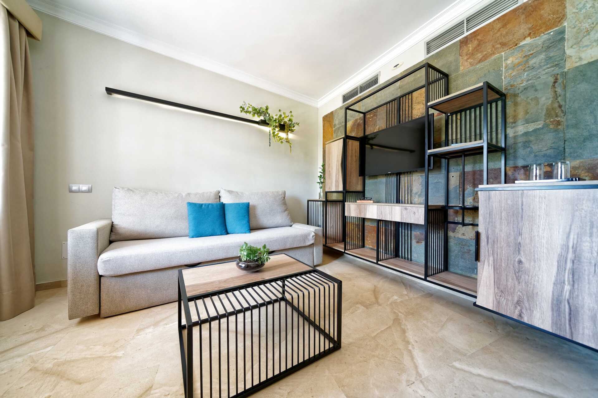Svit med markterrass. Sviten består av ett sovrum och ett vardagsrum. Två enkelsängar. Möjlighet till extrabäddar i en bäddsoffa. Wifi och luftkonditionering ingår. Deponering mot avgift. Minibar mot avgift. Tv med internationella kanaler. Hårtork. Badrum med badkar eller dusch samt wc. Städning 7 ggr/vecka.