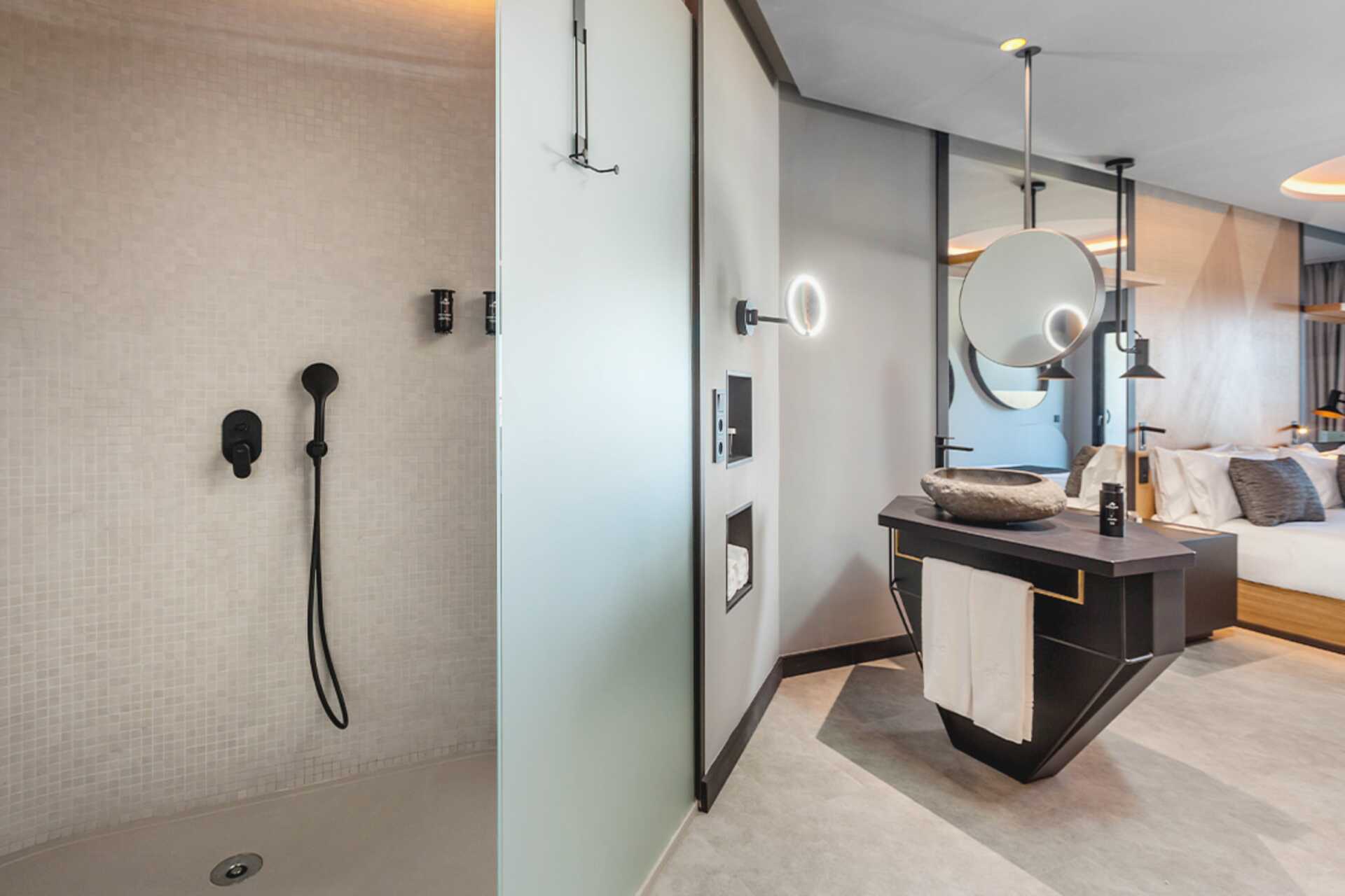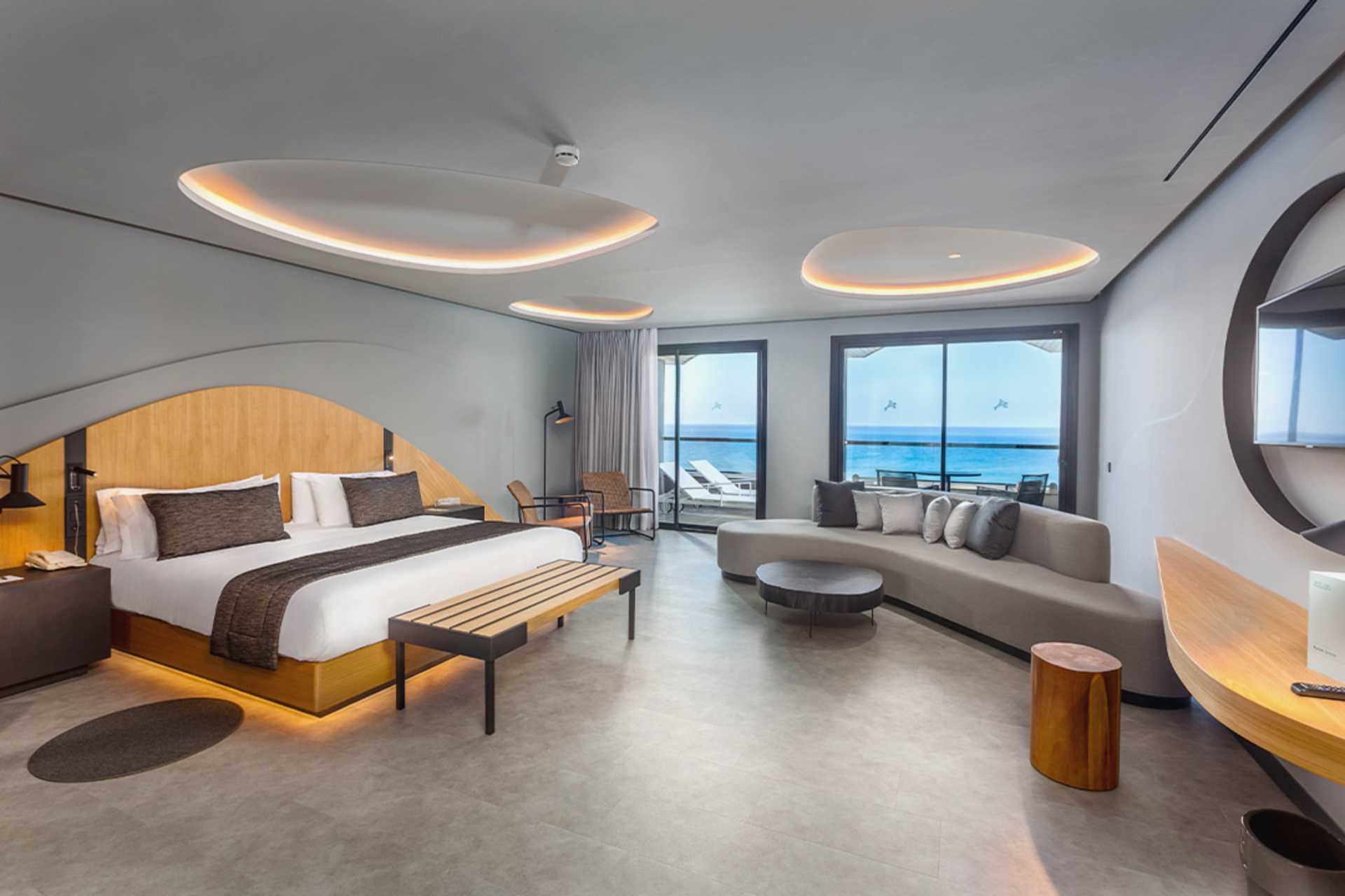Superiorrum med balkong, vissa med begränsad havsutsikt. En dubbelsäng. Wifi, luftkonditionering och deponering ingår. Soffa. Minibar. Nespresso kaffemaskin - kapslar ingår. Vattenkokare. Tv med internationella kanaler. Badrockar och tofflor. Hårtork. Badrum, delvis öppet mot rummet, men med dusch och wc bakom frostade glasdörrar. Städning 7 ggr/vecka.