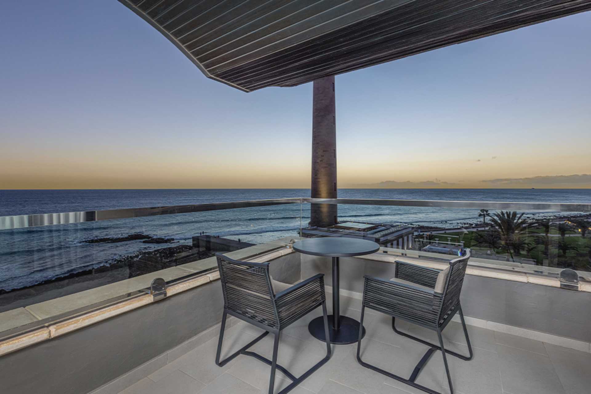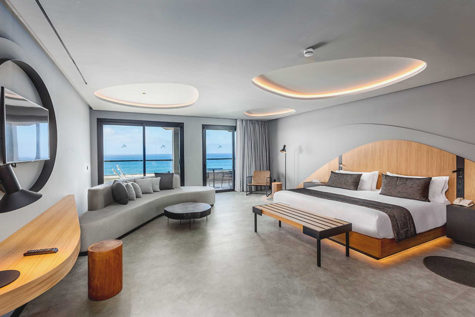 Juniorsvit med balkong och begränsad havsutsikt. Solstolar på balkongen. En dubbelsäng. Wifi, luftkonditionering och deponering ingår. Soffa. Minibar. Nespresso kaffemaskin - kapslar ingår. Vattenkokare. Tv med internationella kanaler. Badrockar och tofflor. Hårtork. Badrum, delvis öppet mot rummet, men med dusch och wc bakom frostade glasdörrar. Städning 7 ggr/vecka.