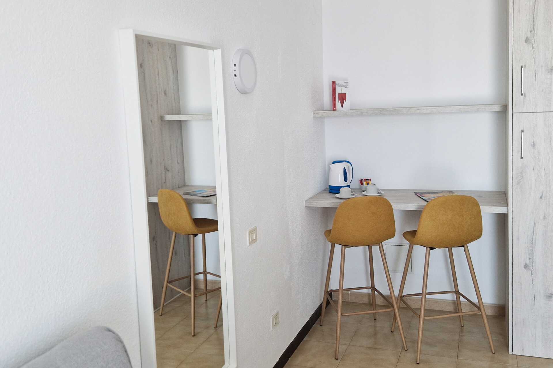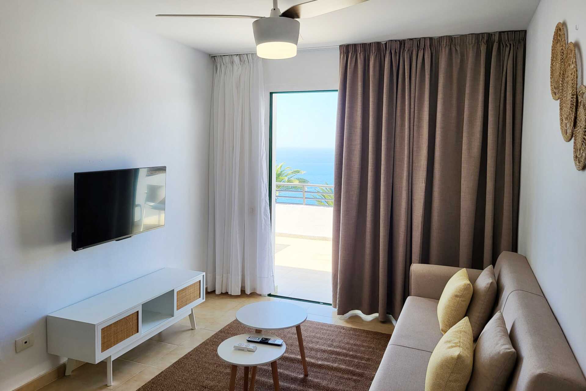 Juniorsvit med balkong och havsutsikt. Juniorsviten består av ett sovrum och ett vardagsrum. Två enkelsängar. Möjlighet till extrabädd i bäddsoffa. Wifi ingår. Deponering mot avgift. Takfläkt. Kylskåp. Vattenkokare samt kaffe och te. Tv med internationella kanaler. Hårtork. Badrum med dusch och wc. Städning 5 ggr/vecka.