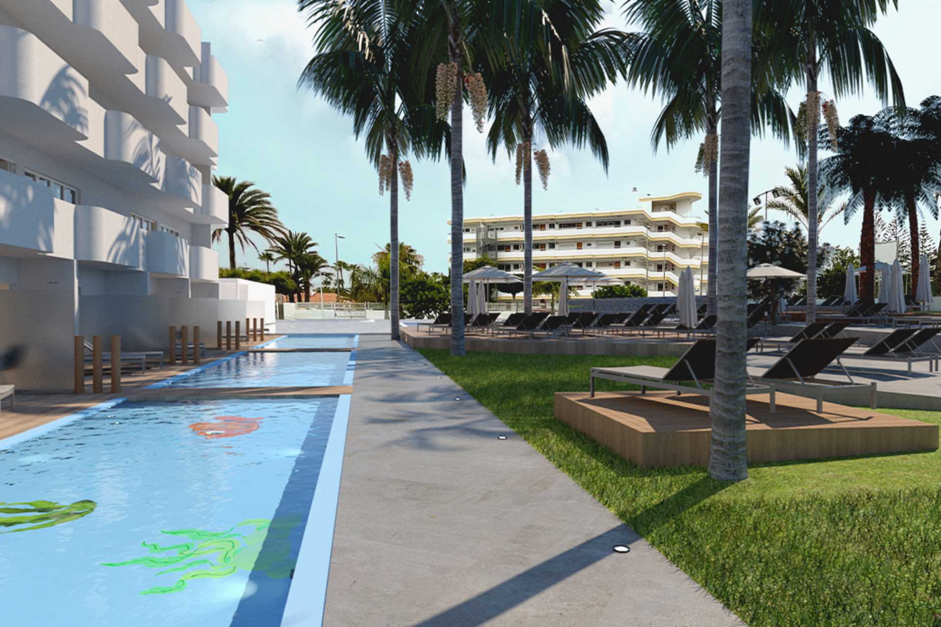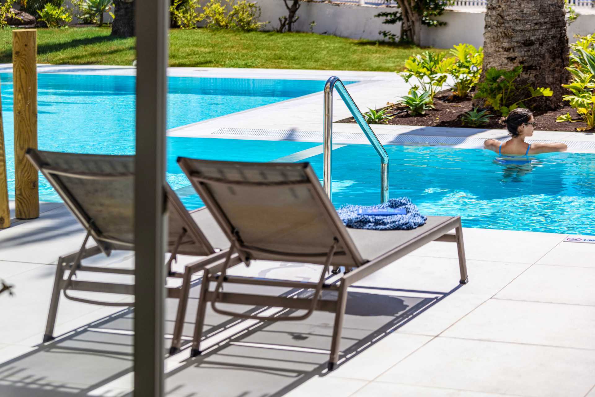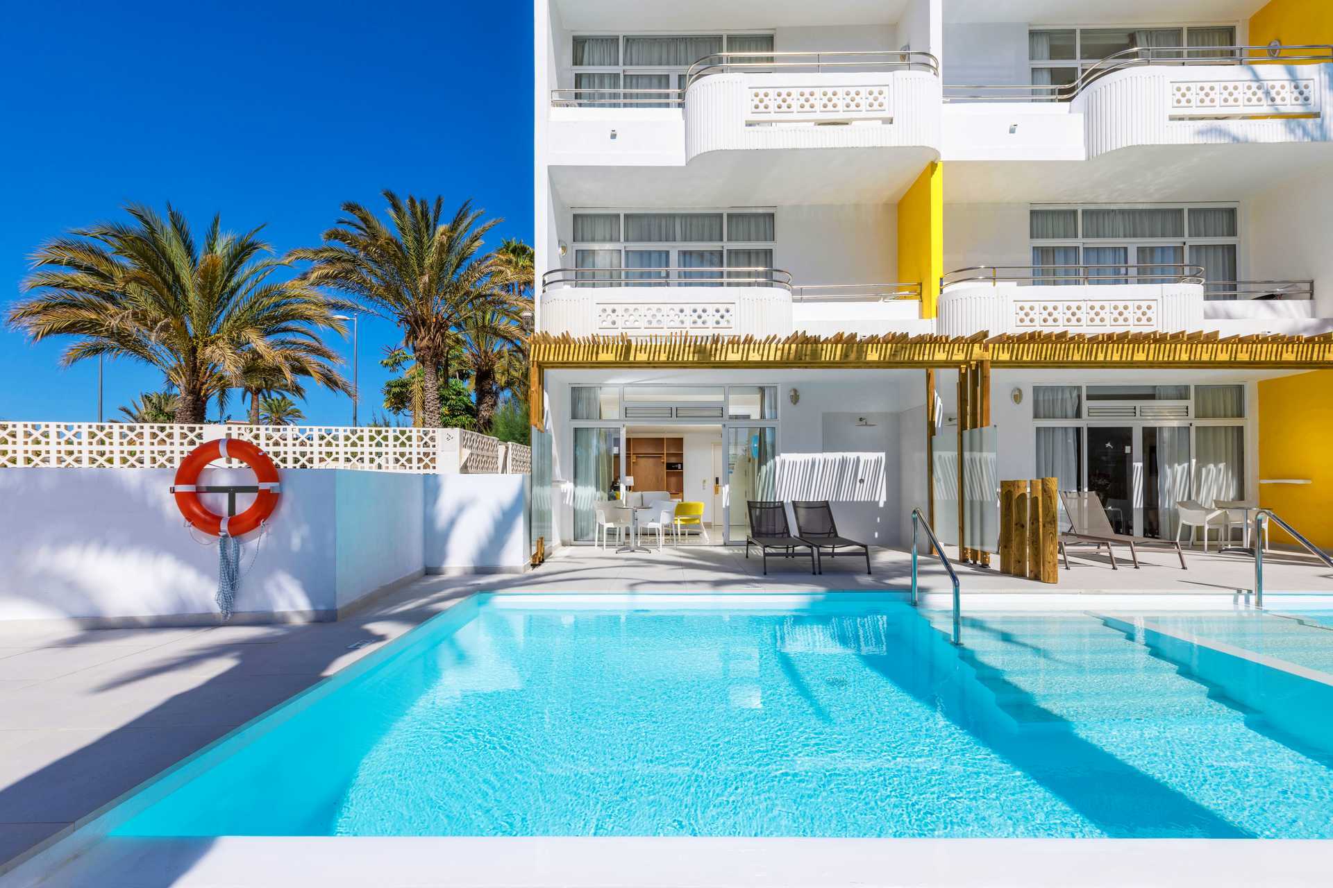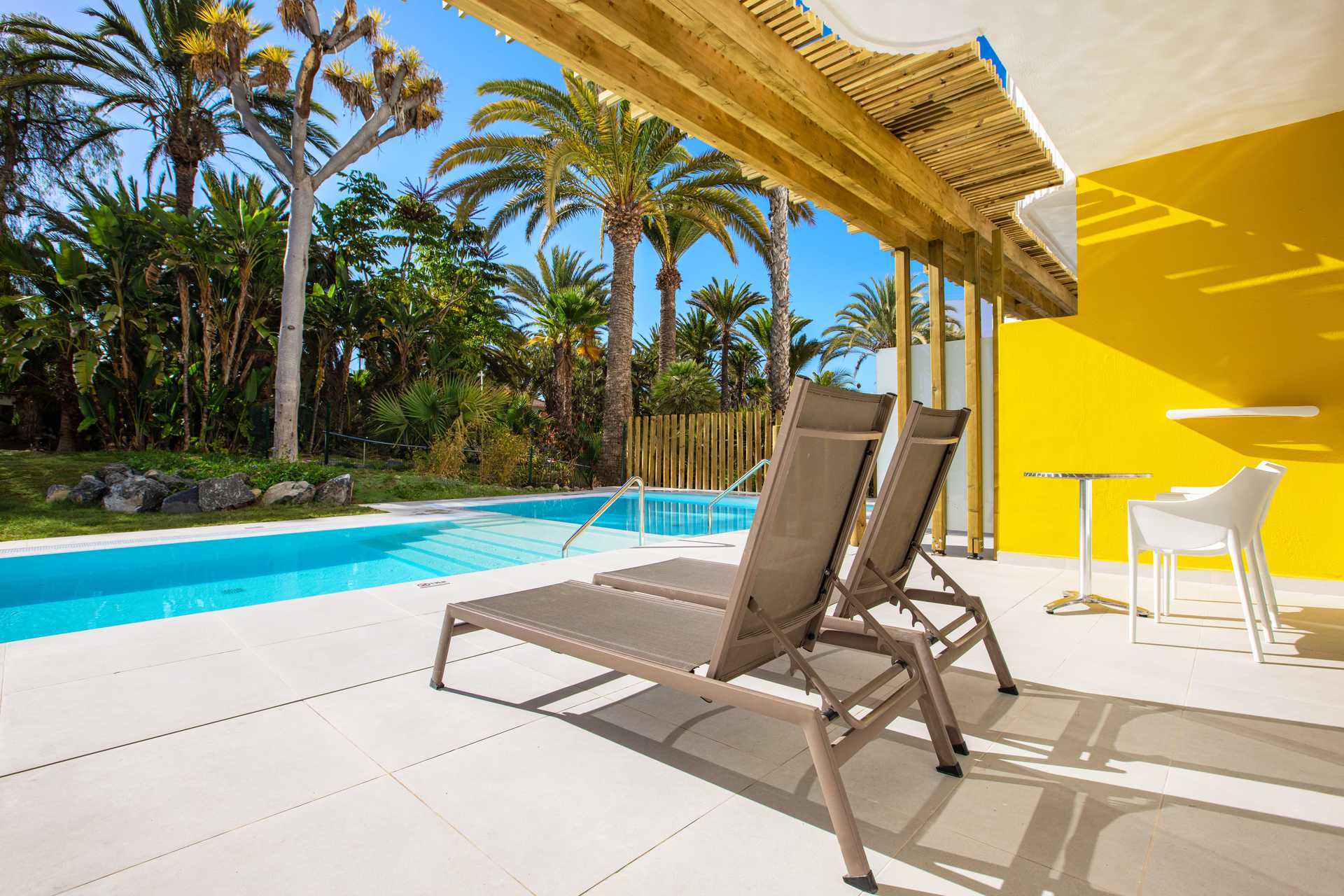 Dubbelrum med markterrass och privat pool. Åldersgränsen för att bo i rummet är 18 år. På terrassen finns bord och stolar samt solstolar. Stege eller trappa ner i poolen. Två enkelsängar. Möjlighet till extrabädd i bäddsoffa. Centralstyrd luftkonditionering ingår sommartid och vid behov vintertid. Wifi ingår. Deponering mot avgift. Minibar mot avgift. Vattenkokare samt kaffe och te. Tv med internationella kanaler. Hårtork. Badrum med dusch och wc. Städning 7 ggr/vecka.