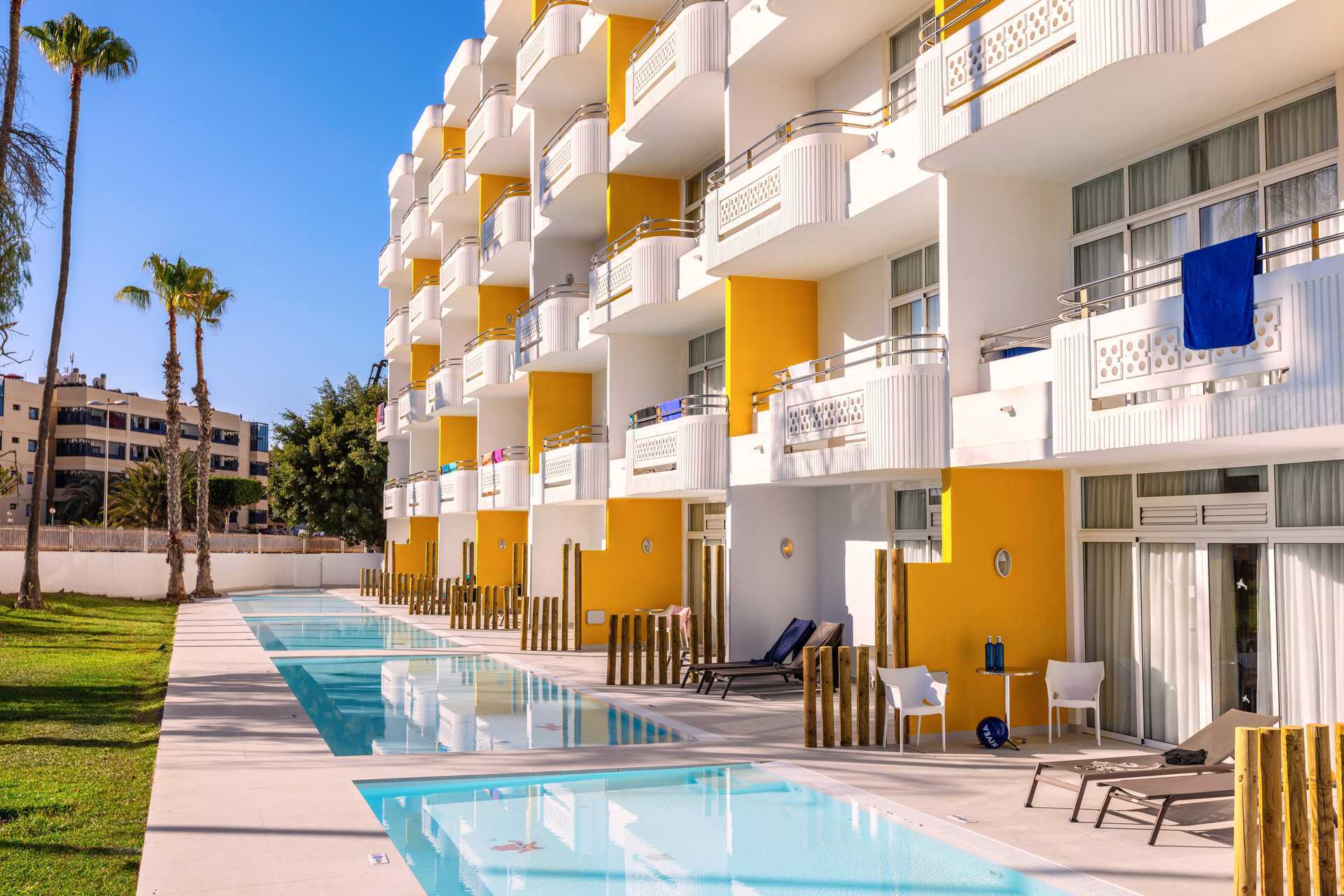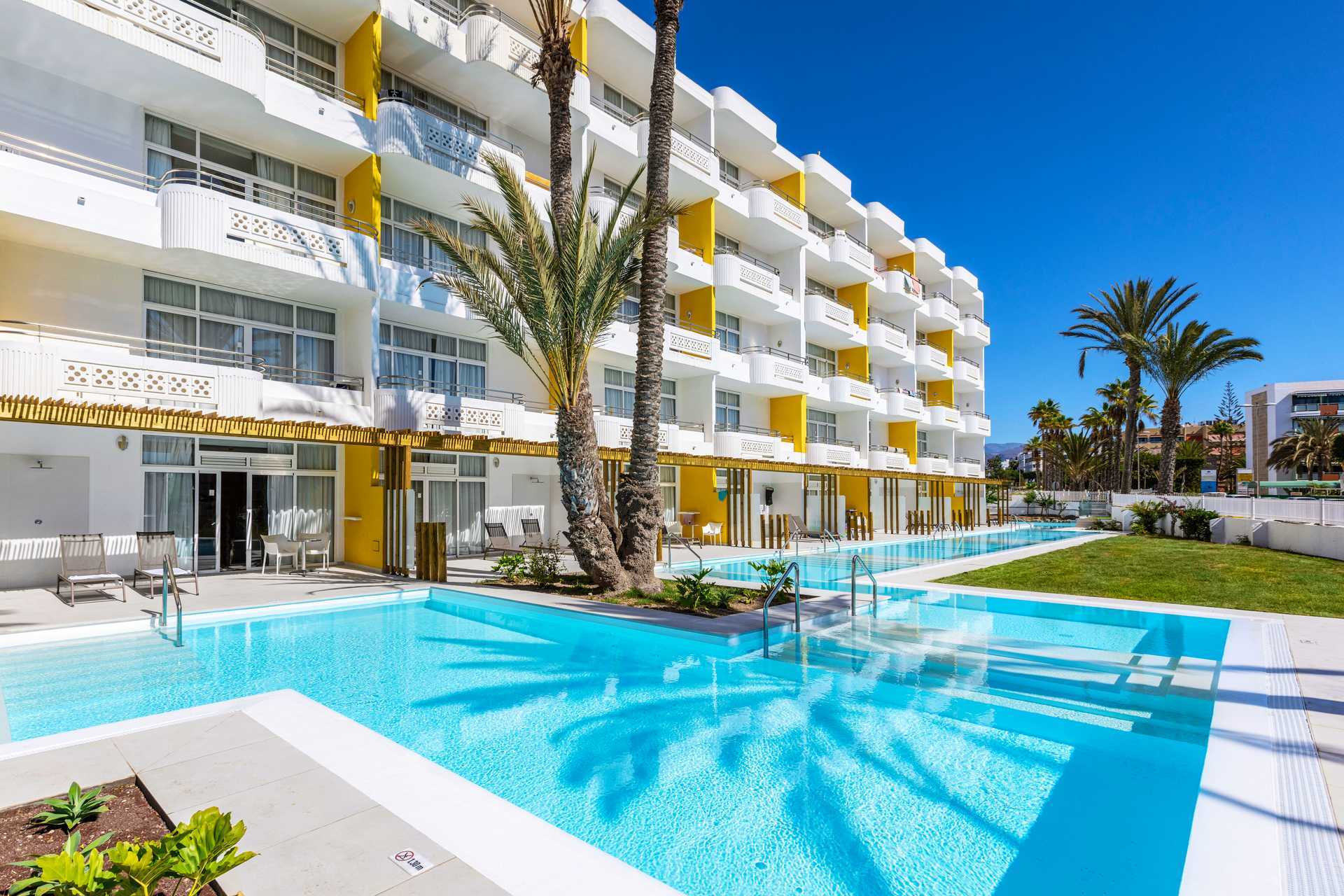 Dubbelrum med balkong, vissa med utsikt trädgård/poolområdet. Två enkelsängar. Möjlighet till extrabädd i bäddsoffa. Centralstyrd luftkonditionering ingår sommartid och vid behov vintertid. Wifi ingår. Deponering mot avgift. Minibar mot avgift. Vattenkokare samt kaffe och te. Tv med internationella kanaler. Hårtork. Badrum med dusch och wc. Städning 7 ggr/vecka. Barn under två år räknas in i maxantalet personer i rummet.