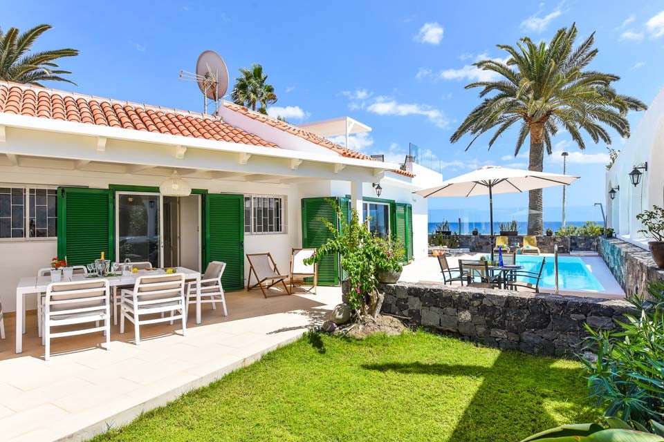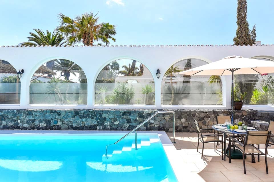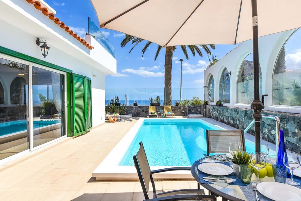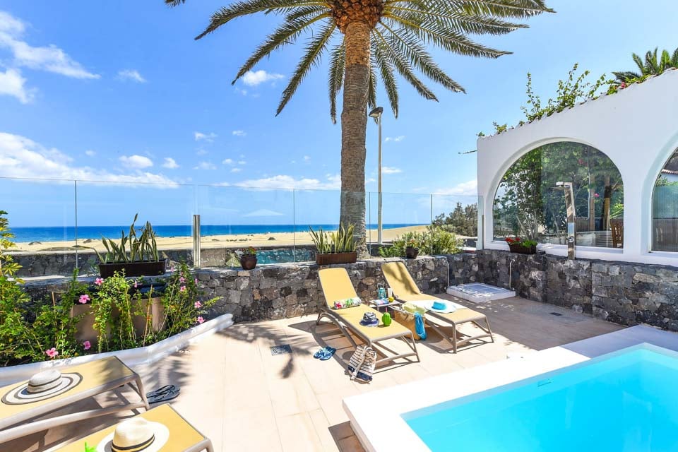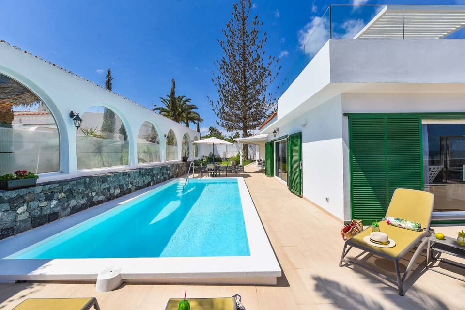 Vackra Gyllene Sahara ligger i Playa del Ingles-området i Maspalomas. Maspalomas är känt för sina enorma sanddyner, sandstränder och attraktiva nattliv och är ett måste för den som söker äventyr. De fantastiska sanddynerna är en syn att se och Golden Sahara erbjuder den mest spektakulära utsikten över dessa skyddade sandattraktioner. Denna underbara villa ståtar med en panoramautsikt över takterrass, mysiga soffor och havsutsikt så långt ögat kan nå, vilket skapar en solig oas för morgonkaffe och nattfröjdar i solnedgången. Den slutna terrassen är omgiven av en vulkanisk stenmur och höga palmer, medan den uppvärmda* poolen på 7,5 x 3,5 meter i centrum står. Det finns också en trädgård runt huset och uteservering med en bärbar grill, perfekt för en lätt lunch när du planerar din eftermiddag i förväg.