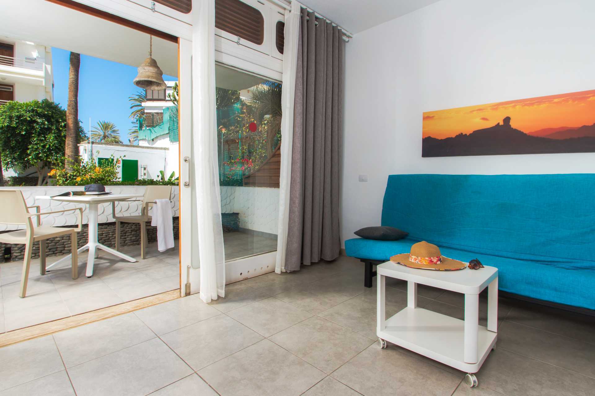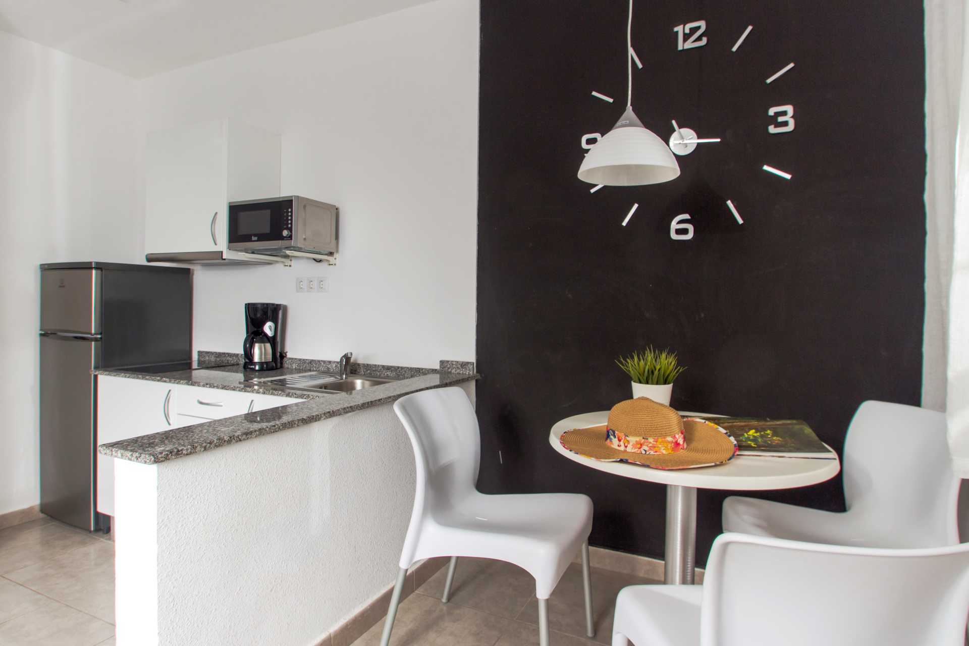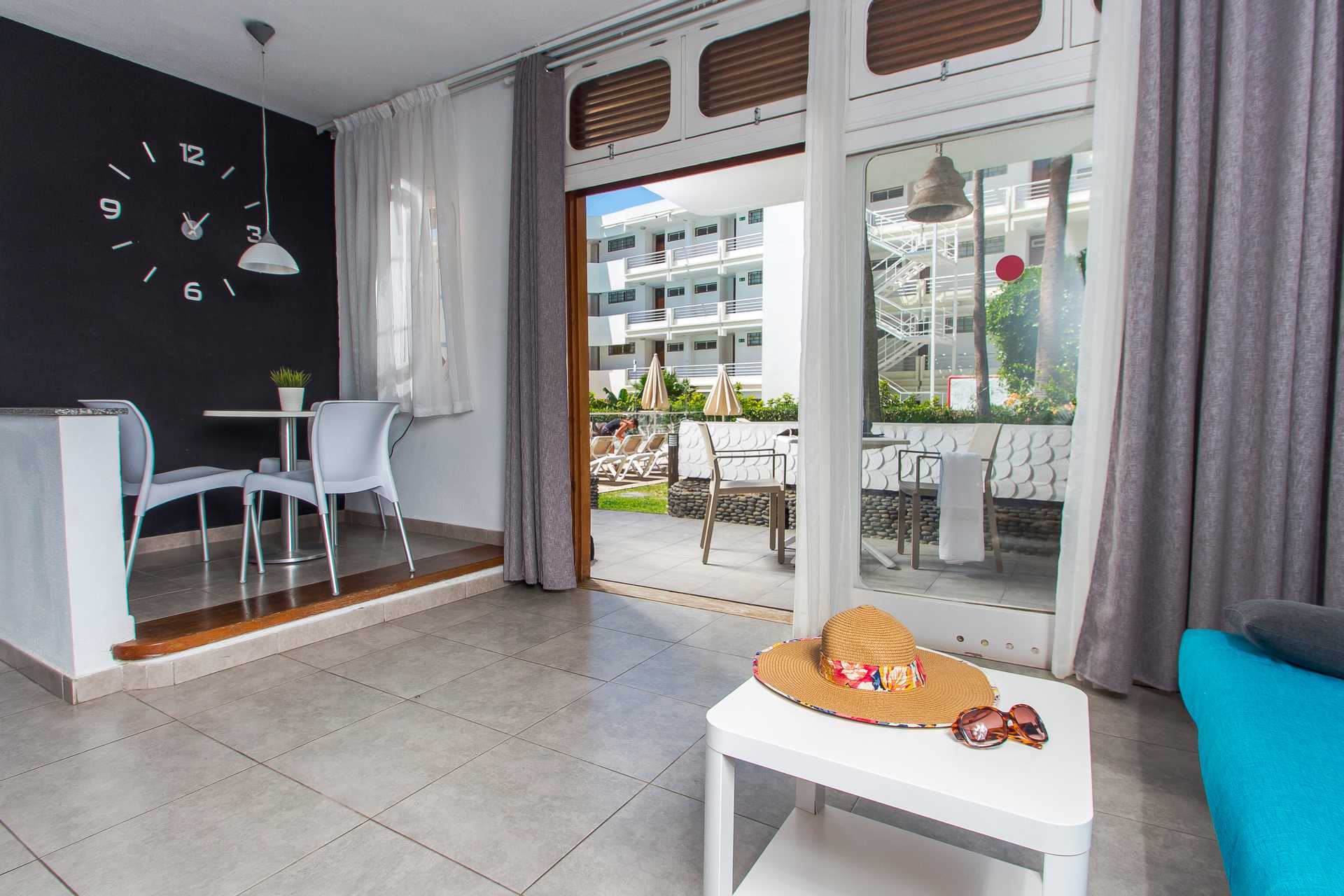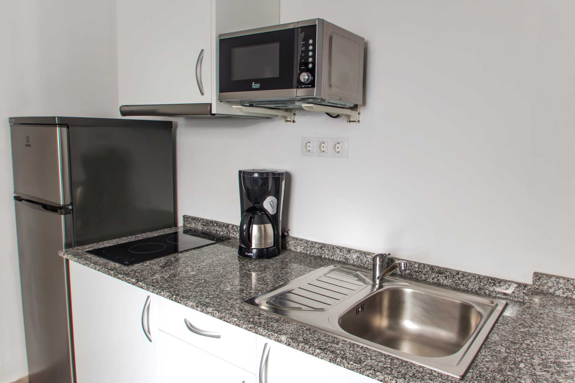 Tvårumslägenhet med balkong eller markterrass. Ett sovrum och kombinerat vardagsrum med minikök. Två enkelsängar. Minikök med kokplattor, kylskåp, mikrovågsugn, brödrost och enkel köksutrustning. Wifi ingår. Deponering mot avgift och deposition. Tv med internationella kanaler. Strykjärn. Hårtork. Badrum med dusch och wc. Städning 5 ggr/vecka.