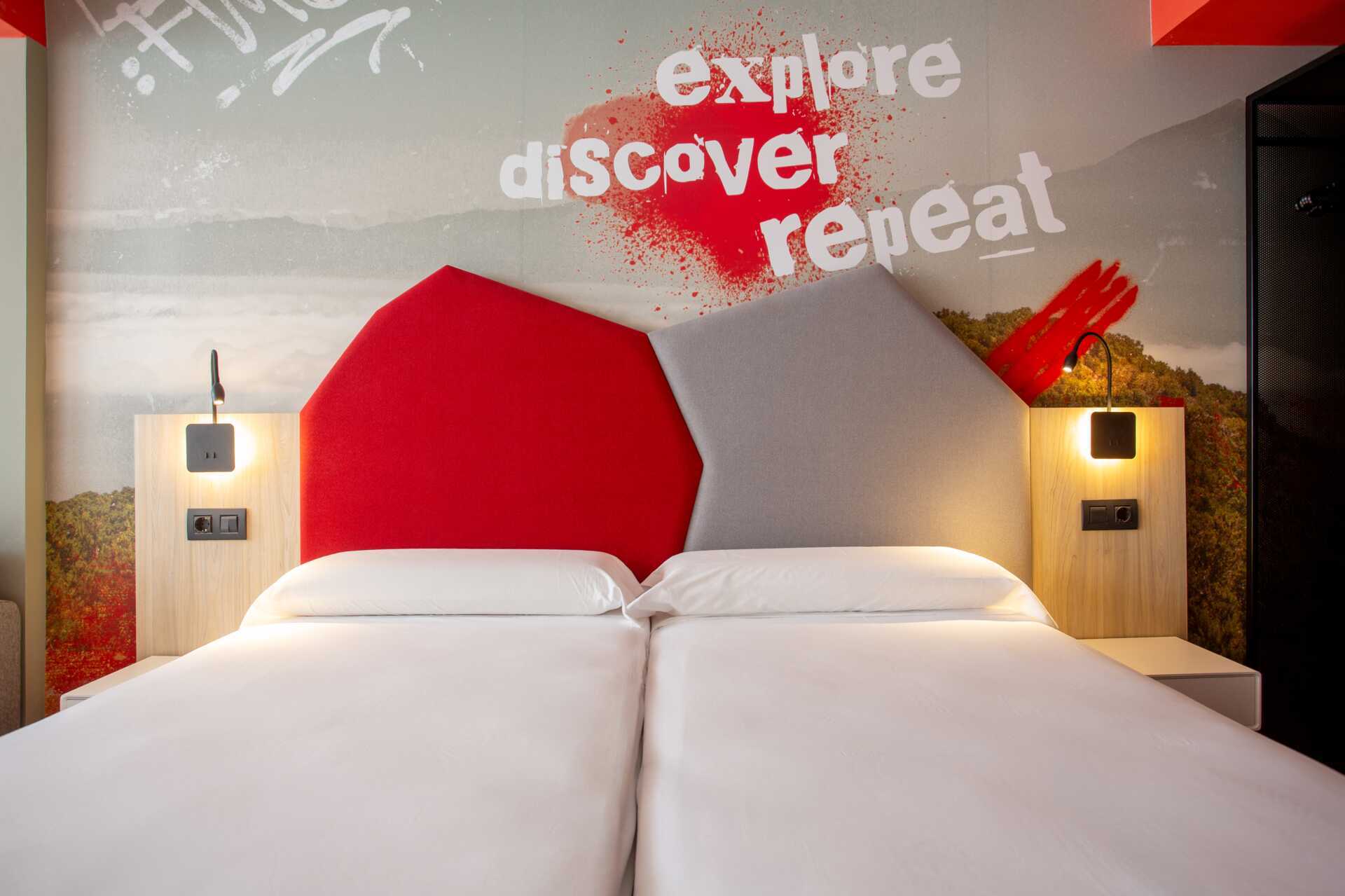 Dubbelrum med delad uteplats. Uteplatsen har två stolar och ett litet bord och är placerad vid en loftgång/passage. Två enkelsängar. Möjlighet till extrabädd i bäddsoffa. Kostnadsfritt wifi. Minibar. Badrum med dush och wc. Städning 3 ggr/vecka. Barn under två år räknas in i max antal personer i rummet.