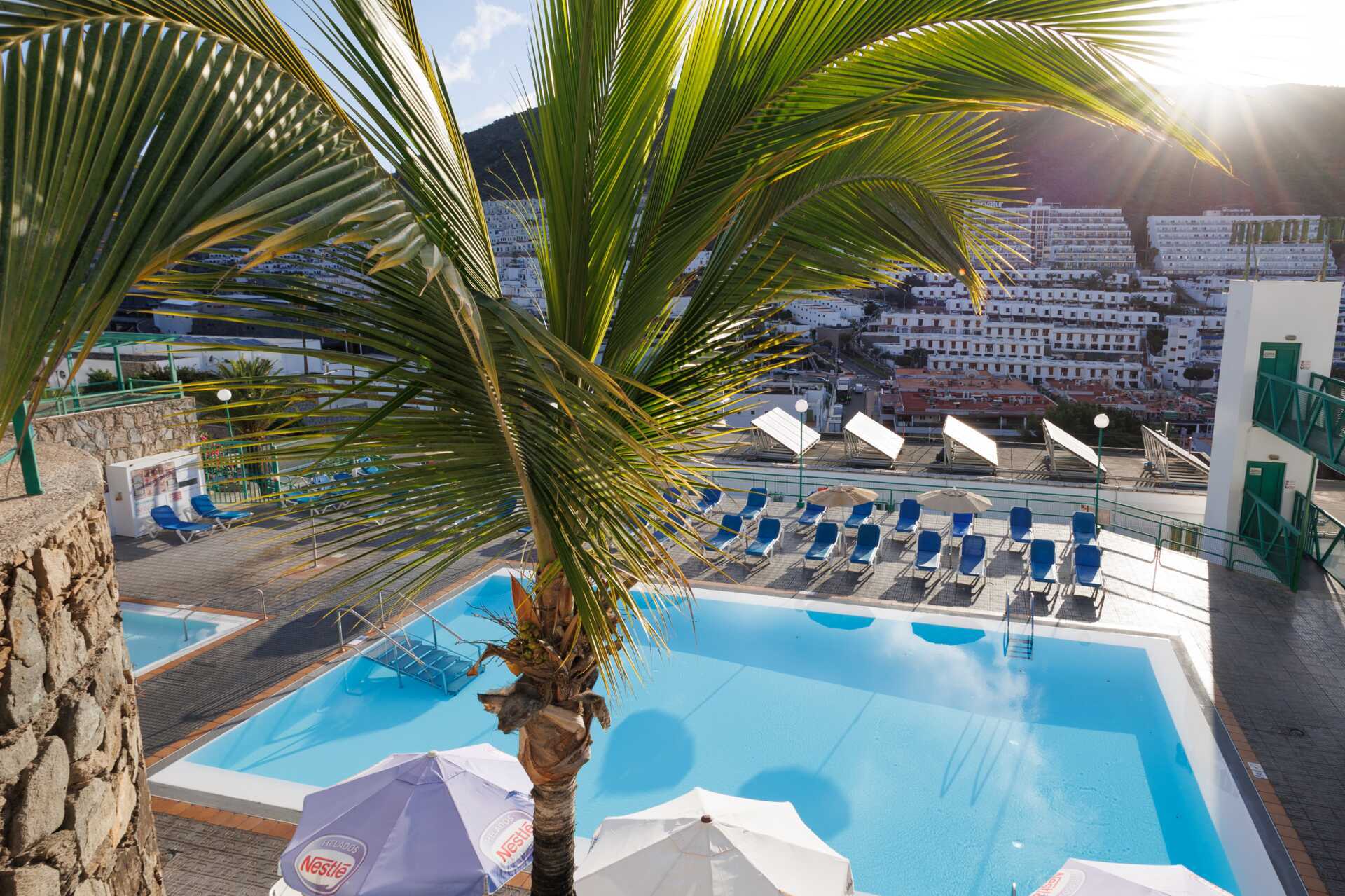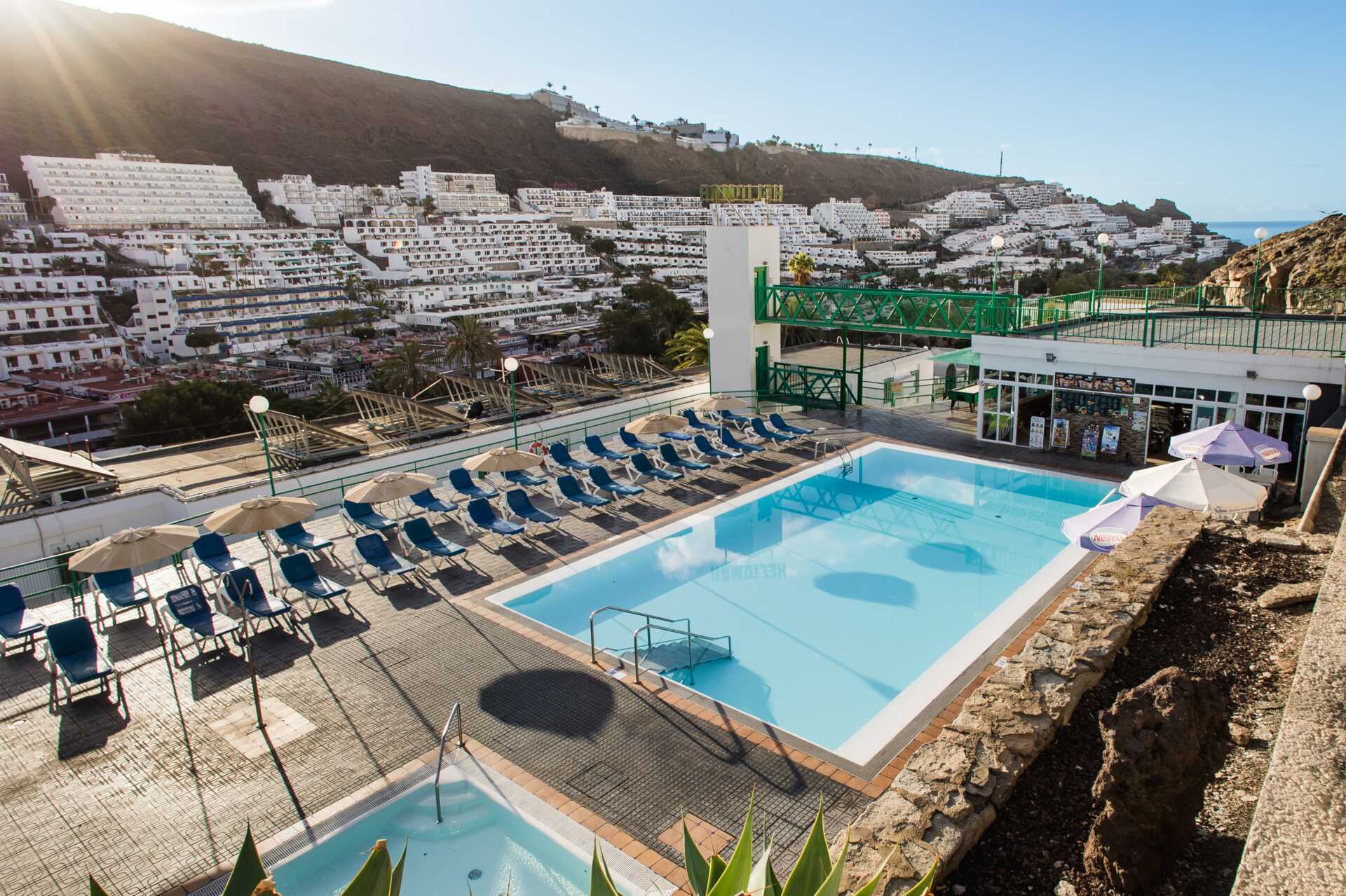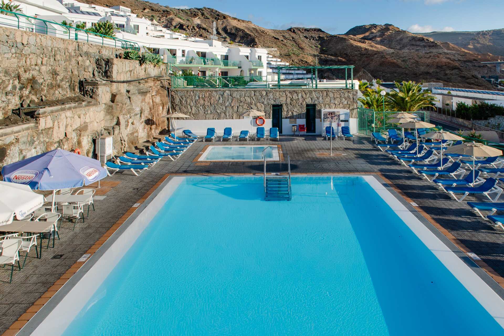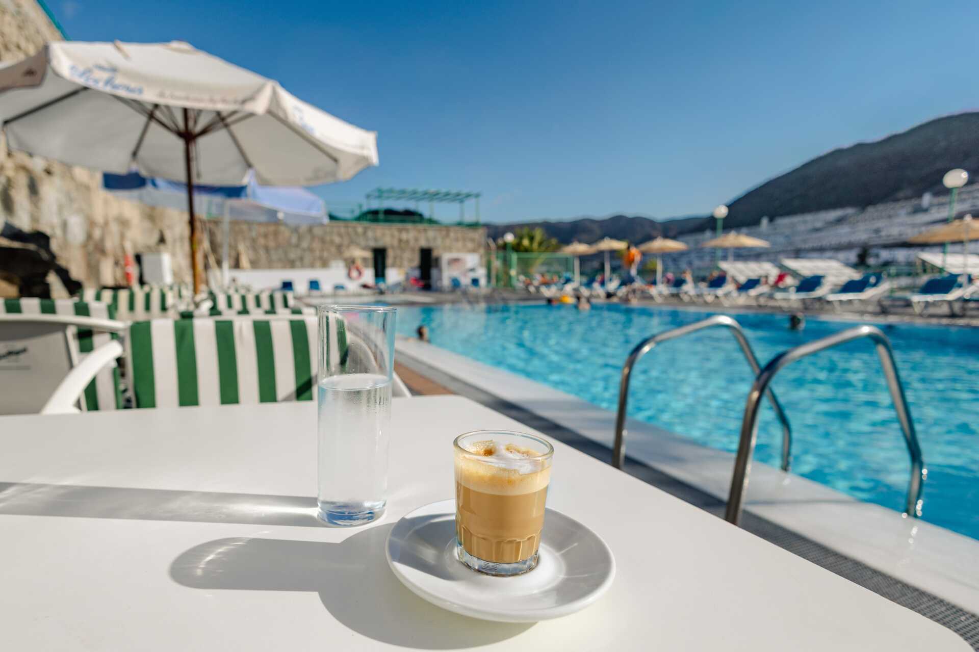 På hotellet finns en grönskande trädgård och två pooler, varav en är uppvärmd till minst 22 grader. Pooltemperaturen kan dock sjunka några grader på morgnar, kvällar och vid dåligt väder. Det finns även en barnpool. Solstolar och parasoller. Pool-/snackbar som även serverar enklare rätter.