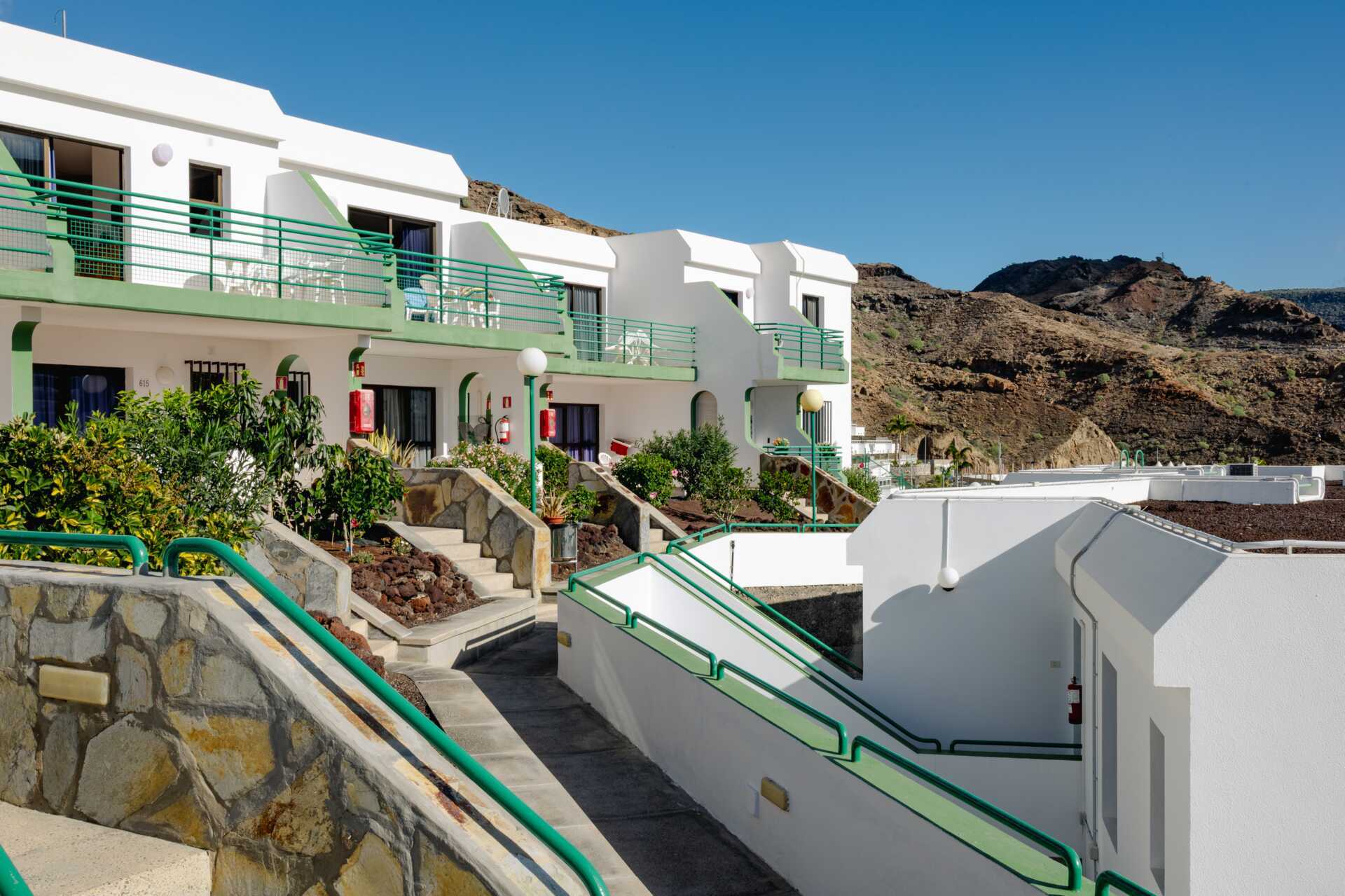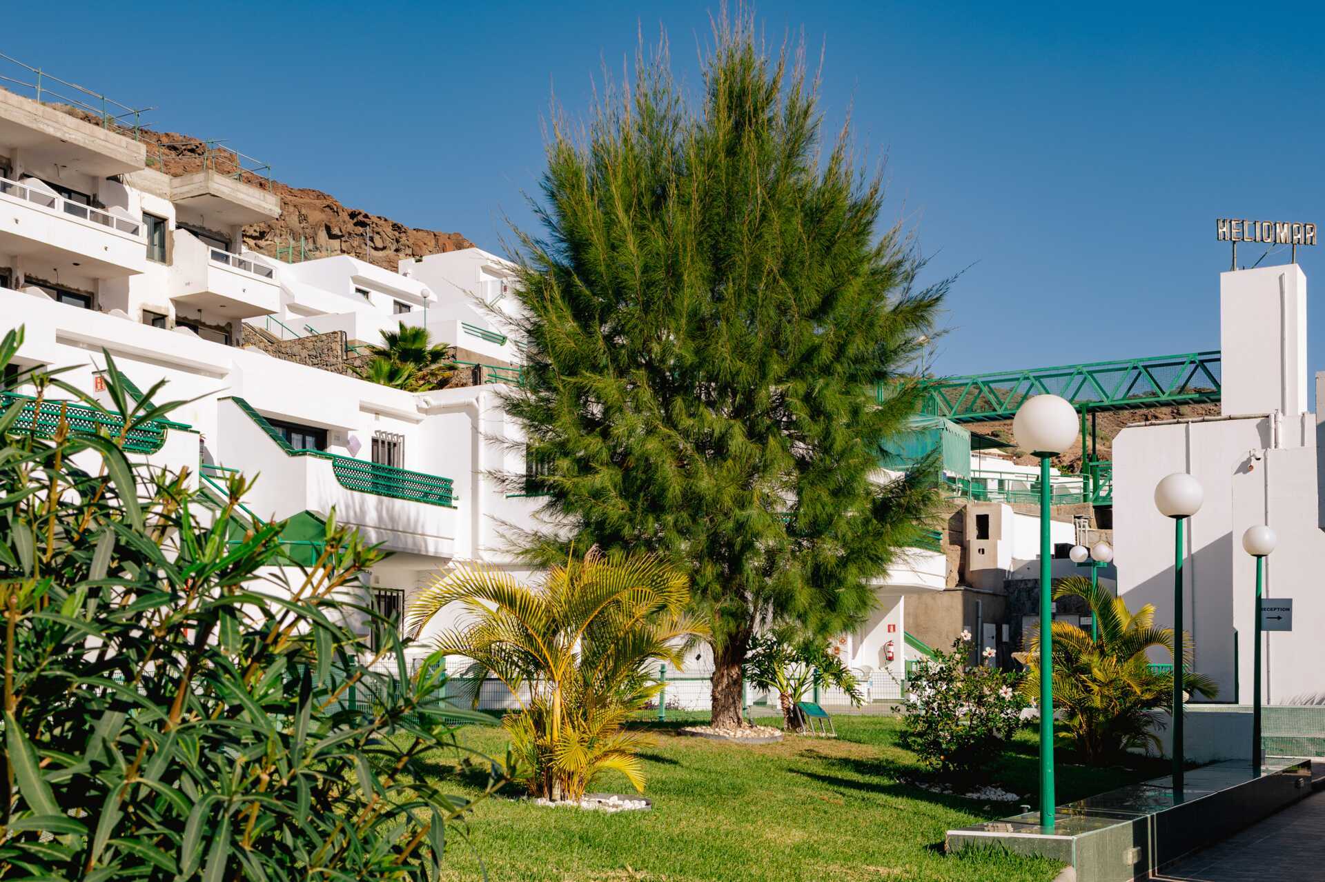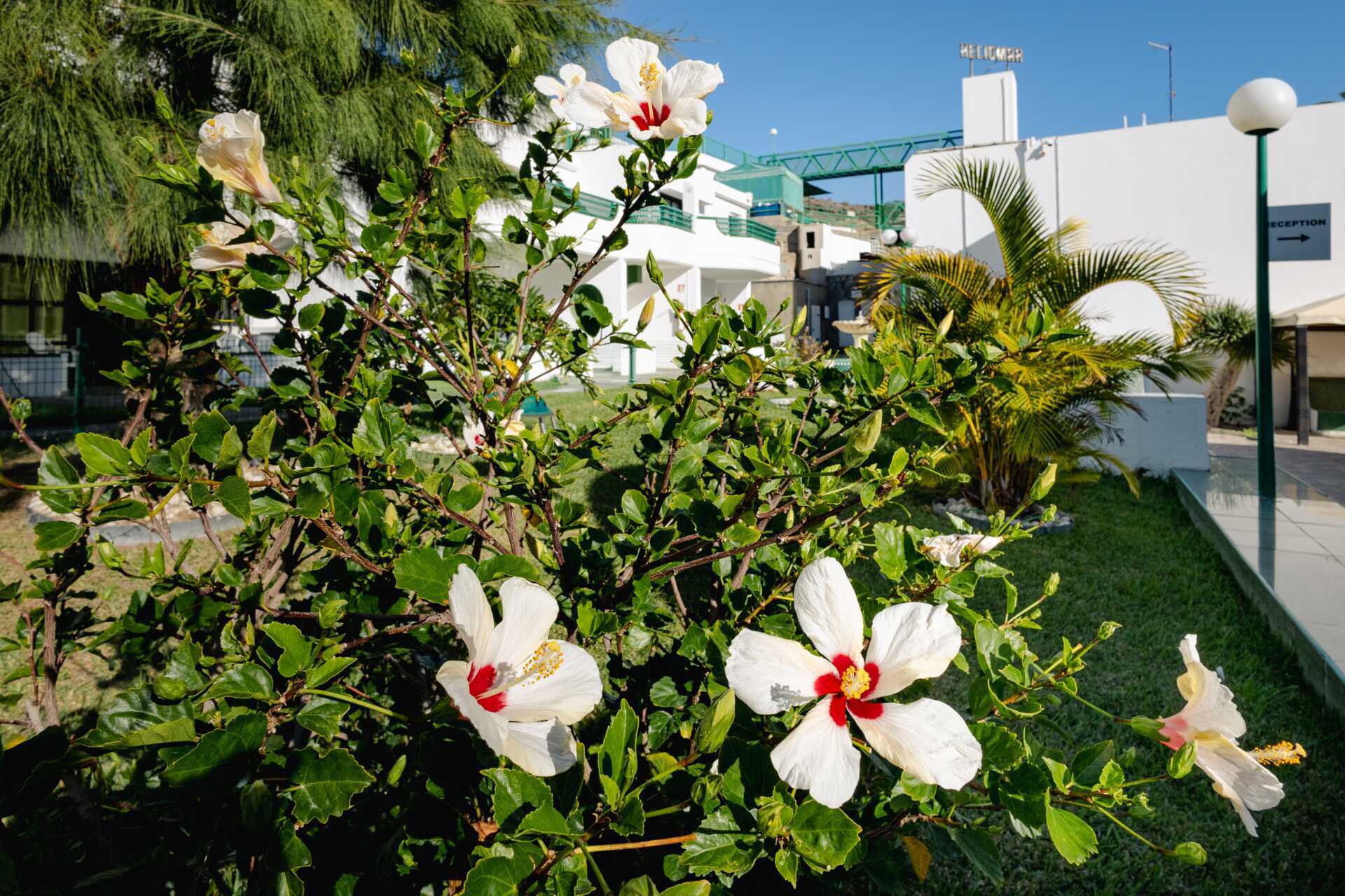 Till hotell Heliomar i Puerto Rico hittar många gäster tillbaka. Detta charmiga lägenhetshotell bjuder på ett bra läge i den inre delen av Puerto Ricos dalgång. Mellan de vitmålade husen blommar hibiscus och kaktusar – och morgonkaffet smakar extra gott på uteplatsen i solen!