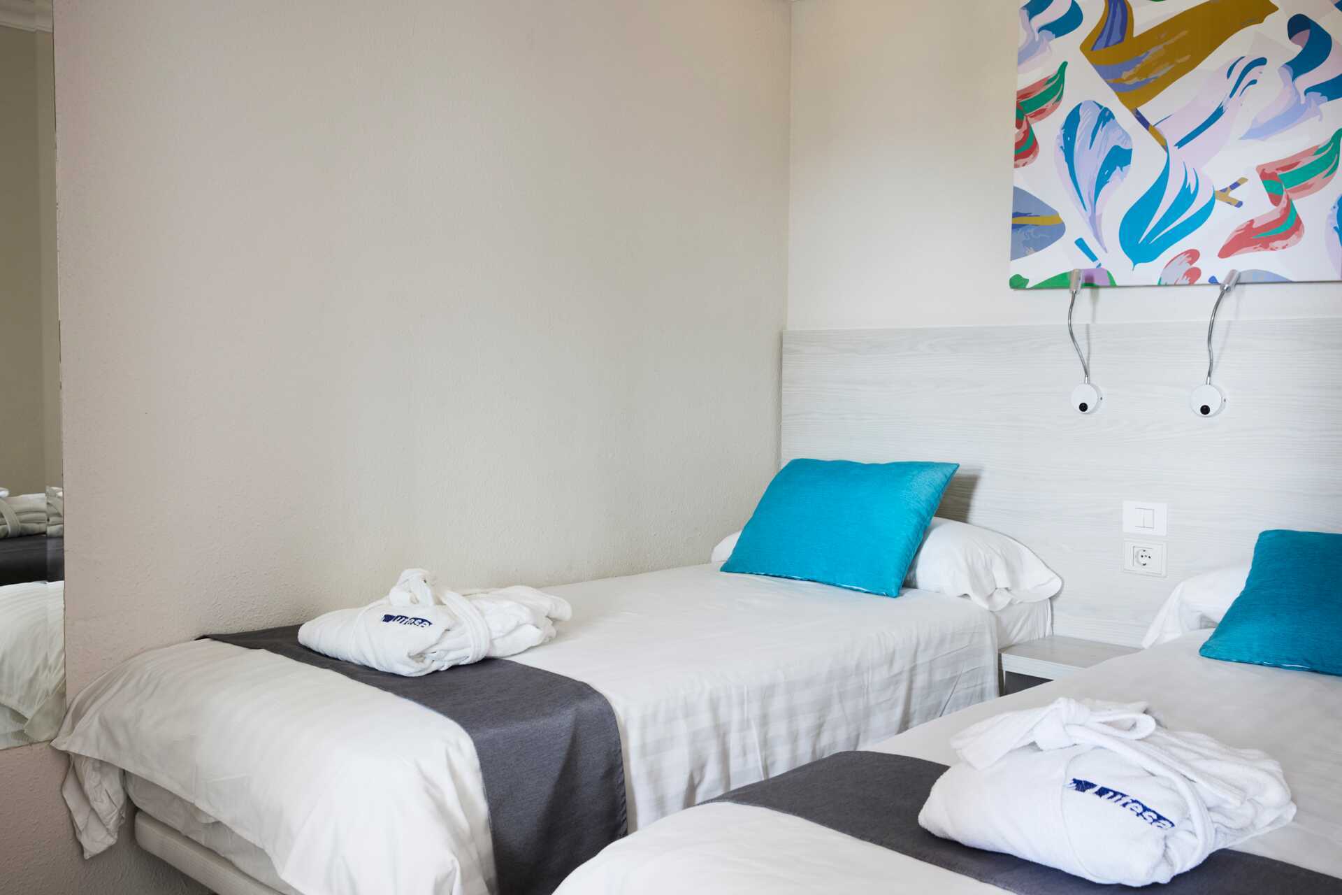 Tvårumslägenhet med balkong, vissa med poolutsikt alternativt stor balkong, vissa med poolutsikt. Sovrum och kombinerat vardagsrum med minikök. Två enkelsängar. Möjlighet till extrabädd i bäddsoffa. Wifi ingår. Luftkonditionering och deponering mot avgift. Takfläkt. Minikök med kokplattor, kylskåp, mikrovågsugn, brödrost, vattenkokare, kaffebryggare och enkel köksutrustning. Tv med lokala kanaler. Hårtork. Badrockar. Badrum med dusch och wc. Städning 5 ggr/vecka.