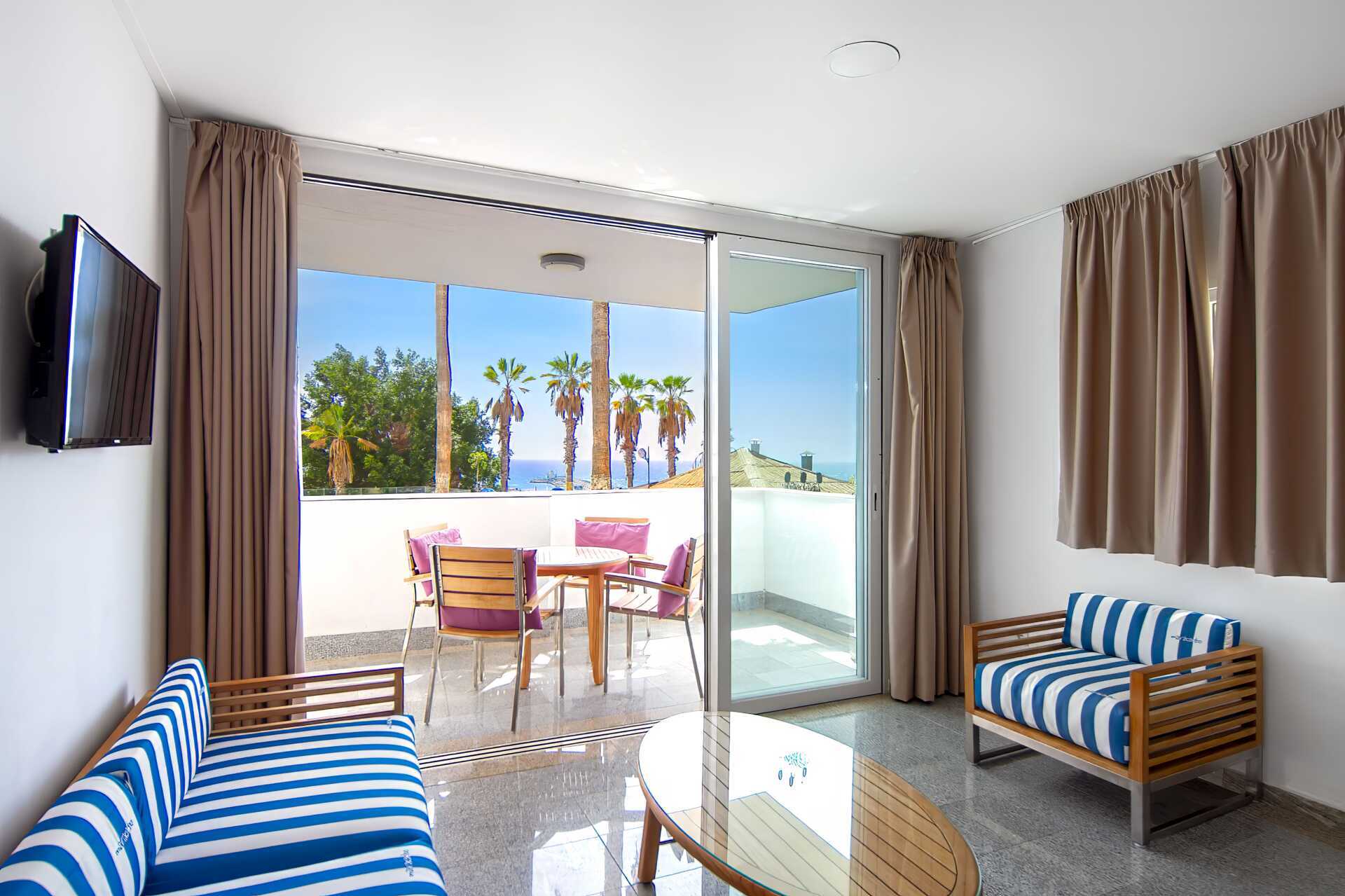 Tvårumslägenhet superior med balkong och havsutsikt. Lägenheterna ligger på tredje eller fjärde våningen. Sovrum och ett kombinerat vardagsrum med minikök. En dubbelsäng eller två enkelsängar. Möjlighet till extrabädd i bäddsoffa. Minikök med kokplattor, kylskåp, brödrost, kaffebryggare, vattenkokare, mikrovågsugn och enkel köksutrustning. Några lägenheter har bardisk som matplats. Wifi och luftkonditionering ingår. Deponering mot avgift. Tv med internationella kanaler. Hårtork. Badrum dusch och wc. Städning 6 ggr/vecka.
